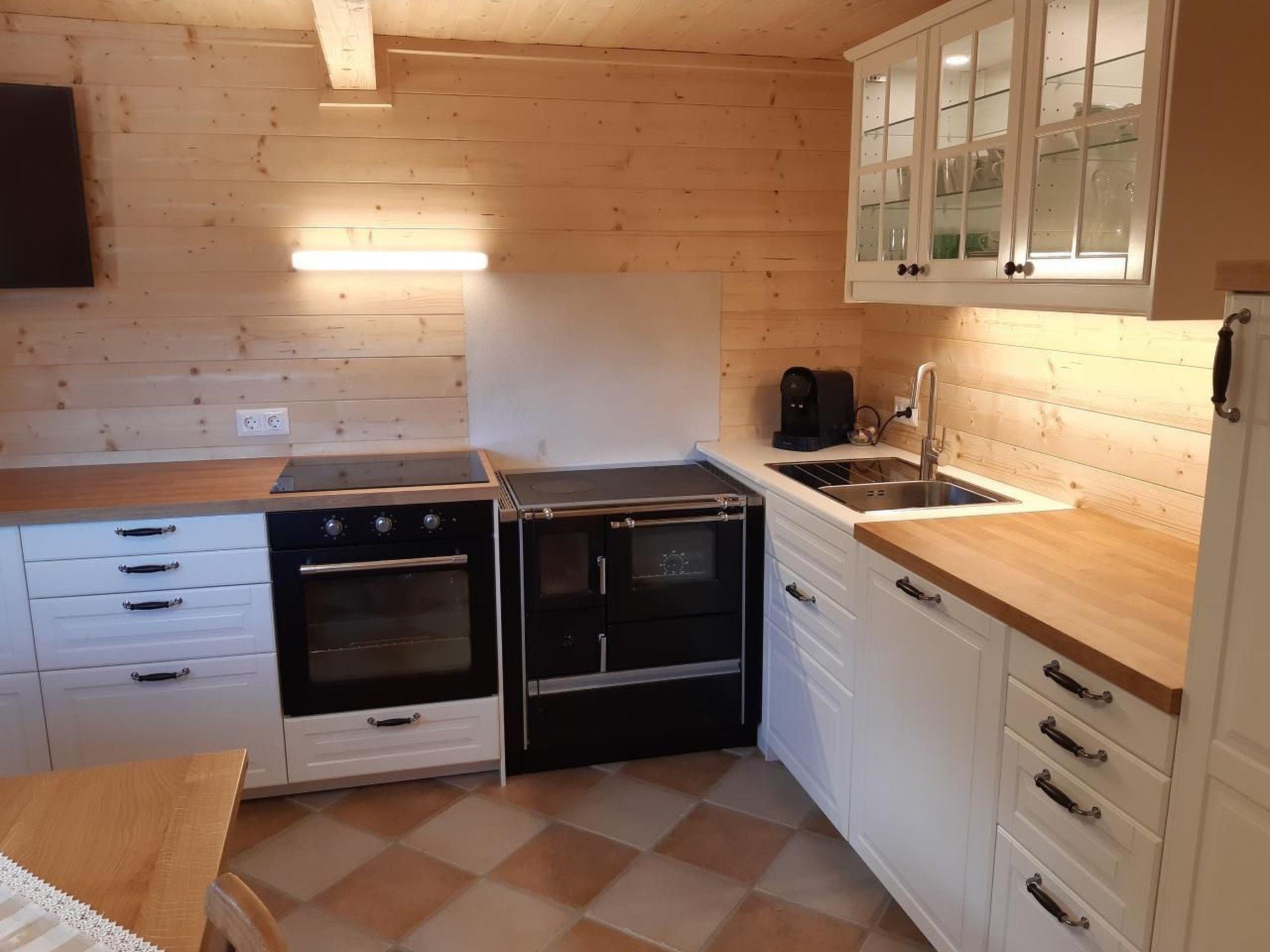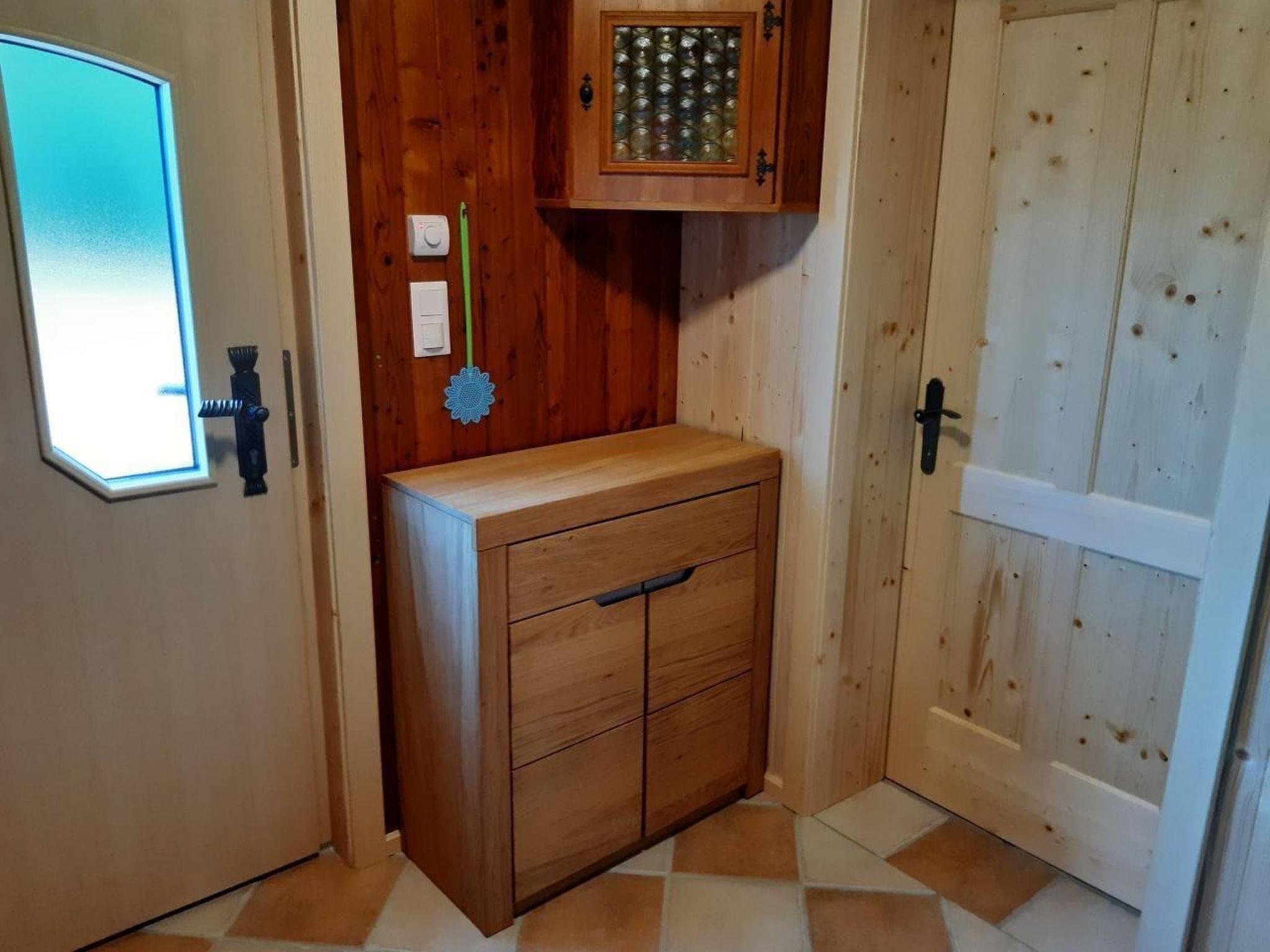 Inside the pond house you will find everything you need for a successful holiday: an inviting entrance hall, a cosy eat-in kitchen with all the essentials including a TV and corner bench, a bathroom with WC, equipped with washing machine, towel dryer and hairdryer. For your comfort, there are two lovingly furnished bedrooms on the upper floor, each equipped with a bedside cabinet, chest of drawers or wardrobe and infrared heating. A cot can be rented for the youngest guests.