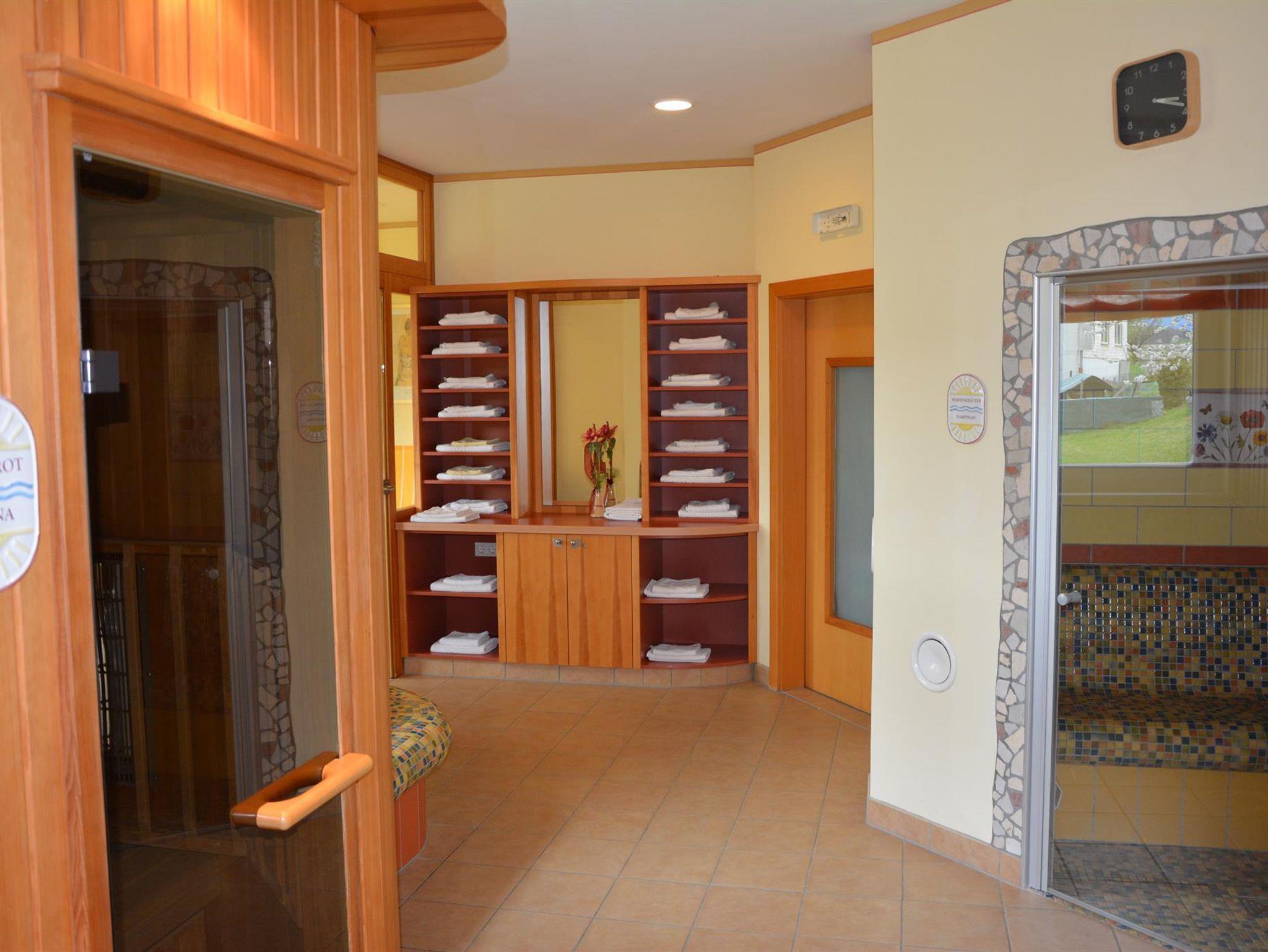 • Saunalandschaft mit Steirischer Stubensauna, Wiesenkräuterdampfbad, Infrarotsauna und einem Ruheraum zum Abschalten.