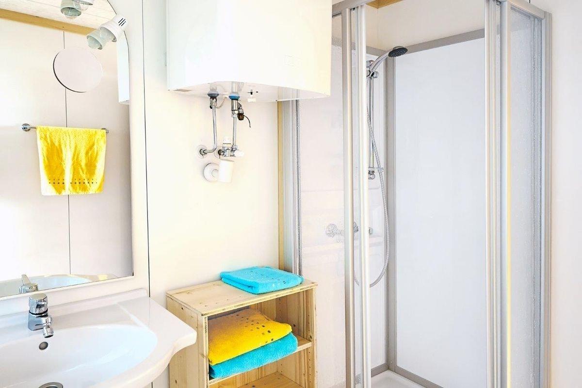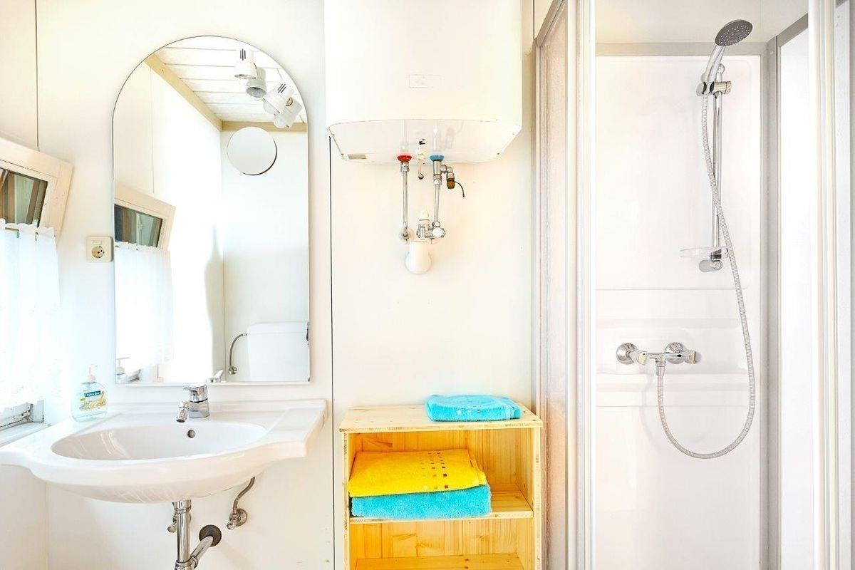 • 1 Badezimmer mit Dusche, Waschbecken und WC