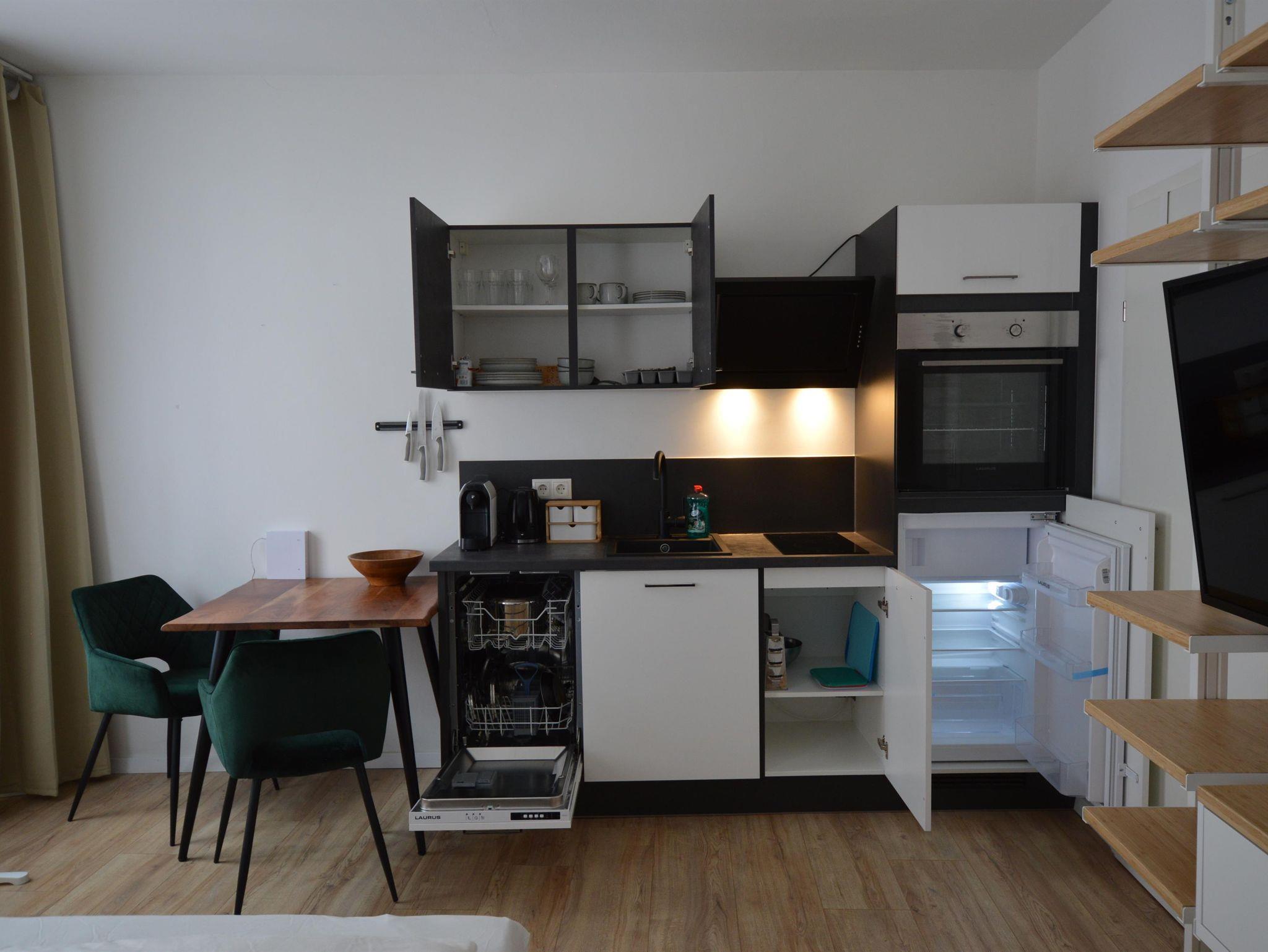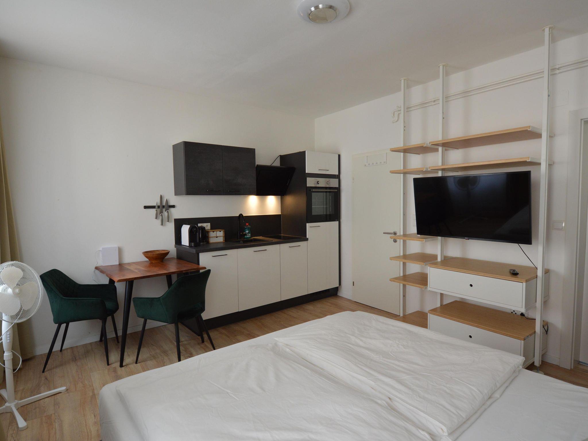 Unser modernes Studio Apartment bietet alles, was Sie für einen komfortablen Aufenthalt benötigen. Die stilvolle Einrichtung sorgt für eine angenehme Atmosphäre, während das bequeme Doppelbett für erholsame Nächte sorgt. Die voll ausgestattete Küche ermöglicht es Ihnen, sich selbst zu versorgen, mit einem Herd, Backofen, Geschirrspüler und einer Kaffeemaschine. Das helle Badezimmer ist mit einer Dusche, einem Einzelwaschtisch und einem Waschtrockner ausgestattet. Zusätzlich stehen Ihnen schnelles WLAN und ein Smart-TV zur Verfügung, sodass Sie sowohl für Arbeit als auch für Unterhaltung bestens ausgestattet sind. Das Apartment bietet somit einen idealen Rückzugsort für Paare, Geschäftsreisende oder Alleinreisende, die eine komfortable und gut gelegene Unterkunft in Graz suchen.