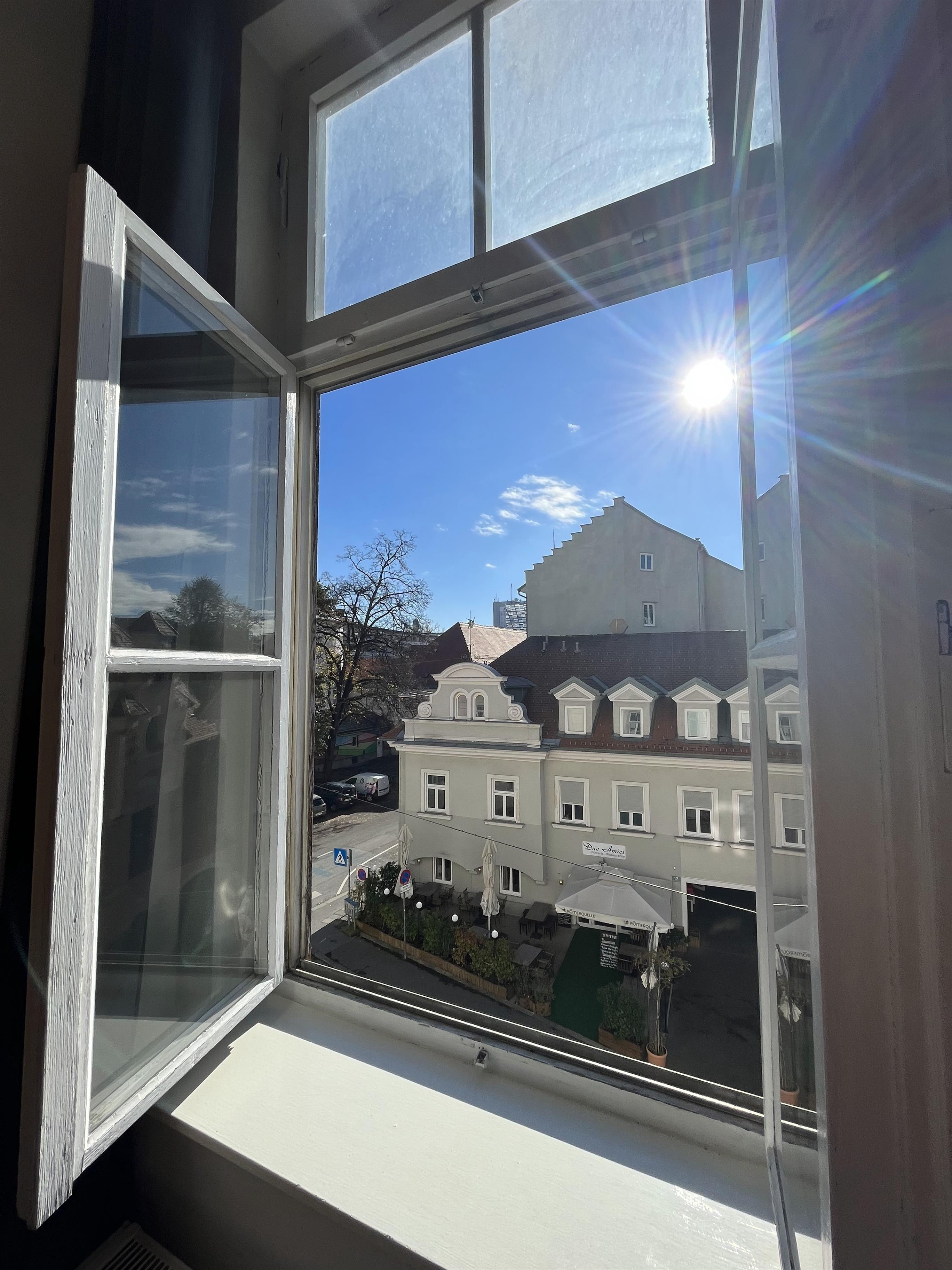 DAs Appartmnet ist Teil eines ehemaligen Klosters des gegenüber liegenden Elisabethinnen Spitals. Die dicken, alten Mauern halten den Raum im Winter warm und im Sommer das Appartment angenehm kühl.