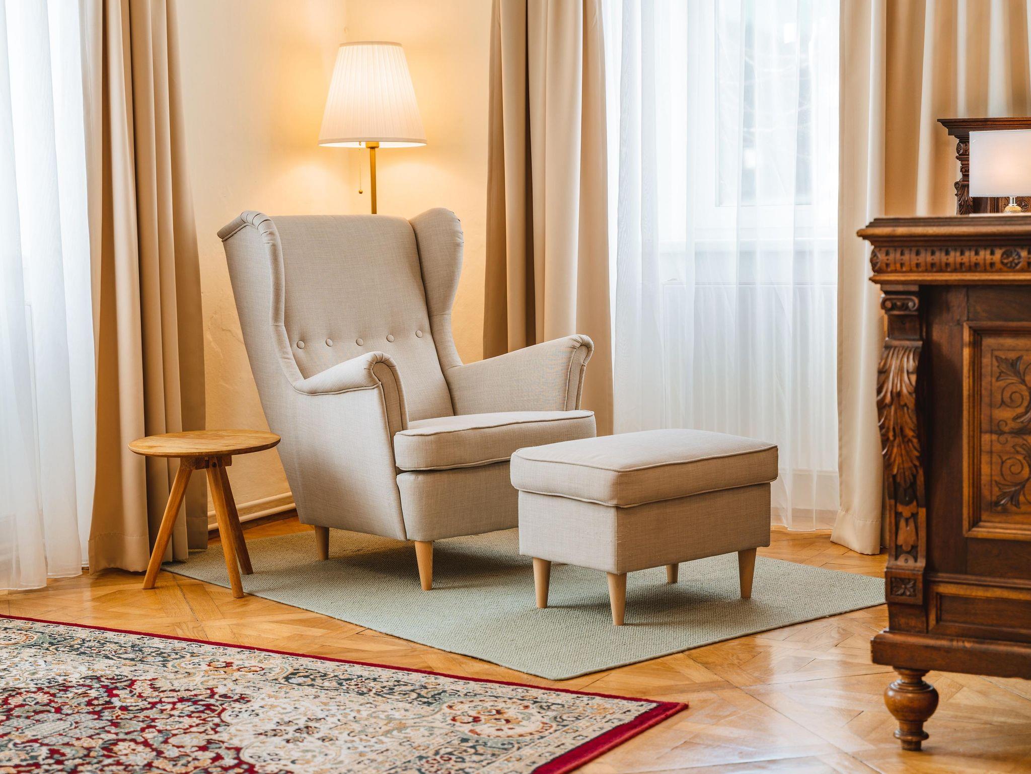 Geräumiges Zimmer im antiken Stil. Zusatzbett möglich.