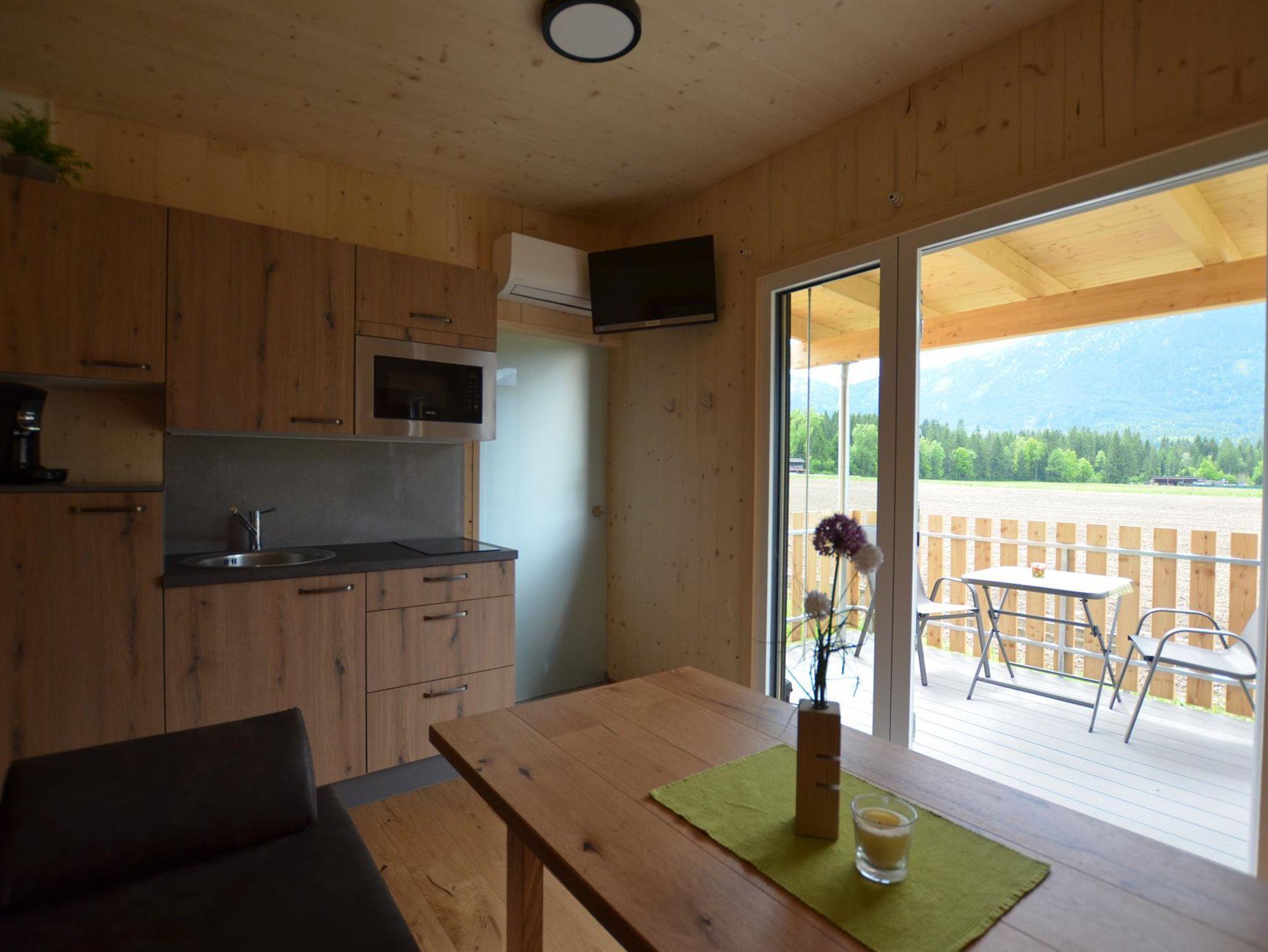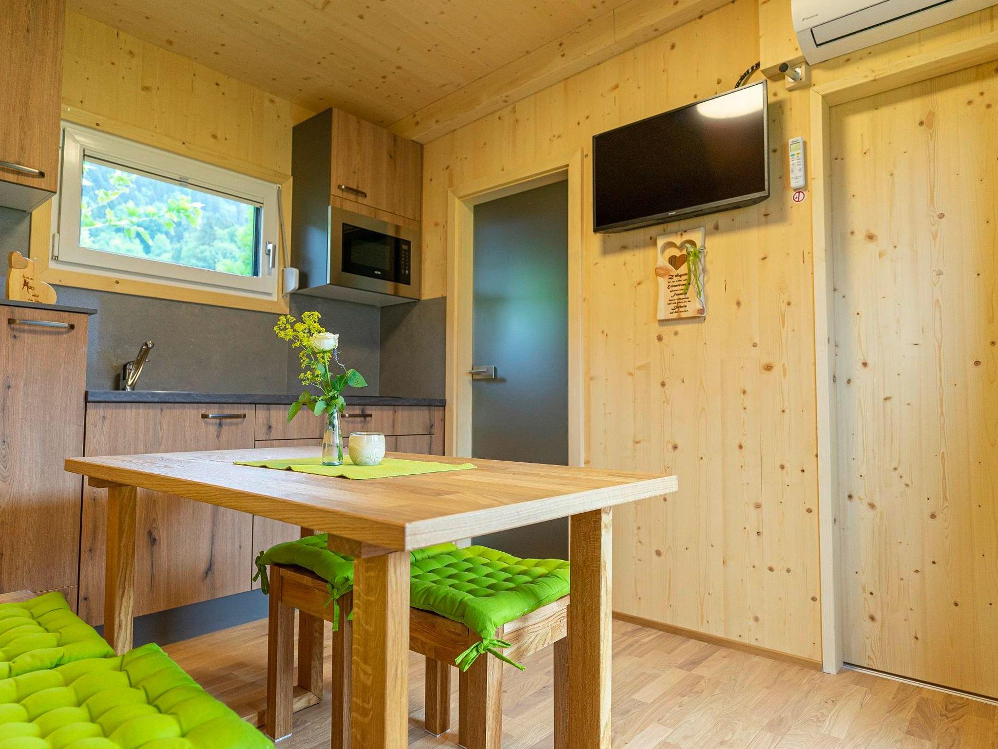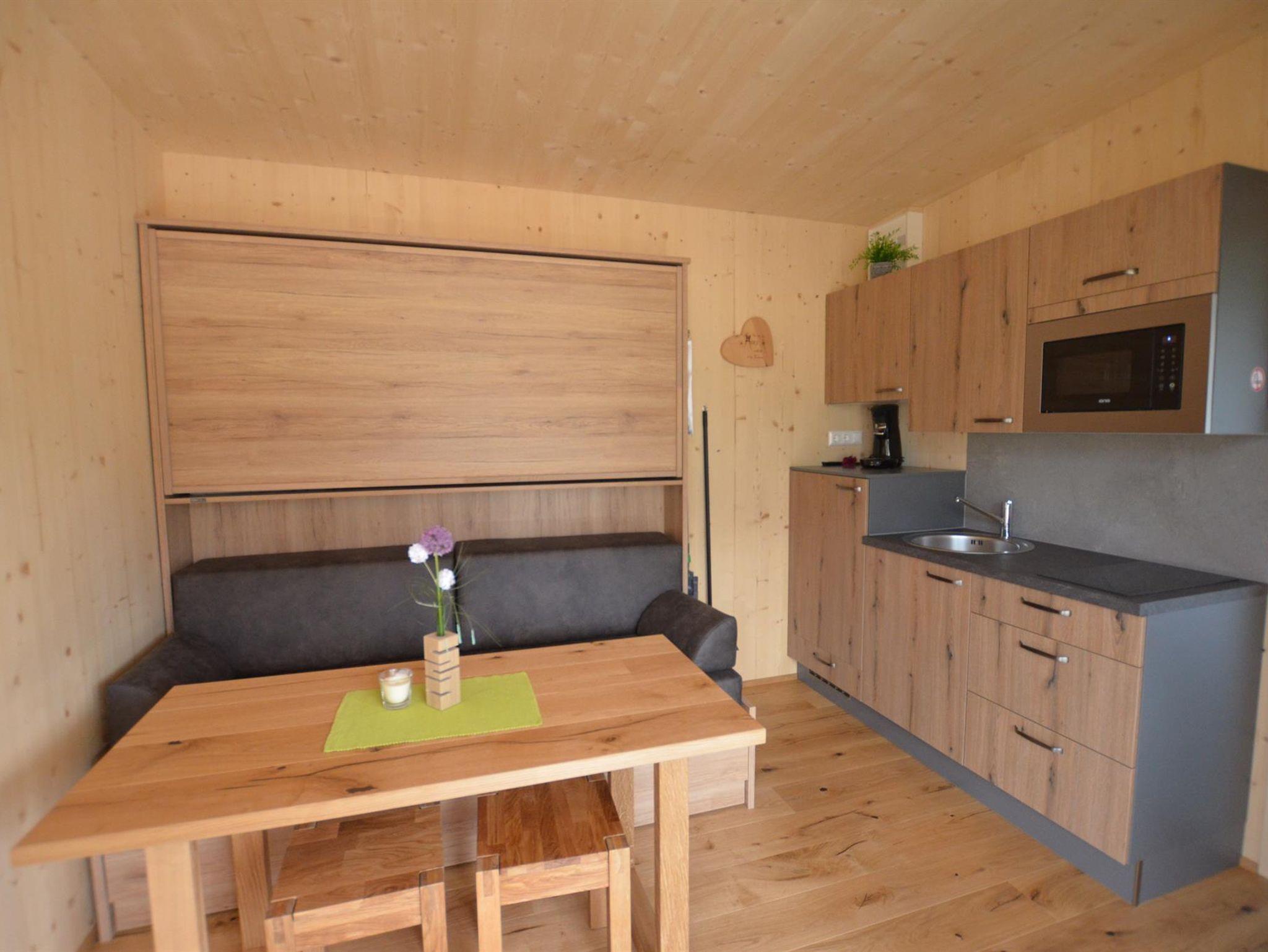 Das Reisskofel Blick Mobil Home ist mit Küche, Schlafzimmer mit 2 Betten ( 80x200), Sitzgarnitur mit Option zum Bettumbau, eigenem Bad und WC sowie einer kleinen überdachten Terrasse, die keine Wünsche offen lässt, ausgestattet.