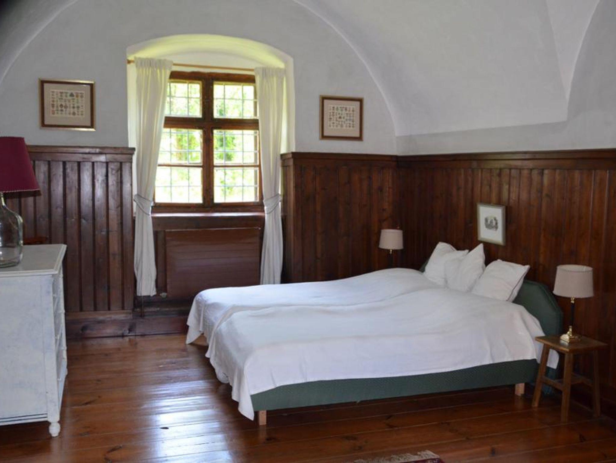 Die ruhigen Fereinwohnungen mit direktem Gartenzugang befinden sich im Nebengebäude mit Blick auf das Schloss. Die gewölbten Räume bieten ein angenehmes Klima und das Amiente eines historischen Gebäudes.