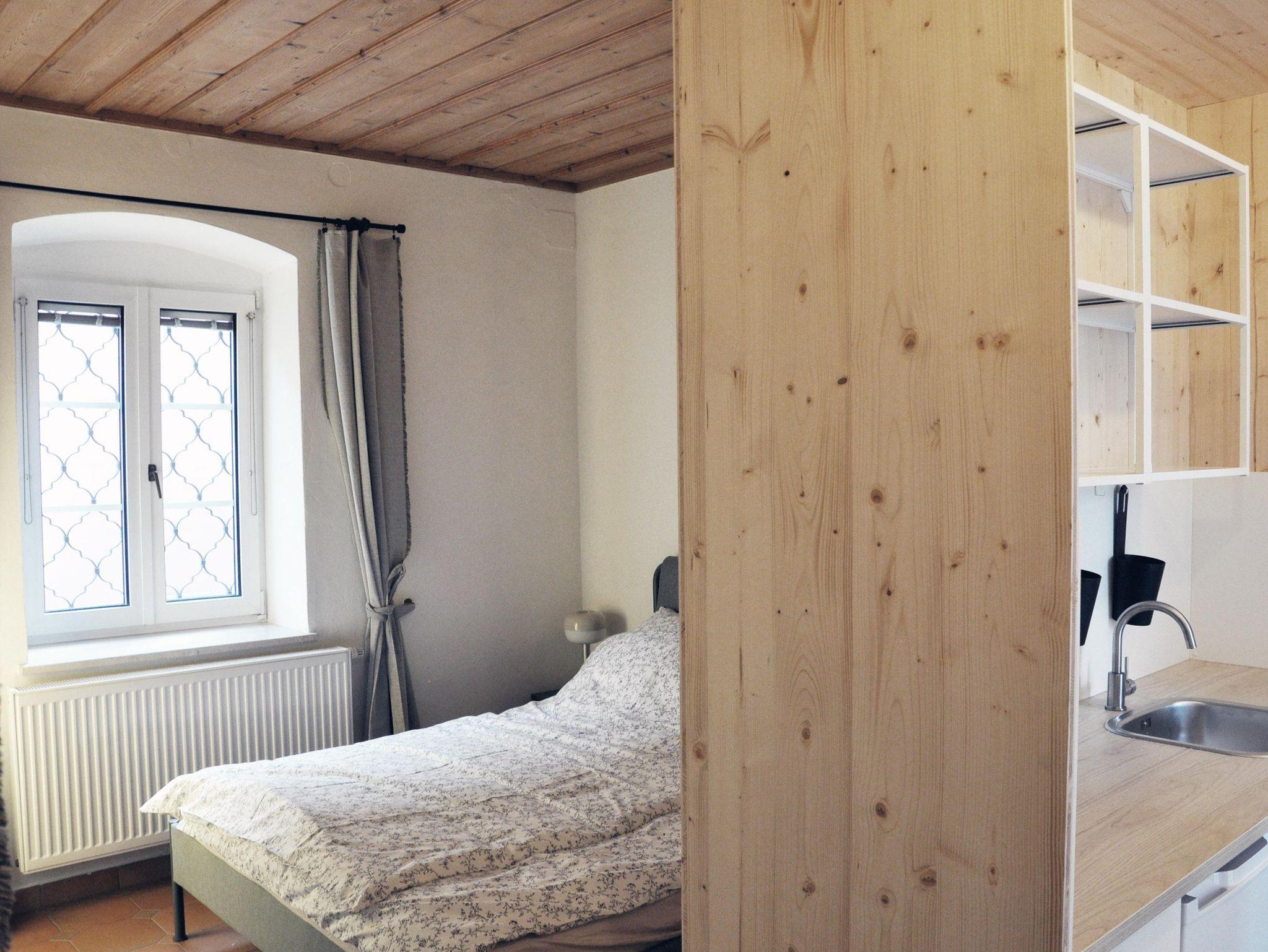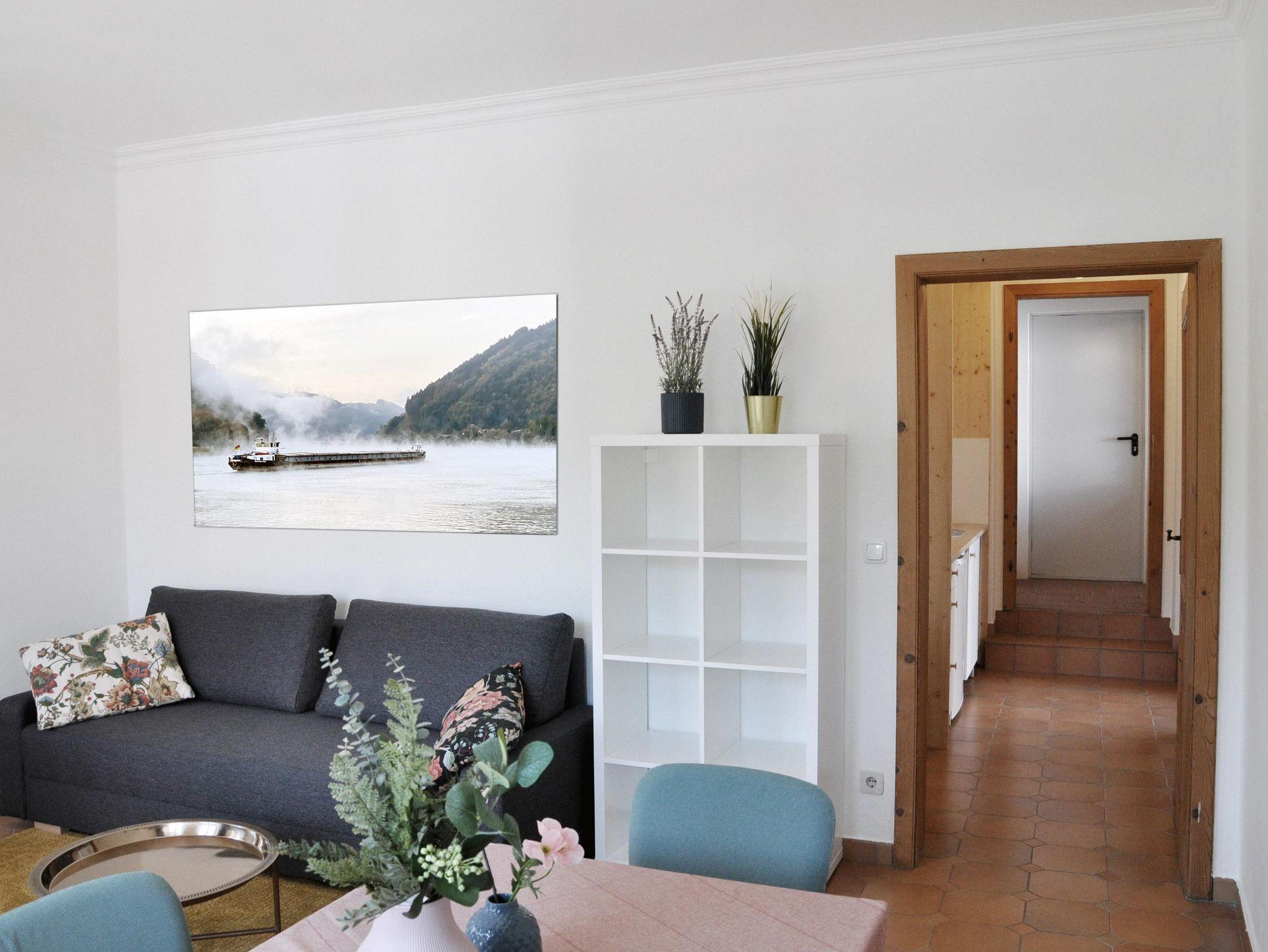 Die charmante Ferienwohnung befindet sich im Erdgeschoß und bietet einen wunderschönen Blick auf die Donau. Sie verfügt über zwei getrennte Zimmer, eine Küchennische, ein gemütliches Doppelbett und eine Schlafcouch für zusätzliche Gäste. Das Badezimmer ist mit einer Dusche und WC ausgestattet.