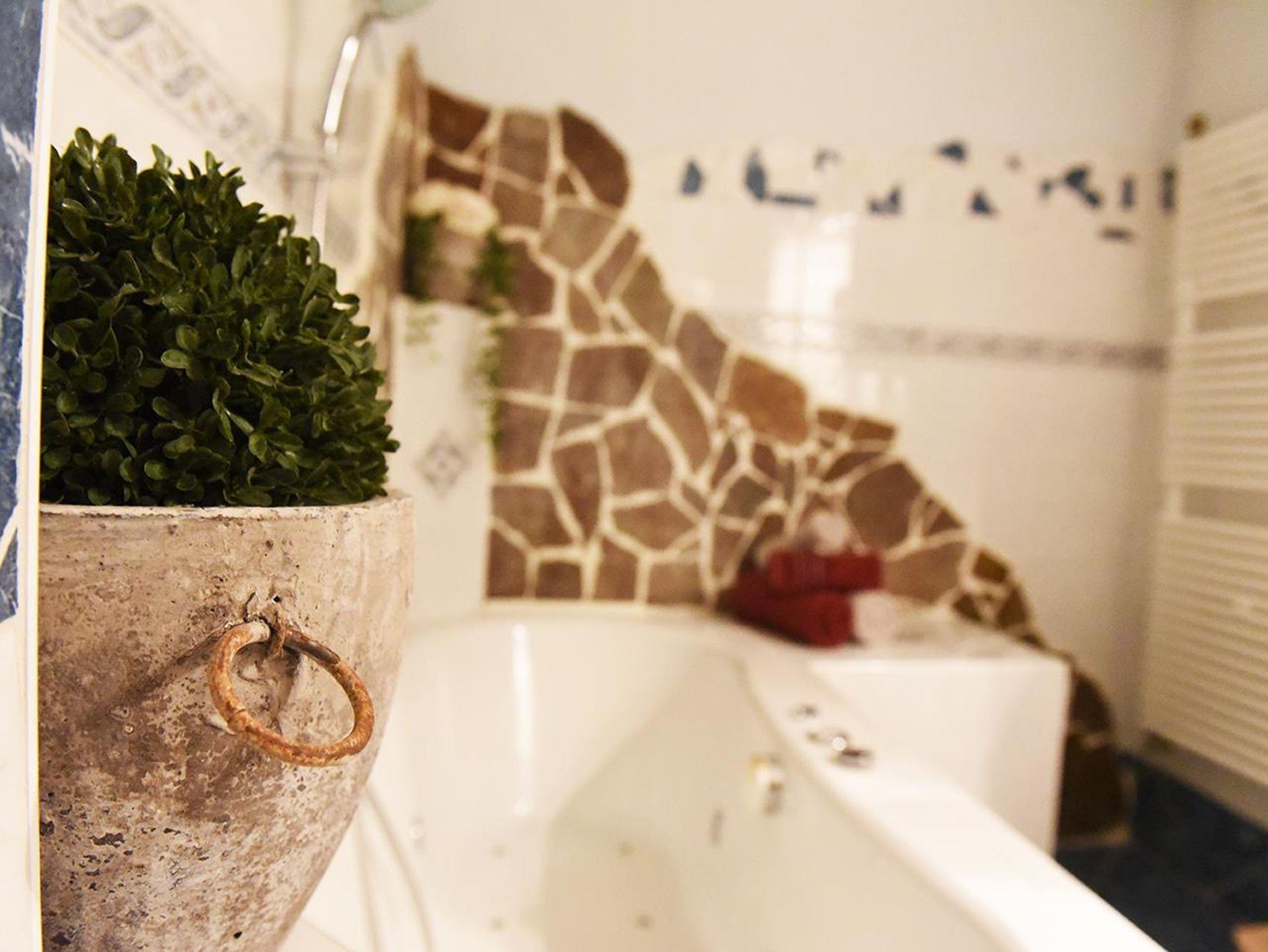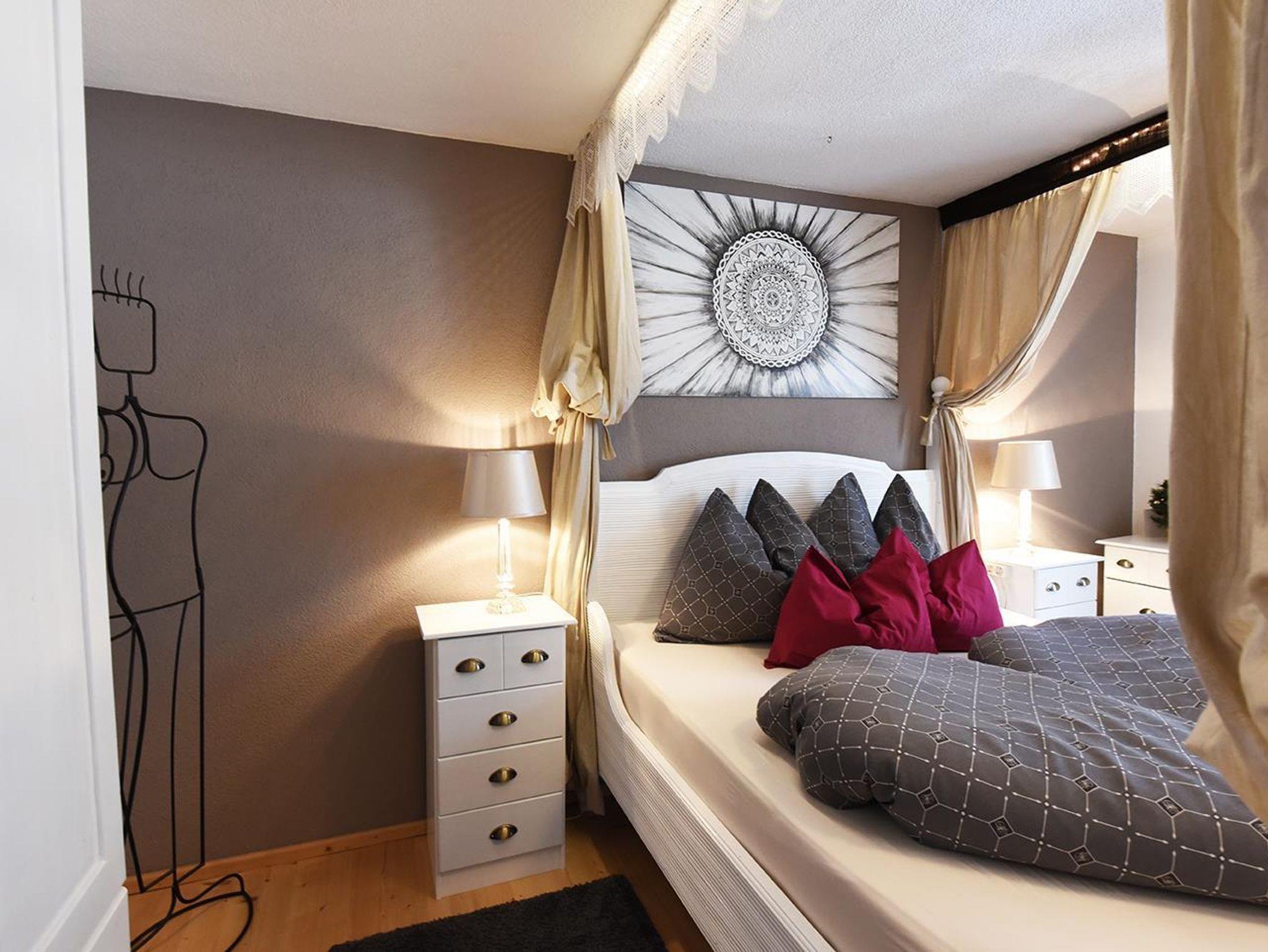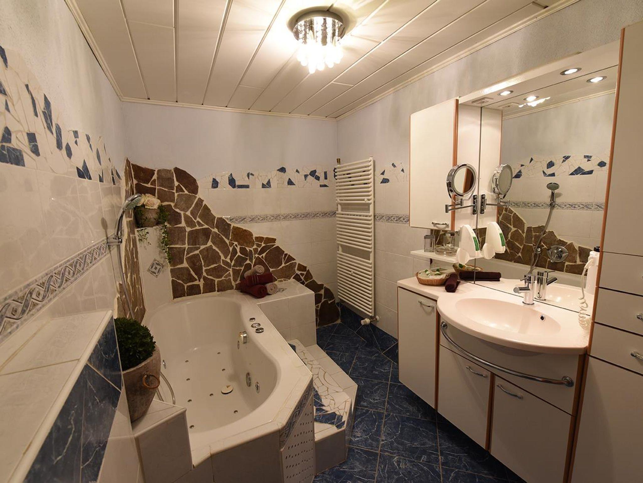 -SZ Himmelbett Schlafcouch SAT Balkon -WZ Schlafcouchen Küchenzeile Waschmaschine Essecke Balkon SAT -Bad Whirlpool, WC -Diele Infrarotkabine -3 WCs im Allgemeinbereich