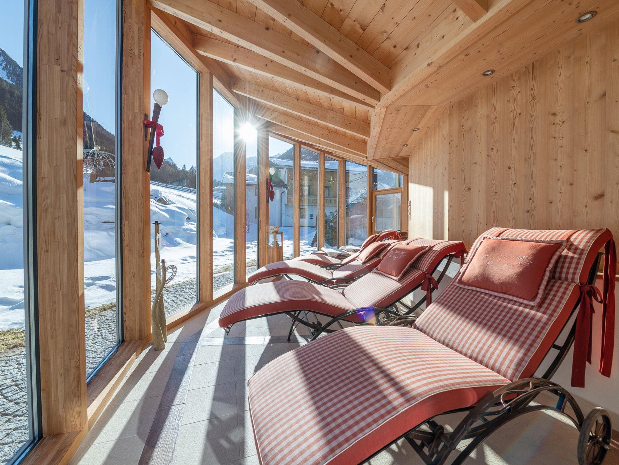 Der Wellnessbereich ist ausgestattet mit Sauna, Wärmekabine, Granderwasser und einem Ruheraum der zu einem einzigartigen Panoramablick in die Alpenwelt einlädt.