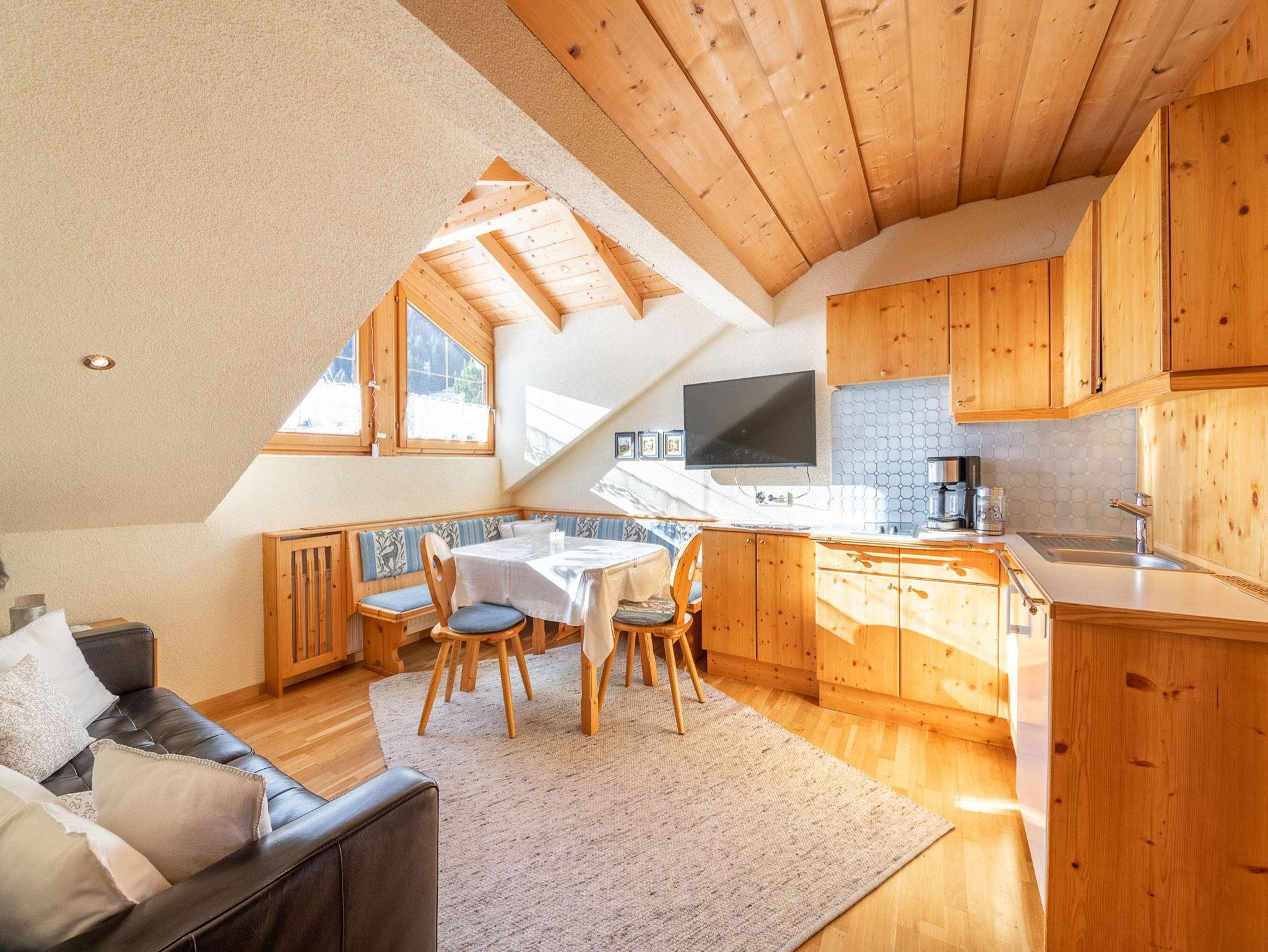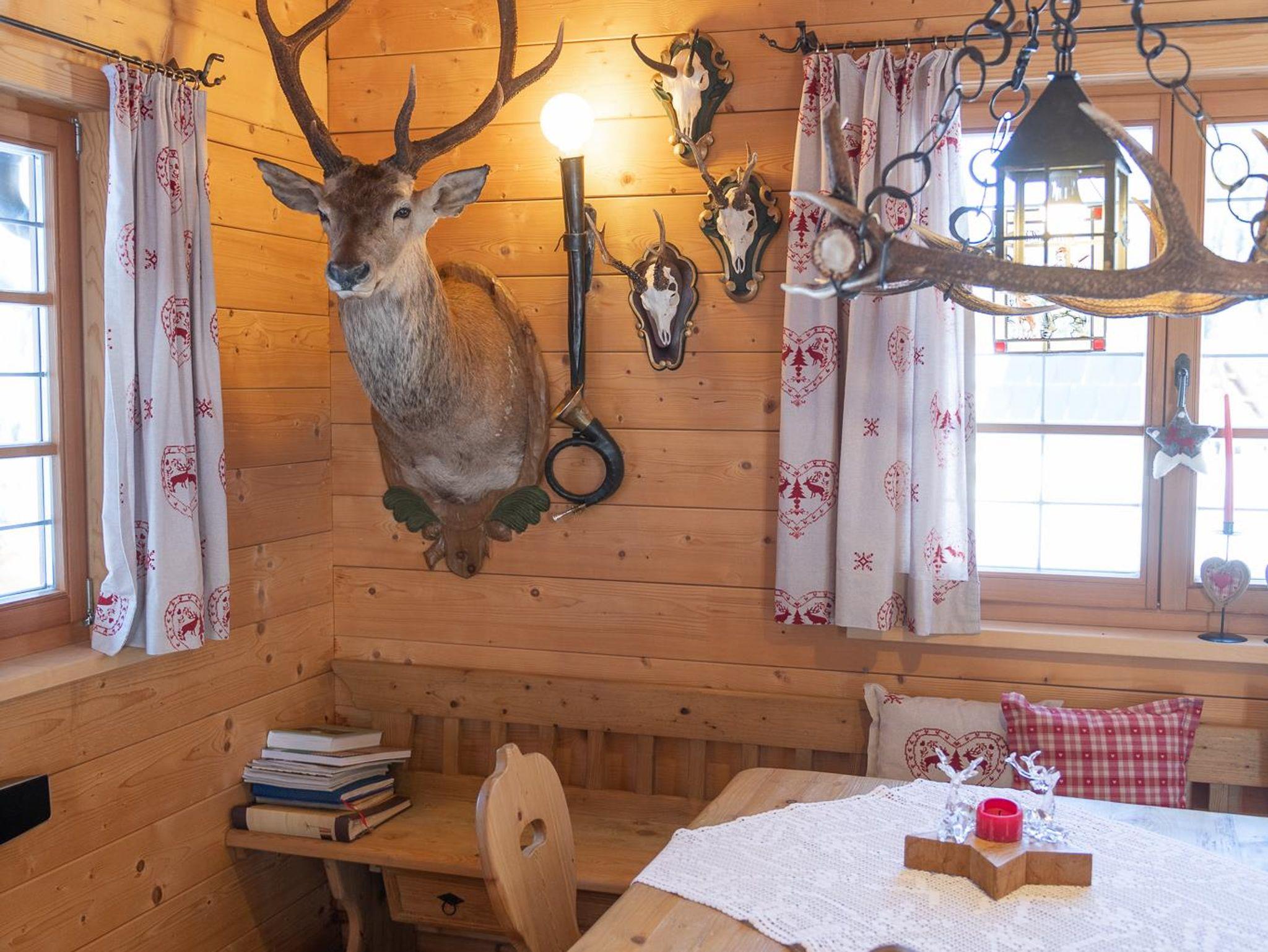 Die Ferienwohnung ist mit restaurierten Bauernmöbeln aus Zirbenholz ausgestattet.