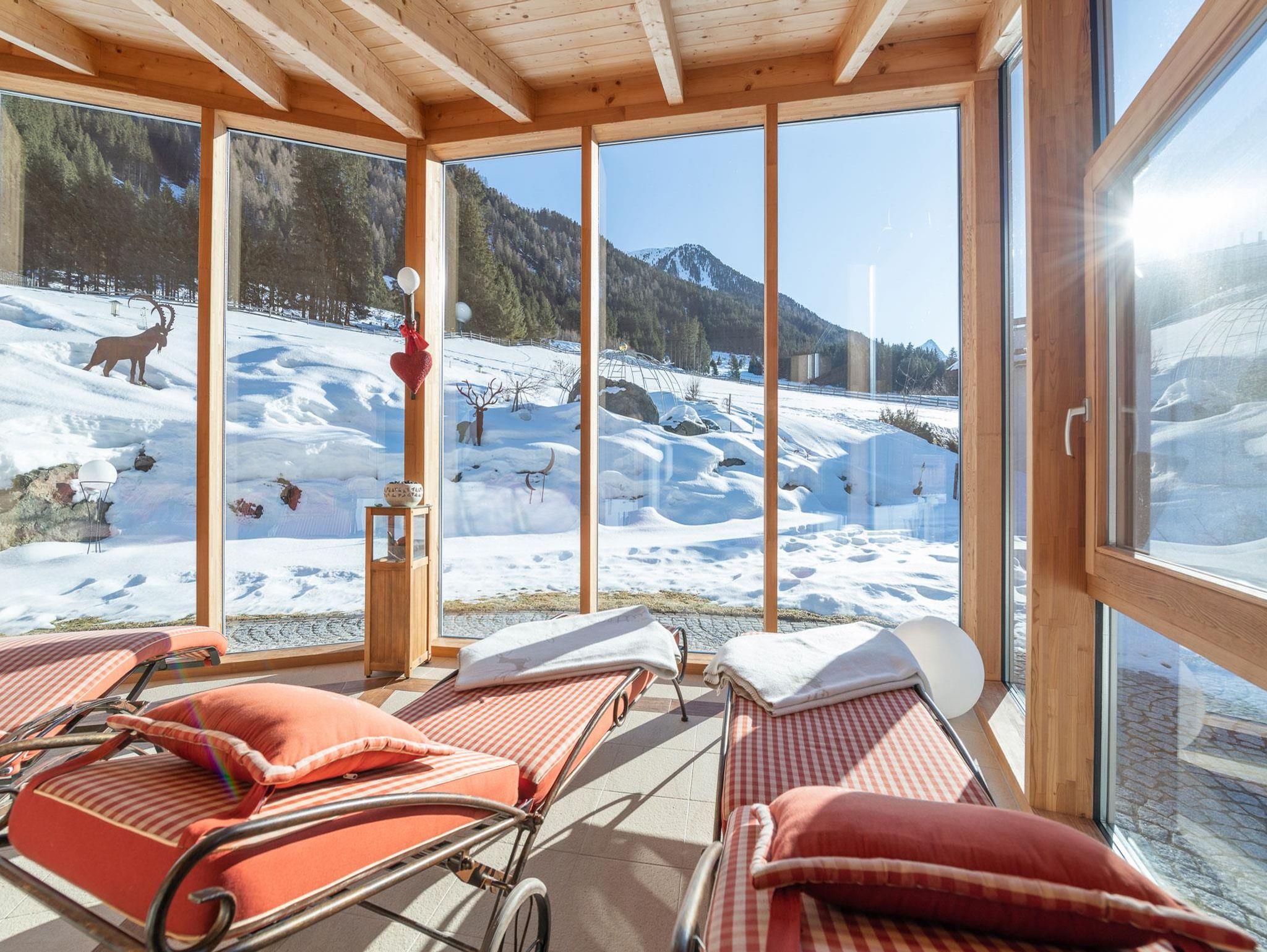 Der Wellnessbereich ist ausgestattet mit Sauna, Wärmekabine, Granderwasser und einem Ruheraum der zu einem einzigartigen Panoramablick in die Alpenwelt einlädt.