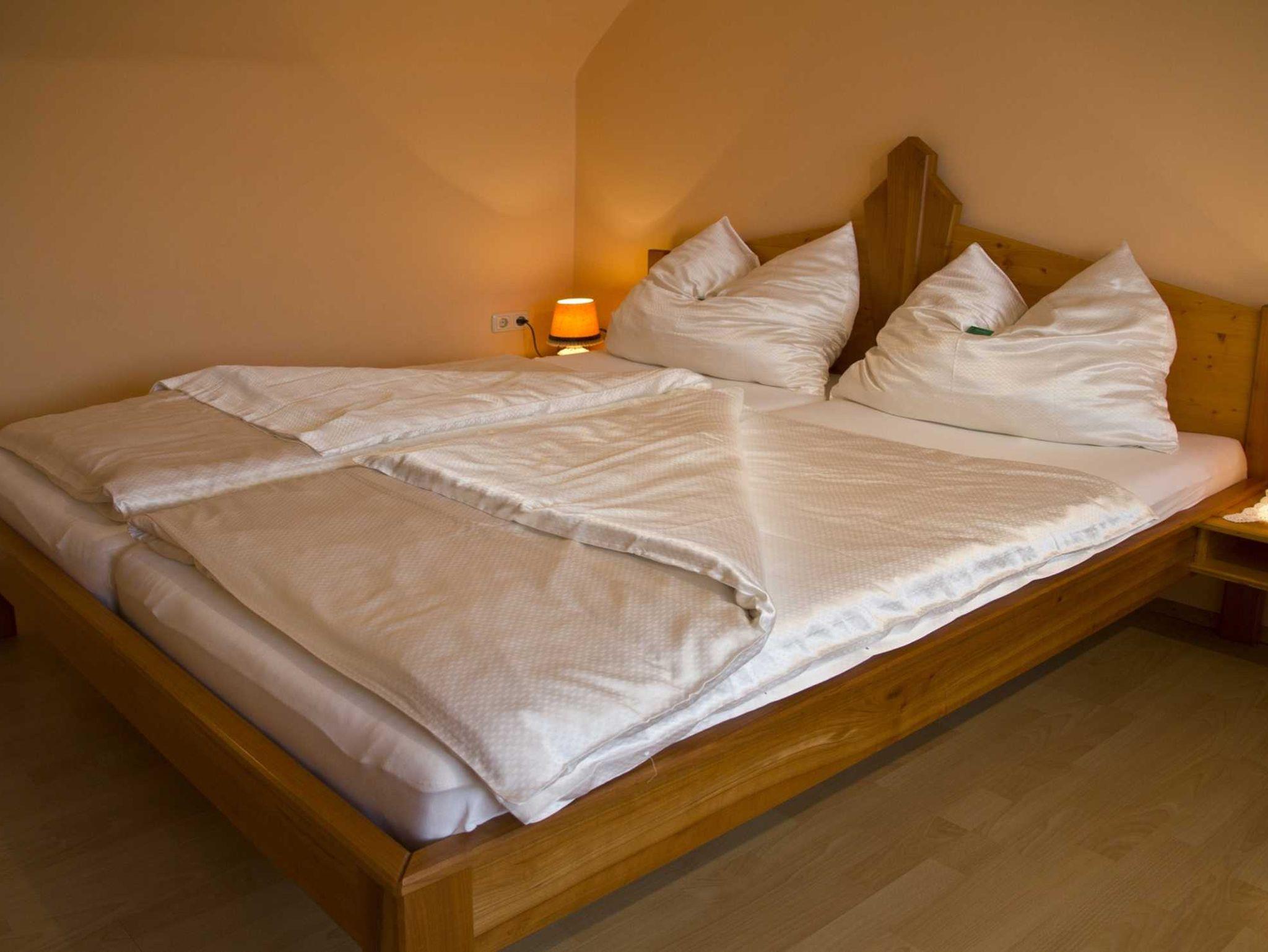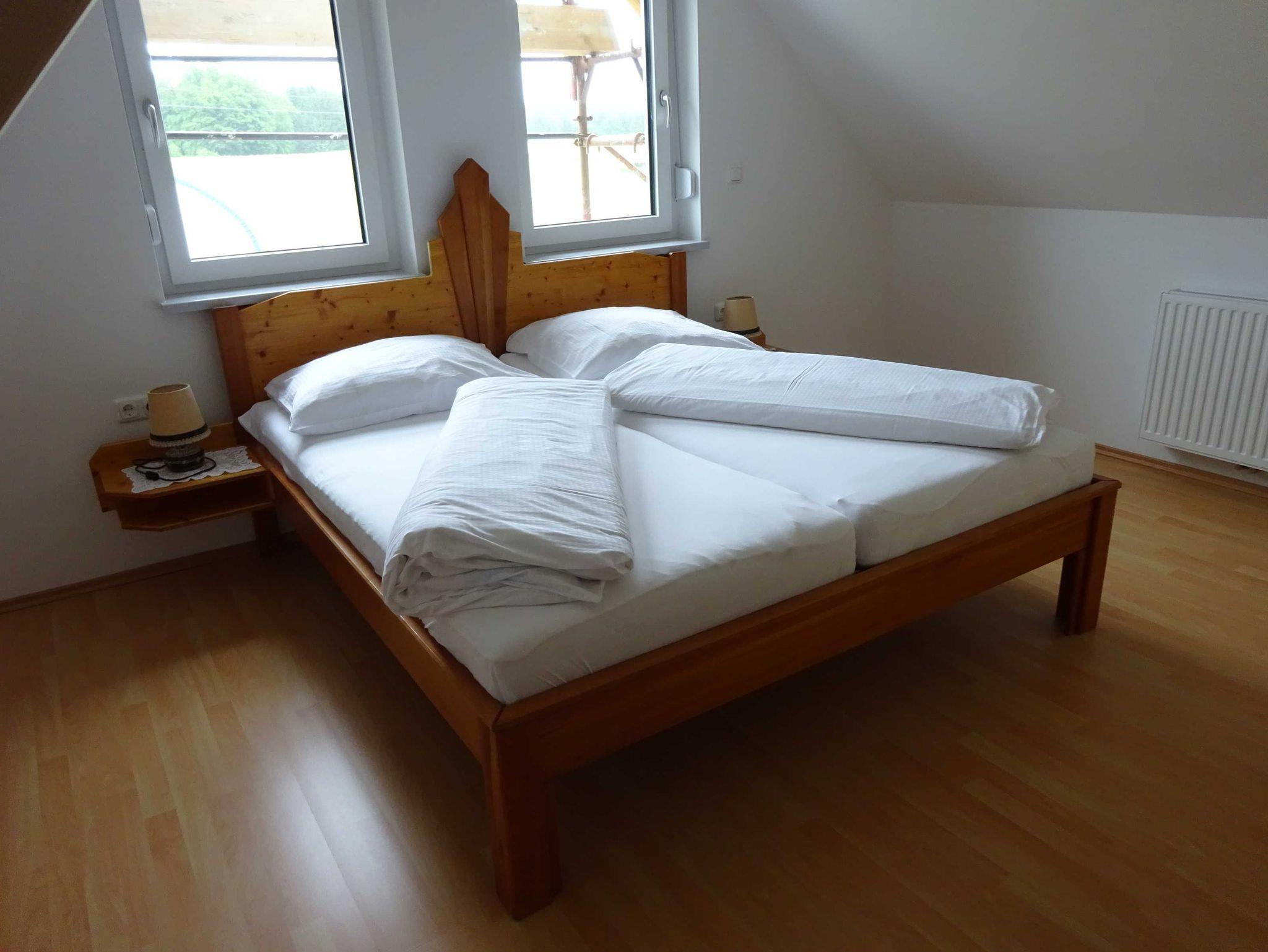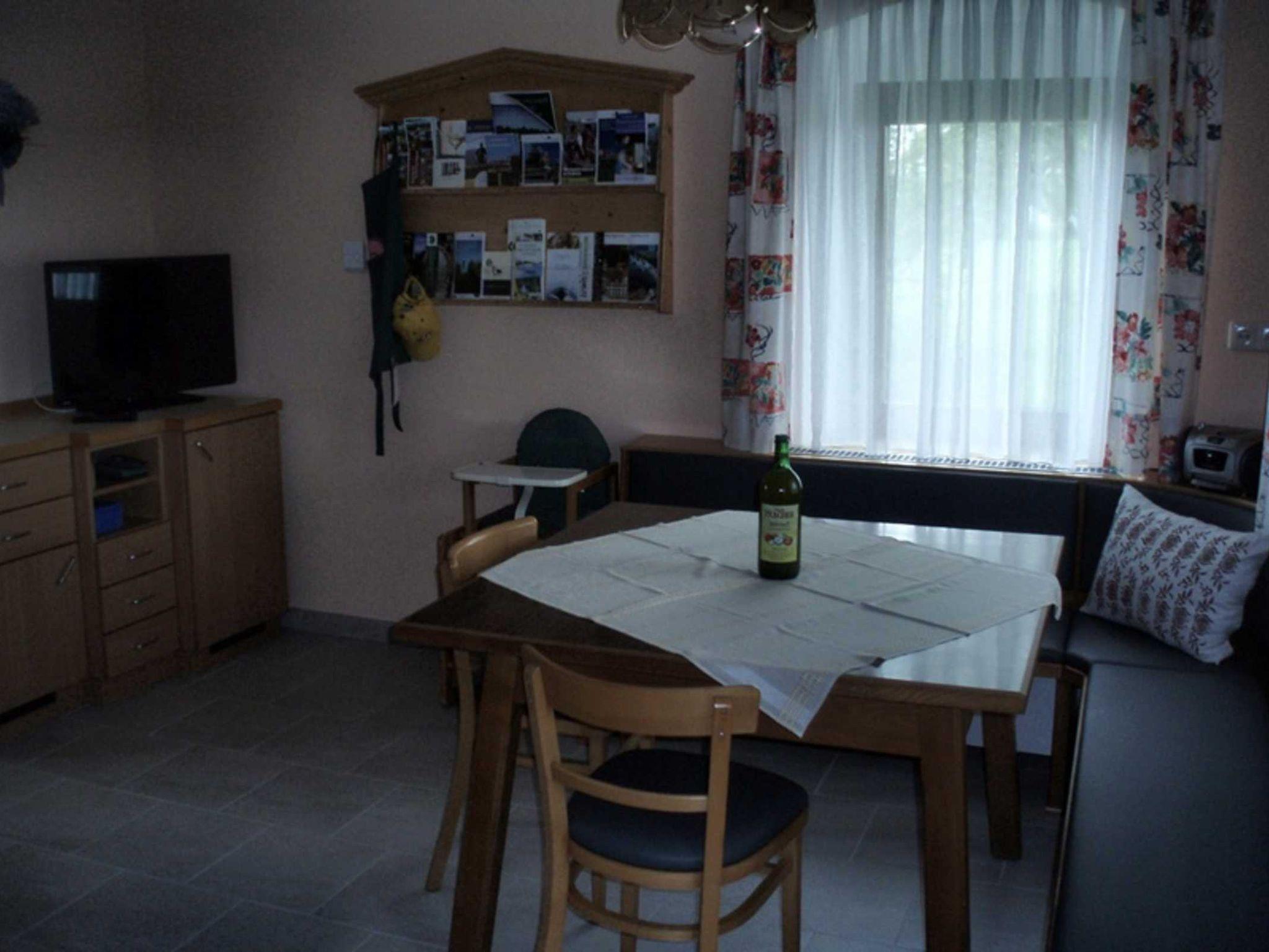Ferienwohnung mit Wohnküche, Badezimmer, ein Doppelzimmer und ein Zimmer mit zwei Einzelbetten. Gitterbett bzw. ausziehbare Couch wären ebenfalls vorhanden. Großer Aufenthaltsraum im Erdgeschoss. Carport für Auto steht zur Verfügung.