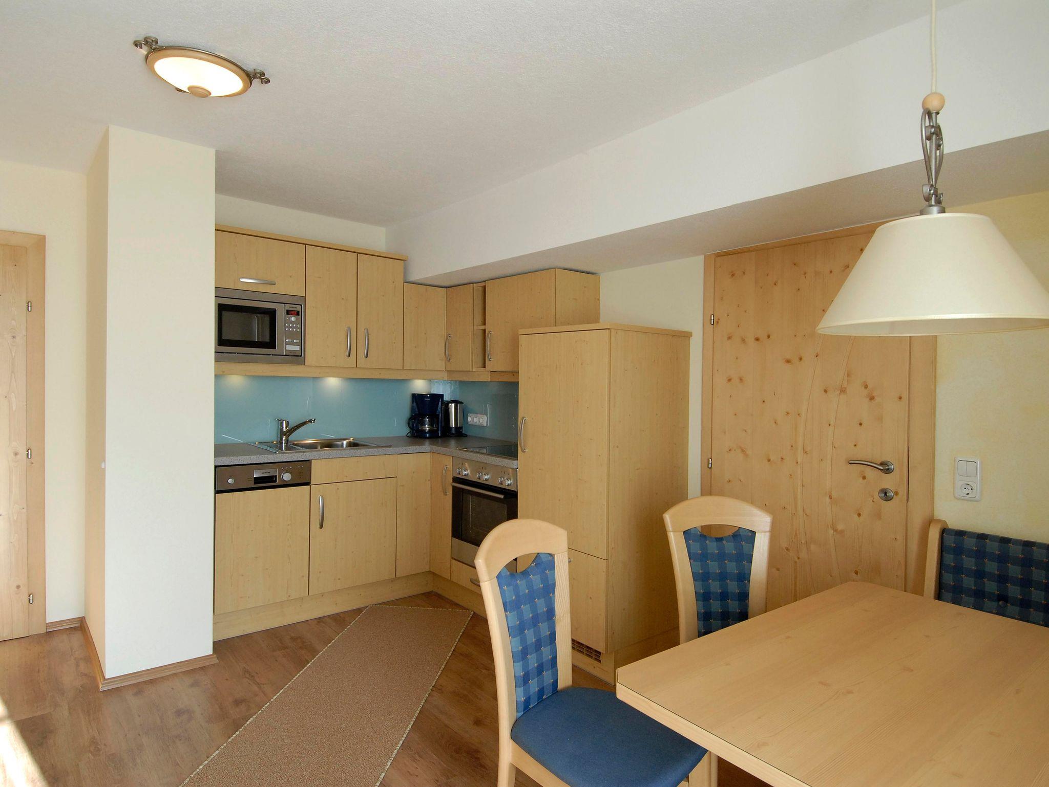 • Voll ausgestattete Kochnische mit Herd, Backofen, Geschirrspüler, Mikrowelle, Kühlschrank, Kaffeemaschine und Wasserkocher.