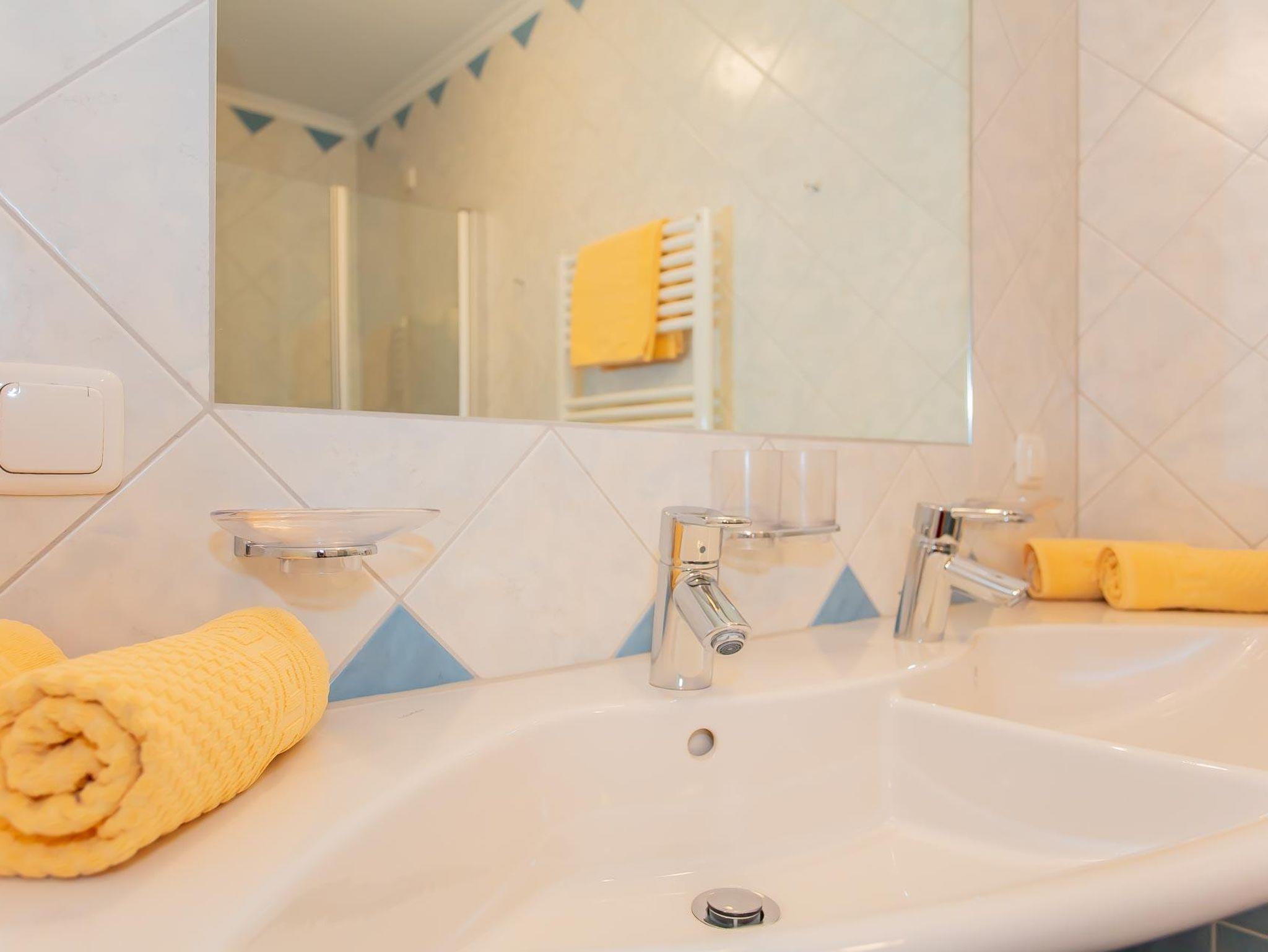 Ferienwohnung für 4 - 6 Personen, rollstuhlgerecht, Wohnküche mit Essbereich und Ausziehcouch, 2 getrennte Schlafzimmer (1x mit Doppelbett, 1x mit zwei getrennten Betten), DU und WC getrennt, Parterrewohnung mit Garten.