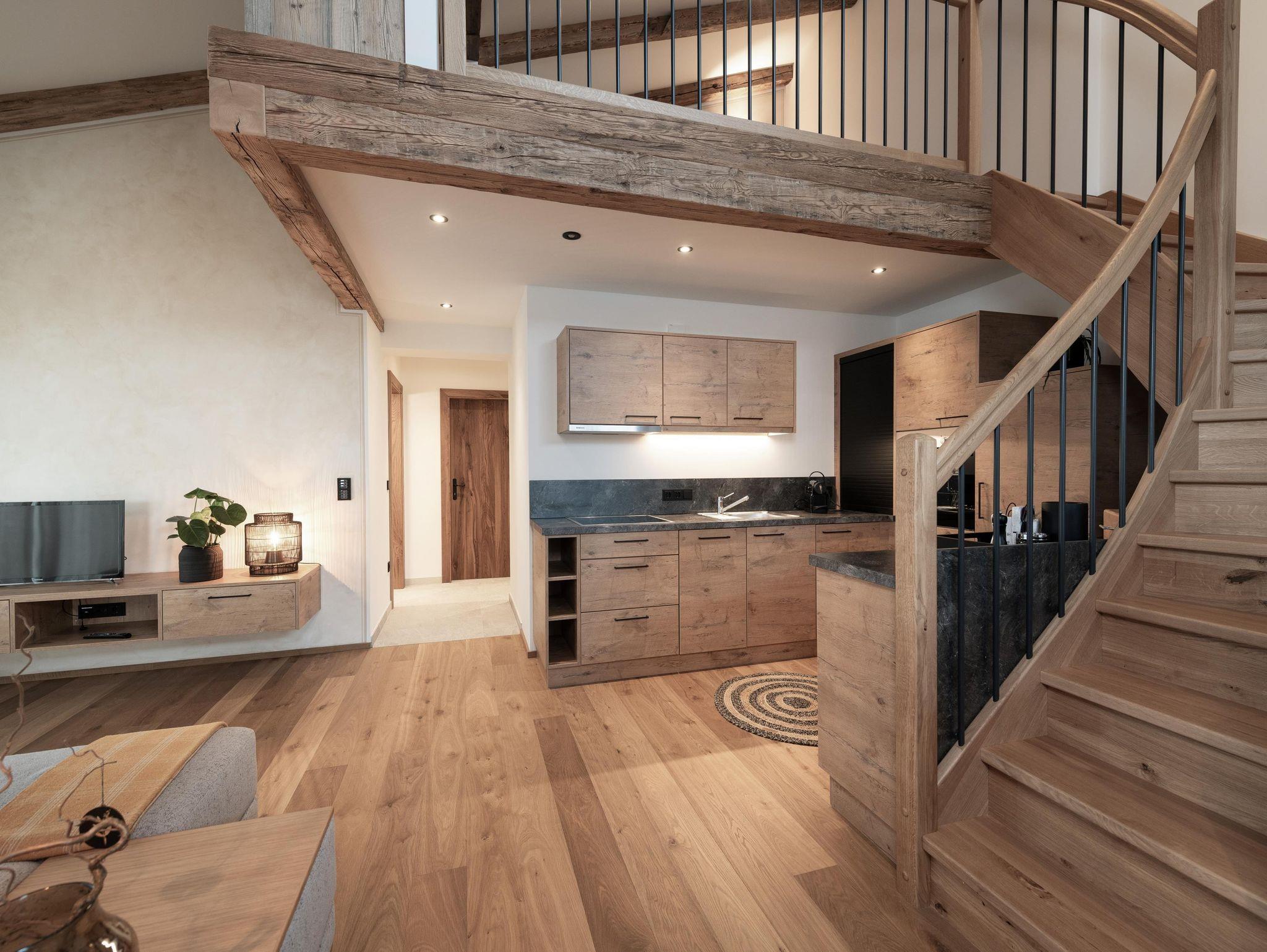 Willkommen in der Loft Mia, Deinem perfekten Rückzugsort für einen erholsamen Aufenthalt. Das 75 m² Apartment befindet sich 2. Stock und bietet 1 Doppelzimmer, einen gemütlichen, modernen Wohnbereich (mit Doppelschlafcouch) aus hochwertigen, heimischen Holz inklusive Küche und Flat-TV sowie Galerie (Doppelschlafcouch). Das Bad verfügt über Dusche und WC. Genieße den Komfort einer eigenen Unterkunft und entspanne in ruhiger Umgebung. Der Balkon hat wunderbaren Ausblick.