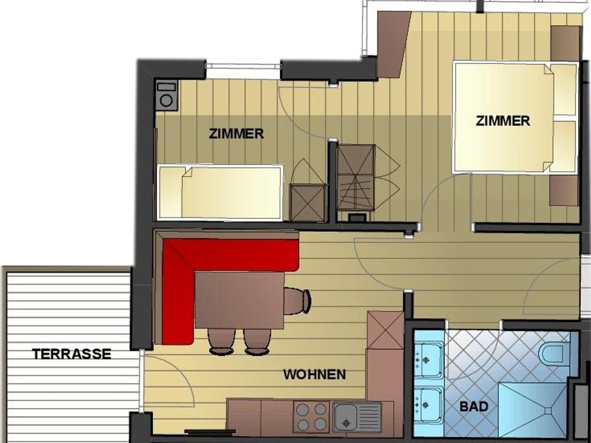 Das Appartement hat 2 Schlafzimmer, 1 davon mit Verbindungstür. Die Küche ist komplett mit Backrohr, E-Herd mit Cerankochfeld, Geschirrspüler, Wasserkoche, Kaffeemaschine und Kühlschranke mit Gefrierfach ausgestattet. Im Appartement Edelweiß gibt es 1 x Dusche/WC. Flat-TVs, Fön, Telefon, Safe und kostenloses highspeed W-Lan sind selbstverständlich.