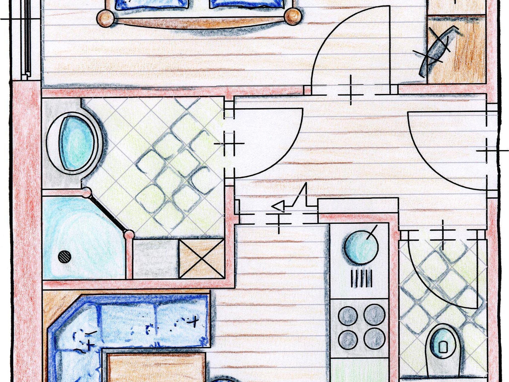 - Wohnküche mit Tisch für 2-4 Personen mit gemütlichen Wohnbereich - 1 Schlafzimmer - 1 Badezimmer mit separatem WC - Im Wellnessbereich: Sauna, Dampfbad, Infrarotkabine, Dusche, Ruhebereich