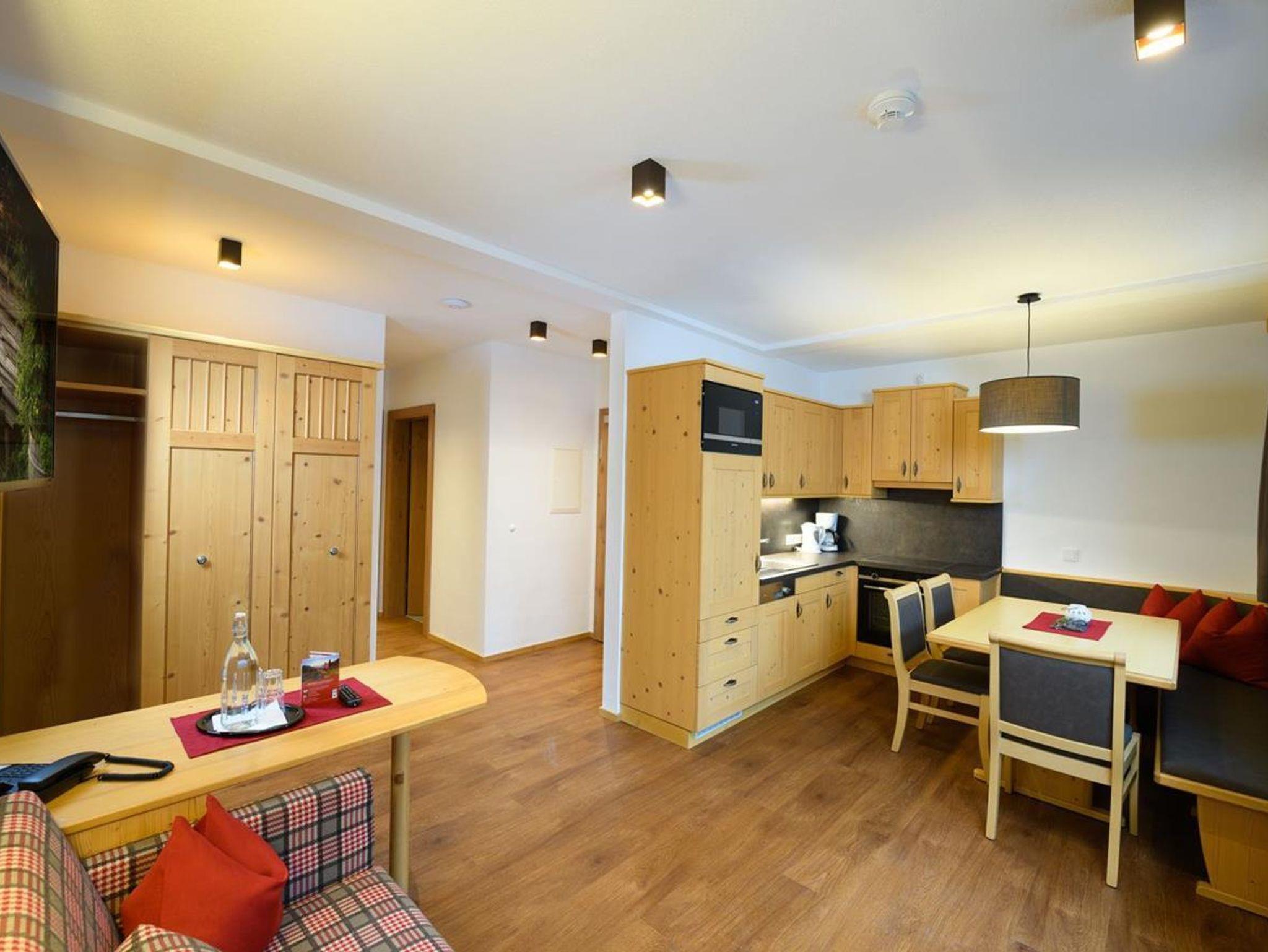Die Küche ist komplett mit Backrohr, E-Herd mit Cerankochfeld, Geschirrspüler, Wasserkocher, Kaffeemaschine und Kühlschrank mit Gefrierschrank ausgestattet. Zimmersafe, Fön, Telefon, Flat-TVs und kostenloses highspeed W-Lan sind selbstverständlich.