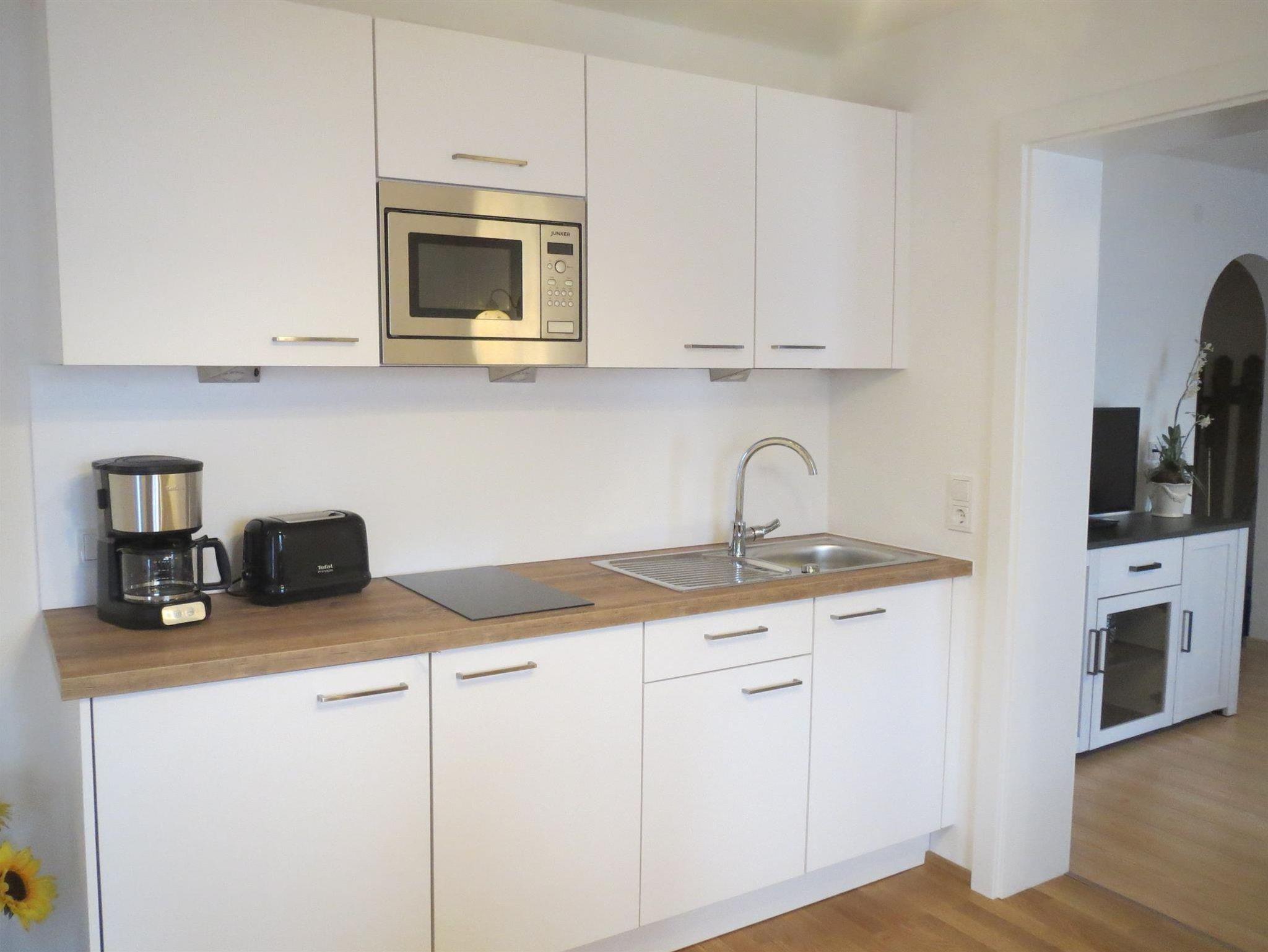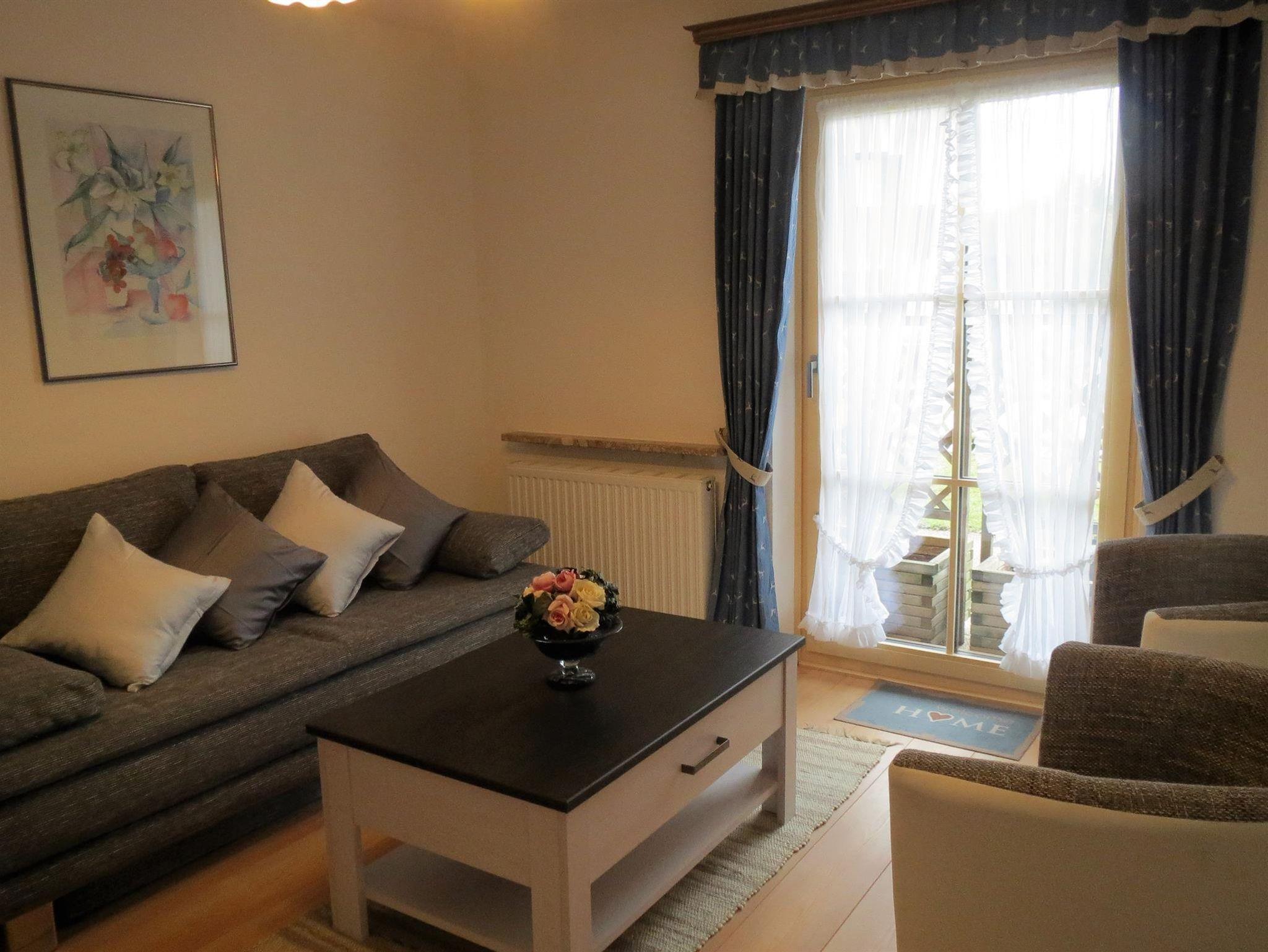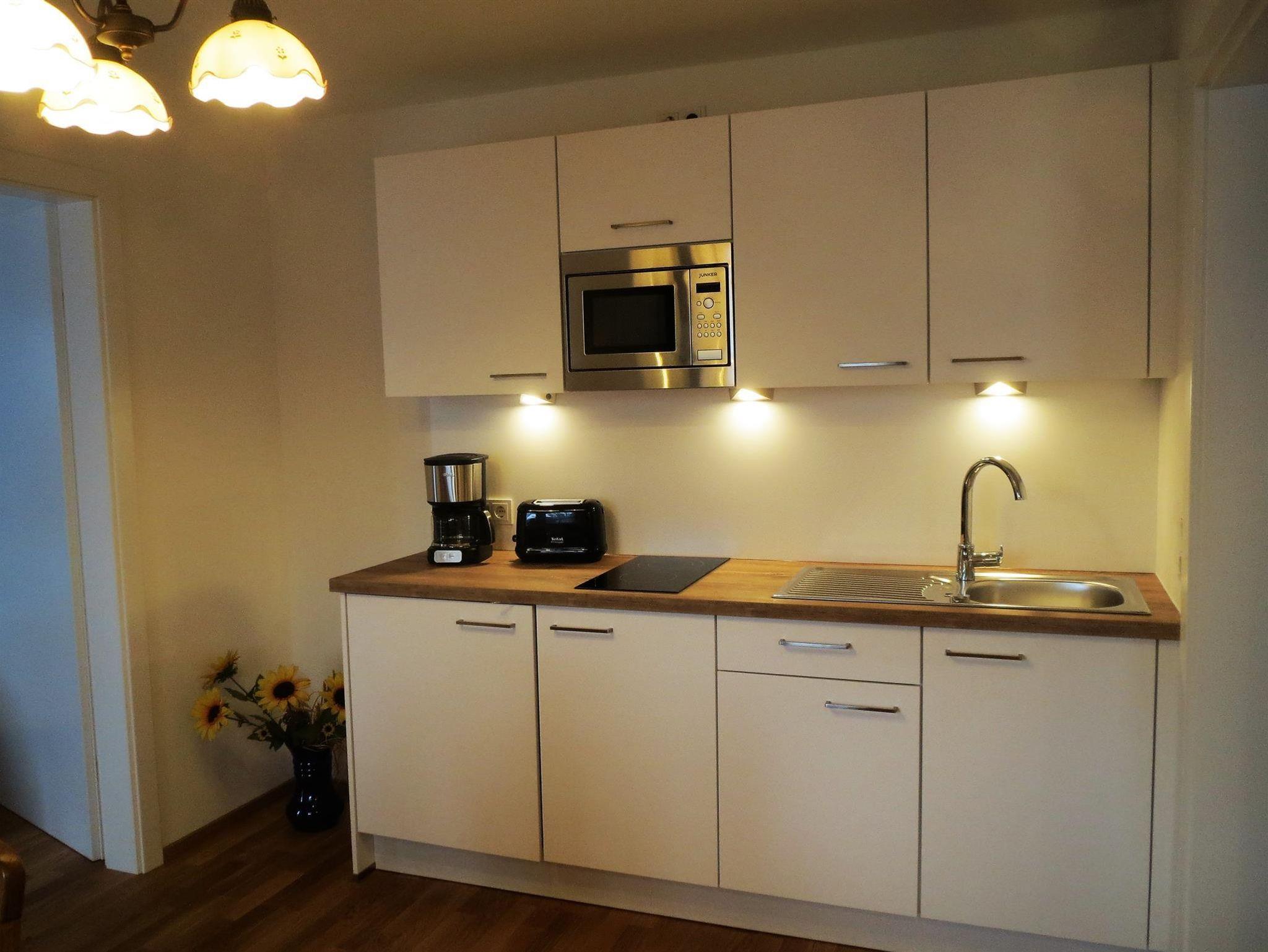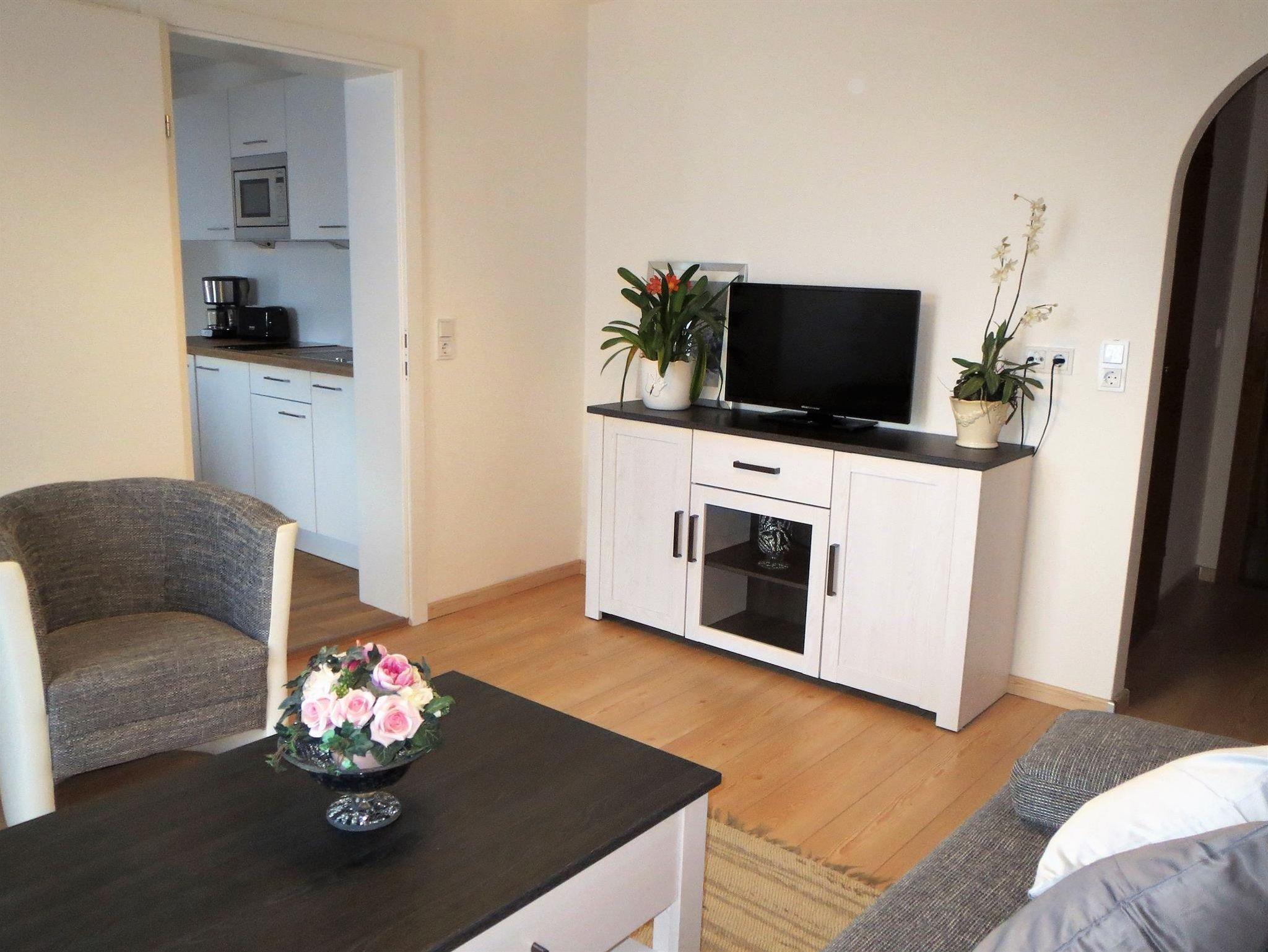Ferienwohnung mit großer Terrasse, Schlafzimmer, Wohnzimmer, Küche mit Essecke, Geschirr und Wäsche ist genügend vorhanden, Dusche und WC, Föhn, Kosmetikspiegel, WLAN und 2x Flachbildfernseher. Preise ohne Verpflegung!