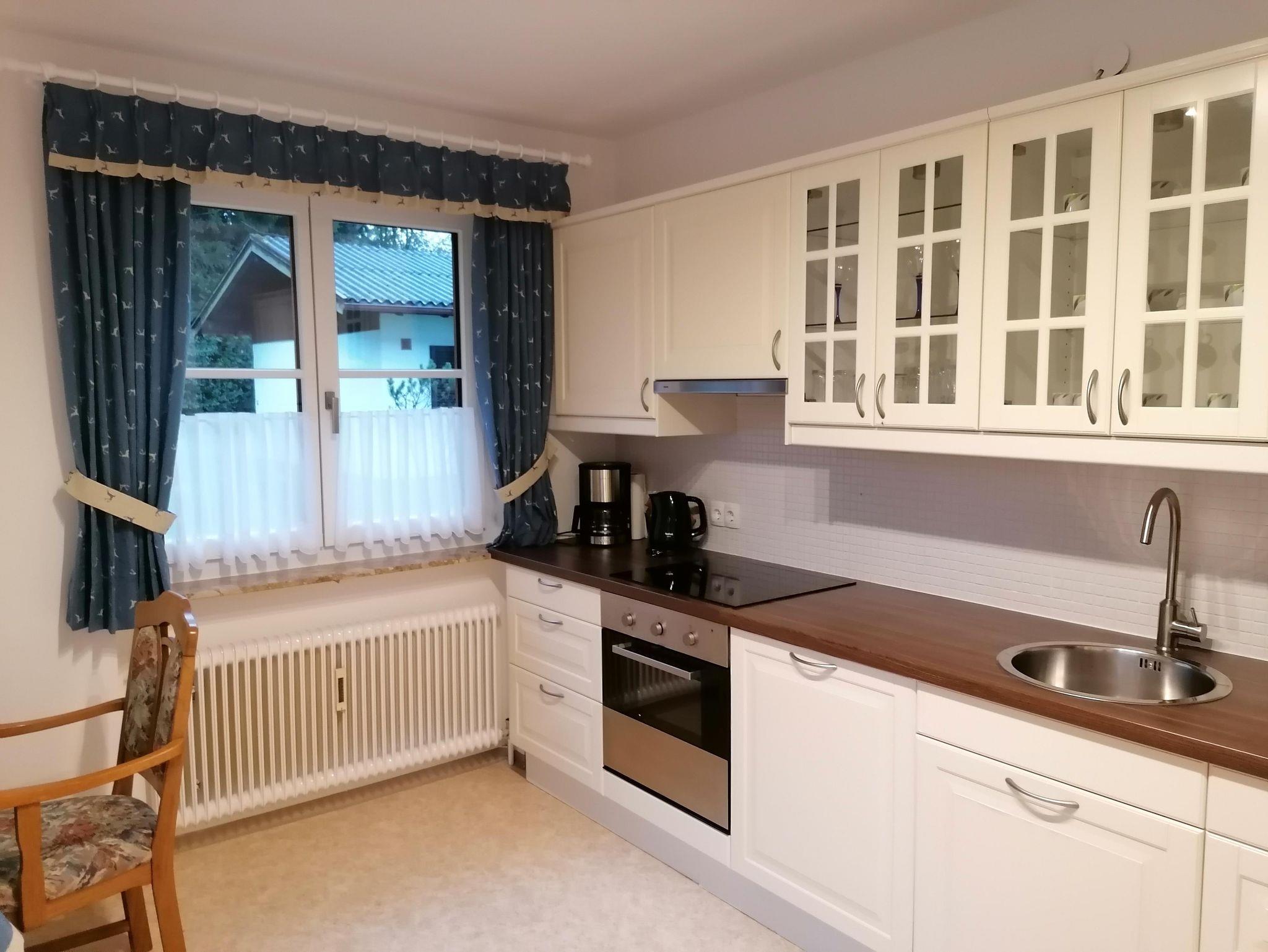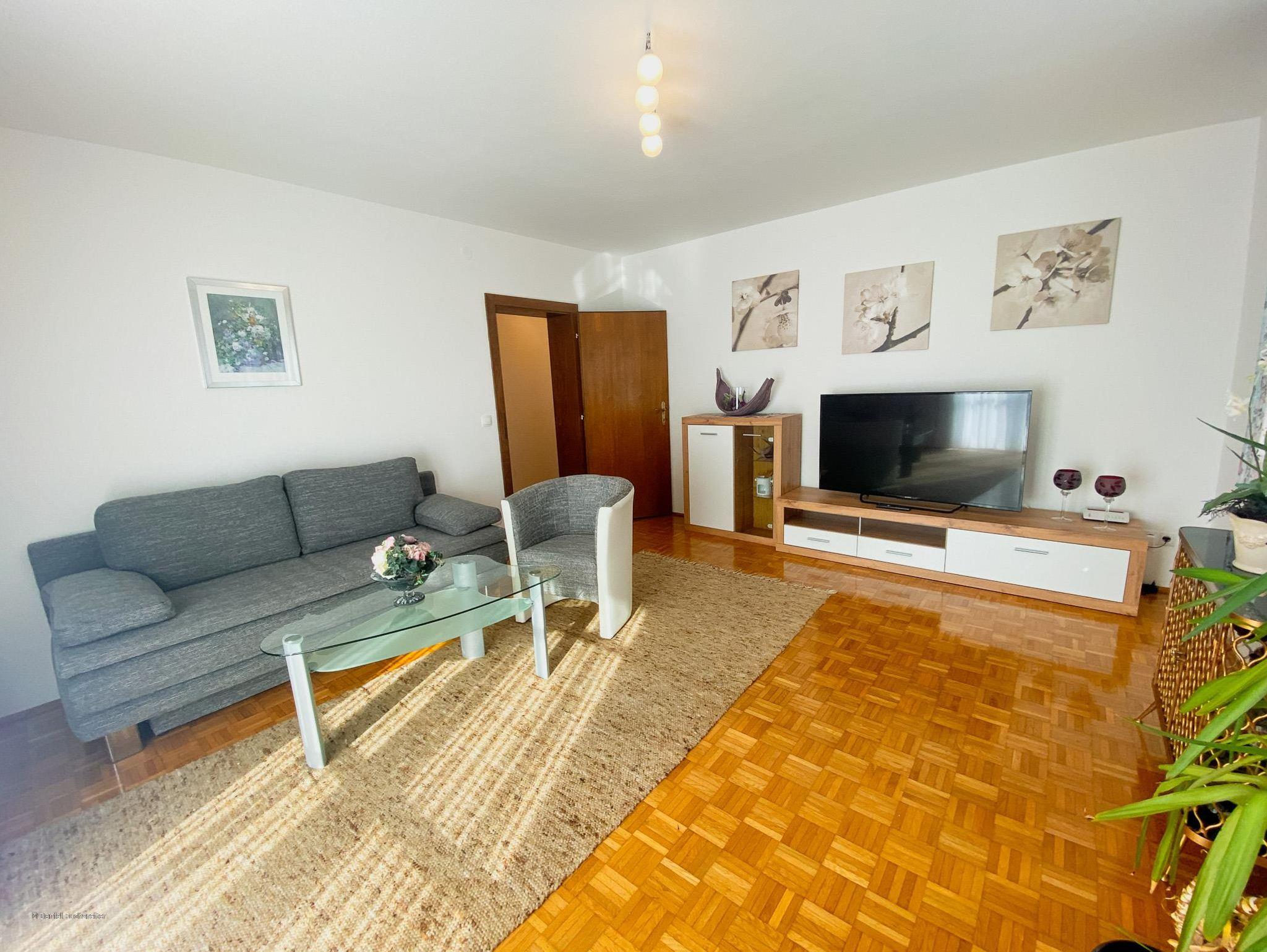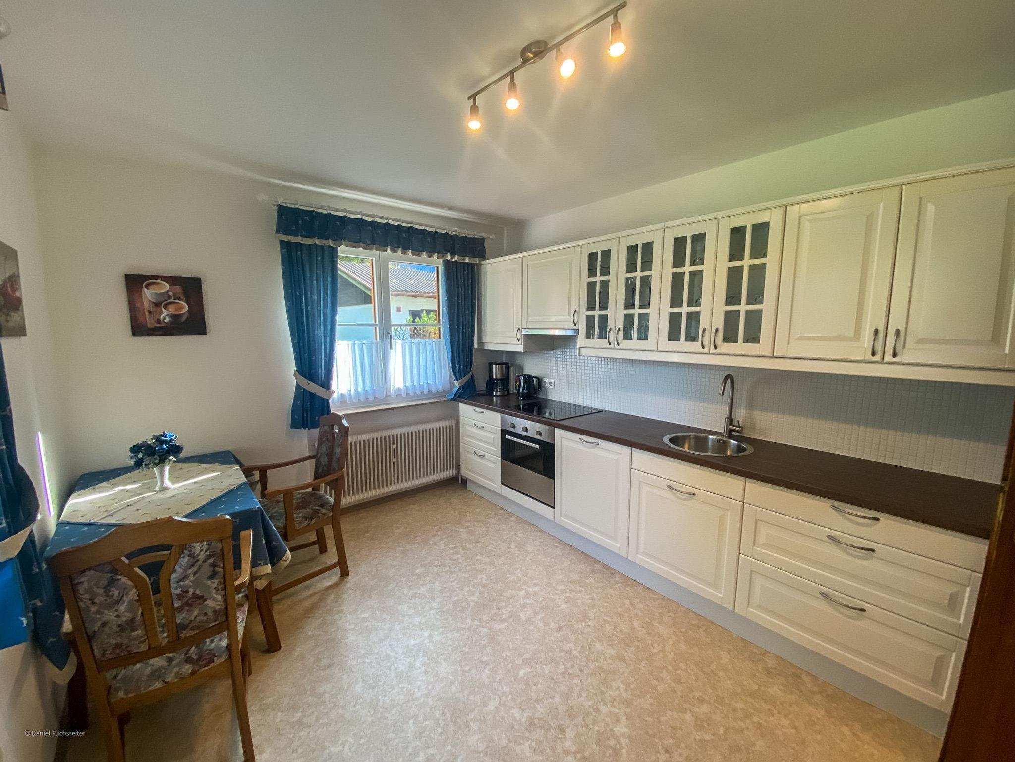 Ferienwohnung im Erdgeschoß mit Terrasse und Gartenmöbeln, Wohnzimmer mit Flachbildfernseher, WLAN, Schlafzimmer, Abstellraum, Bad und WC mit Föhn, Kosmetikspiegel und Waschtrockner, Vorraum, Küche mit Essecke, Kühlgefrierschrank, Micro, Filterkaffeemaschine, Wasserkocher, Herd mit Backrohr, Geschirrspüler, genügend Geschirr und Kochtöpfe vorhanden.