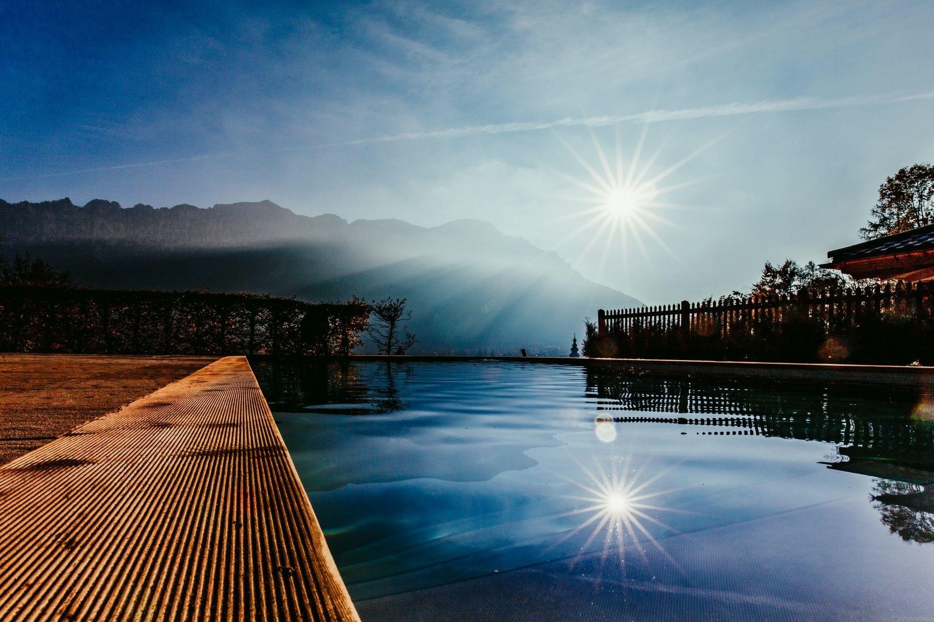 - Außenpool beheizt mit Bergblick 5m x 10m nutzbar von Mai – Oktober (je nach Witterung)