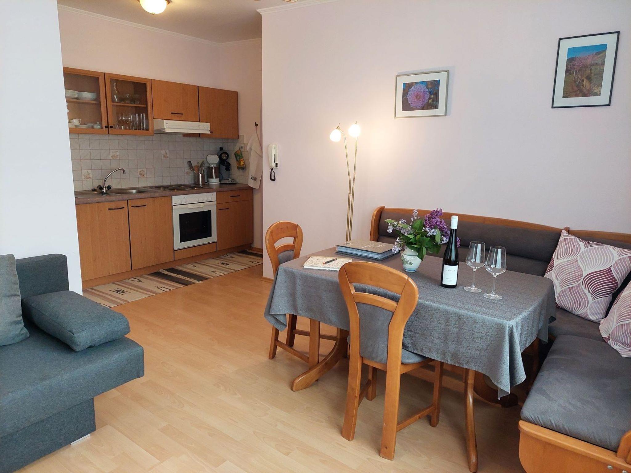 Die geräumige Wohnung besteht aus einem Wohnzimmer (Ausziehcouch für zwei) mit integrierter Küche, Schlafzimmer, Bad und einem Balkon, der sich in Richtung Jauerling öffnet. Sie ist vom Verein Urlaub am Bauernhof mit 4 Blumen ausgezeichnet. Zudem bietet sie: TV, WLAN, Parkplatz, Abstellplatz für Fahrräder, Spielplatz in unmittelbarer Nähe, Kinderhochstuhl, Reisegitterbett und die Möglichkeit, für den Ersteinkauf zu sorgen.