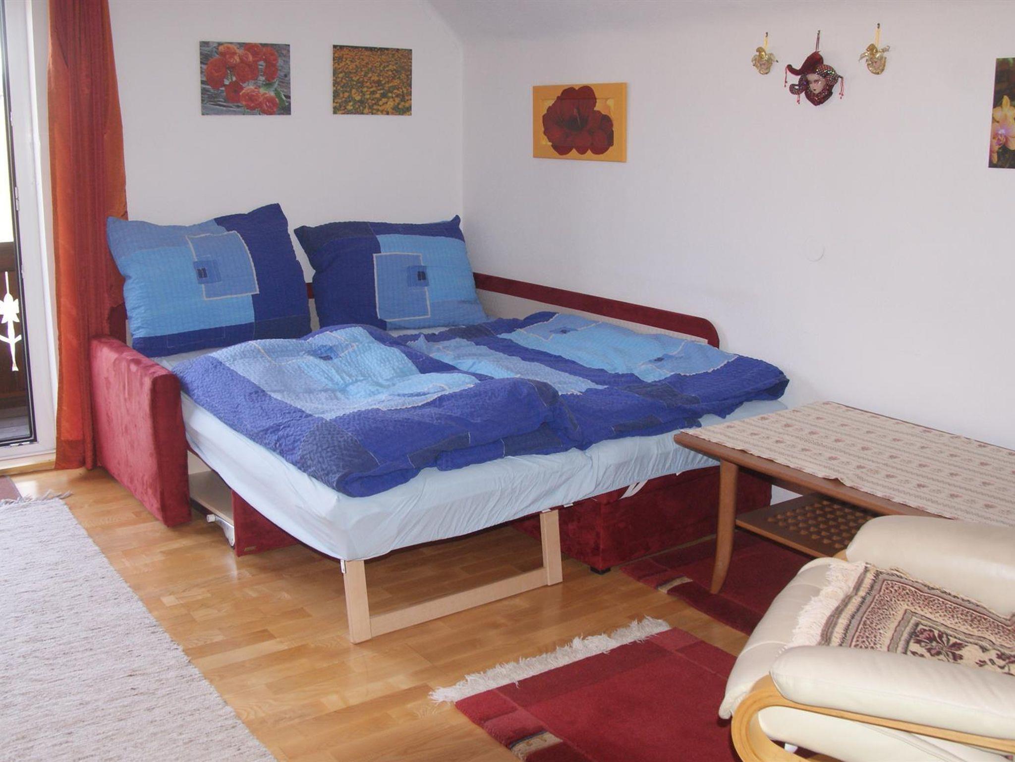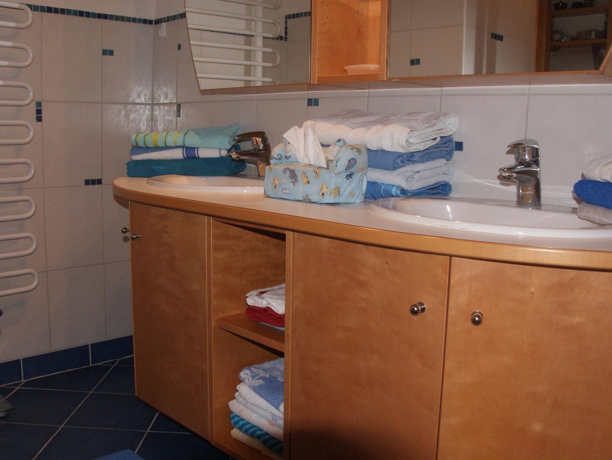 Unsere gemuetliche Dachgeschoßwohnung ist mit viel Liebe zum Detail ausgestattet. 2 Zweibettzimmer(+1 Gitter-bzw.Zustellbett), 1 Dreibettzimmer und 1 Wohnschlafraum (Doppelliege) bieten Rueckzugsbereich für alle Personen. Eine modern ausgestattete Kueche, ein Essraum, 1 Bad mit Doppelwaschtisch und 1 WC komplettieren die 80m2 Wohnung. Unser Kücheninventar ist besonders reichhaltig ausgestattet, doppelt vorhandenes Geschirr, mehr als 30 Gewürze, Raclette, Grill oder Fonduegeschirr erleichtern Ihnen Ihre Essensplanung und garantieren Ihnen gemütliche Stunden im Familienkreis oder in der Freundesrunde.