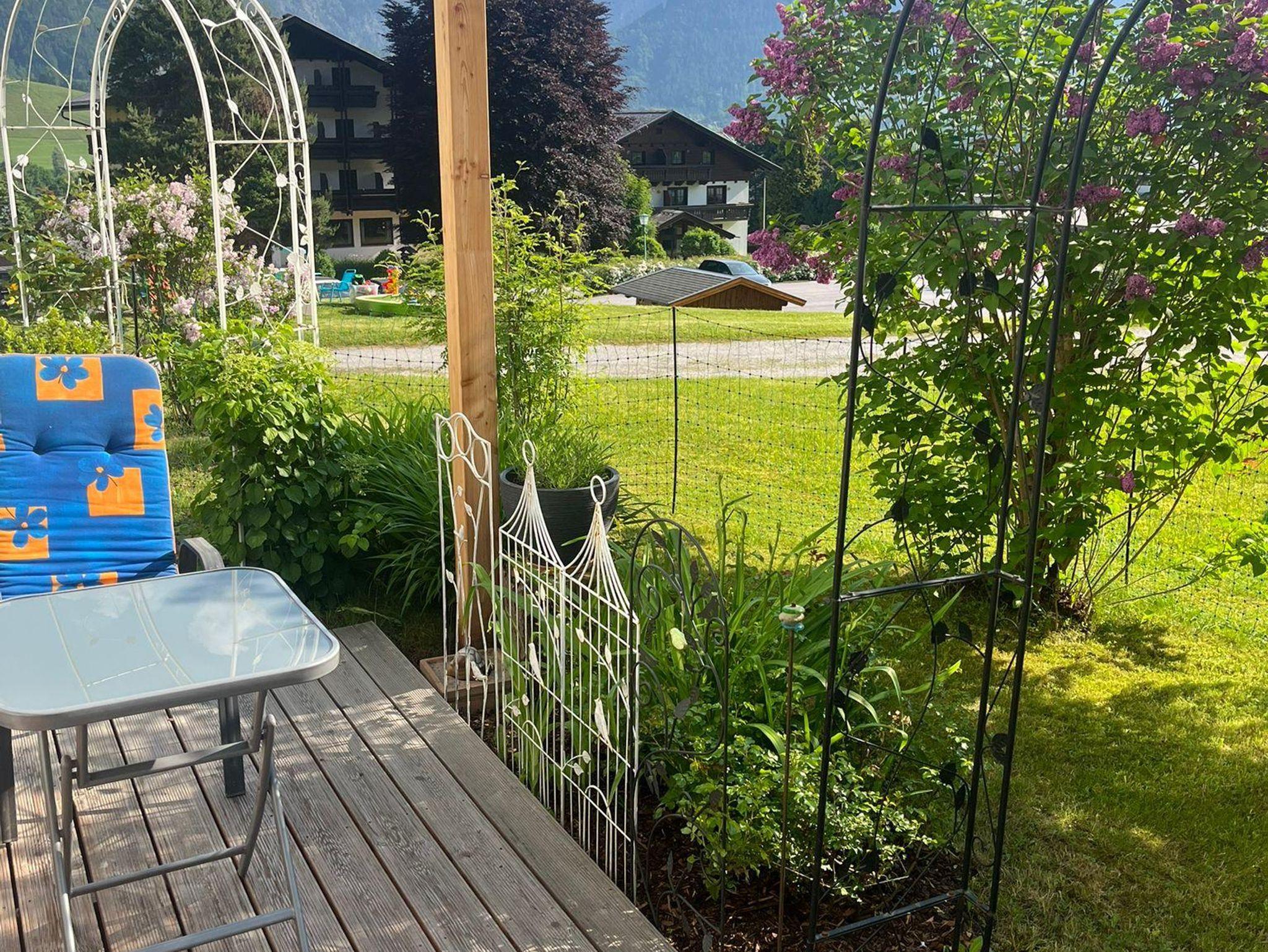 Die Ferienwohnung Hofmann liegt im Parterre eines Mehrparteienhauses. Sie verfügt jedoch über einen eigenen, privaten Eingang. Was unsere Gäste besonderes genießen, sind die beiden Terrassen (Ausrichtung: O/W), von denen man eine schöne Aussicht auf die heimische Bergwelt genießt. Im Sommer stehen Gartenmöbel und ein Grill bereit, damit Sie einen schönen Urlaubstag noch schöner ausklingen lassen können. Für Ihr Winter- und Sommersportequipment haben Sie Zugang zu einem abgeschlossenen Kellerabteil, in dem Sie alle Ihre Utensilien lagern und aufbewahren können.