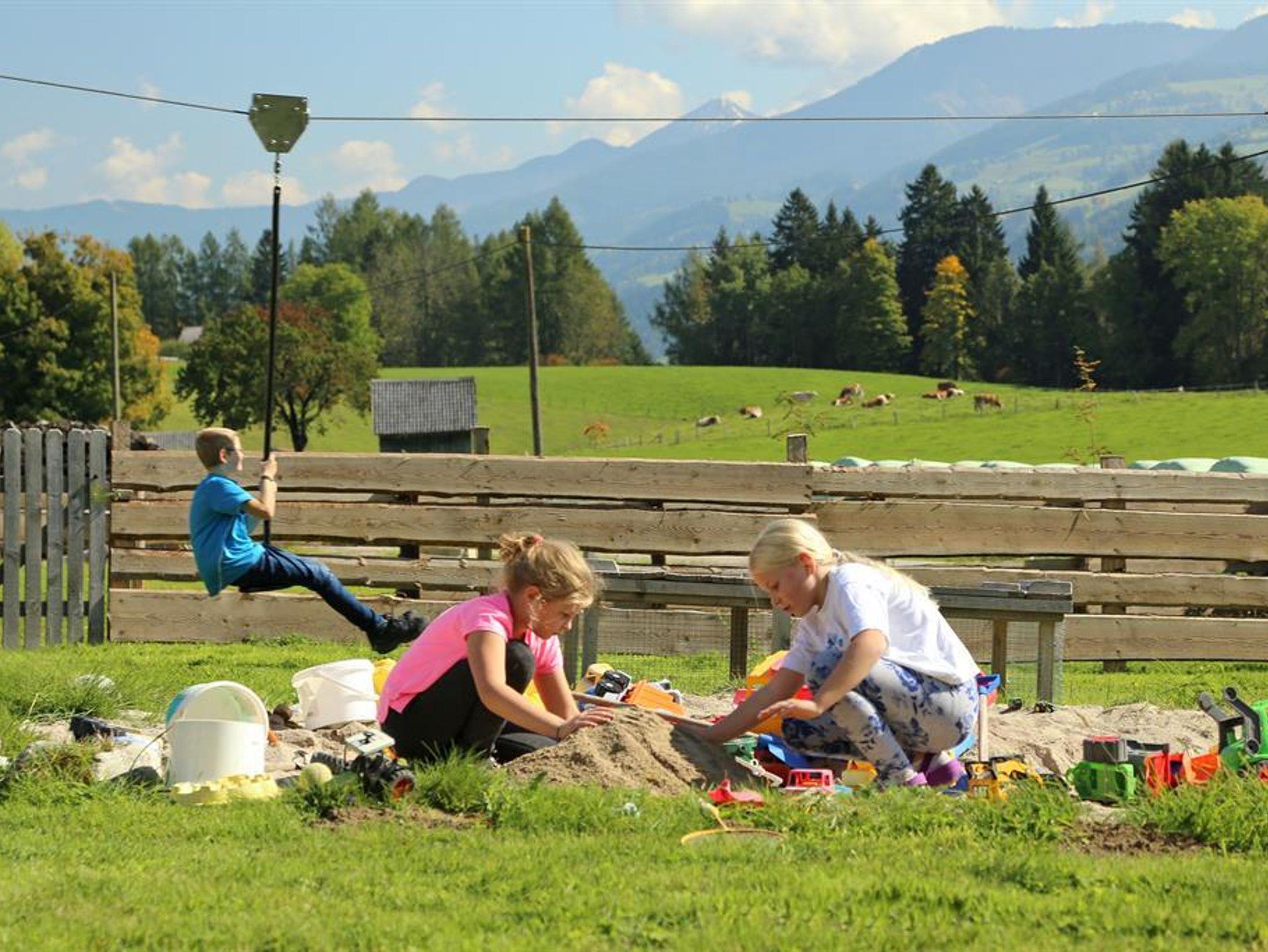 Urlaub am Bauernhof bedeutet bei uns viel Platz für Ihre Kinder. Im Sommer können sich unsere jüngsten Gäste am hauseigenen Spielplatz austoben oder auch mal im Stall die zahlreichen Tiere besuchen – sie freuen sich immer über Streicheleinheiten. Im Winter ist genügend Platz für Schneeballschlachten, Schneemannbauen und Toben im Winterwald.