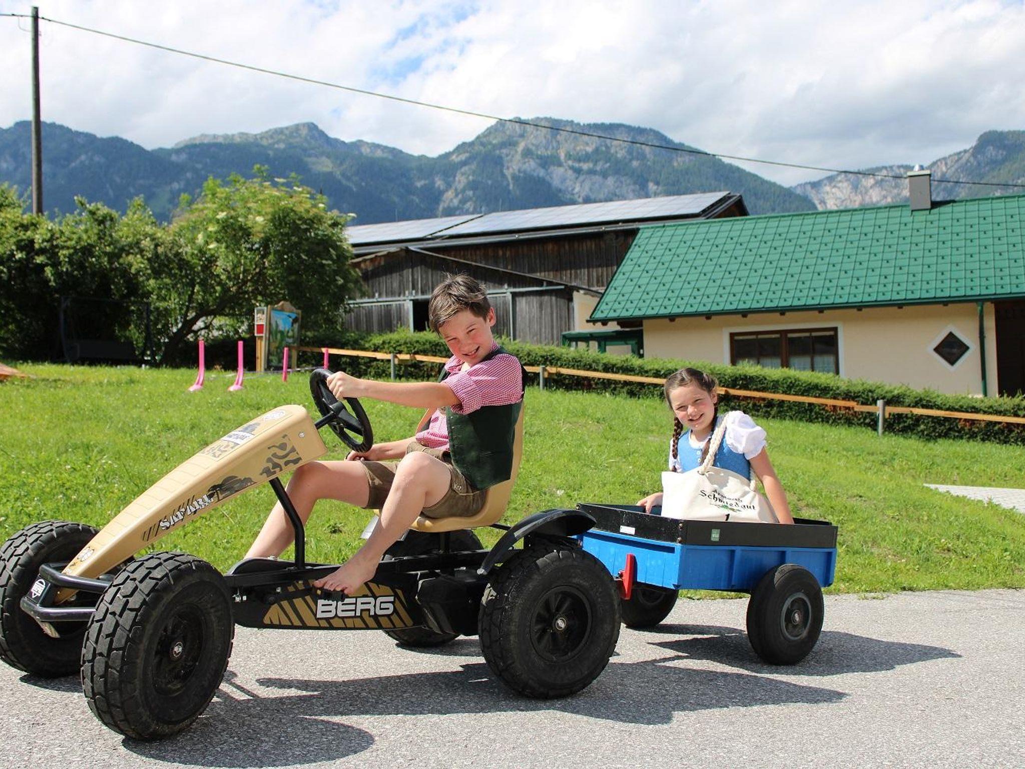 • Kinder: Trampolin, Kugelbahn, Schaukel, Gokarts, Rutsche, Klettergerüst, Tischtennis, Hase, Schafe