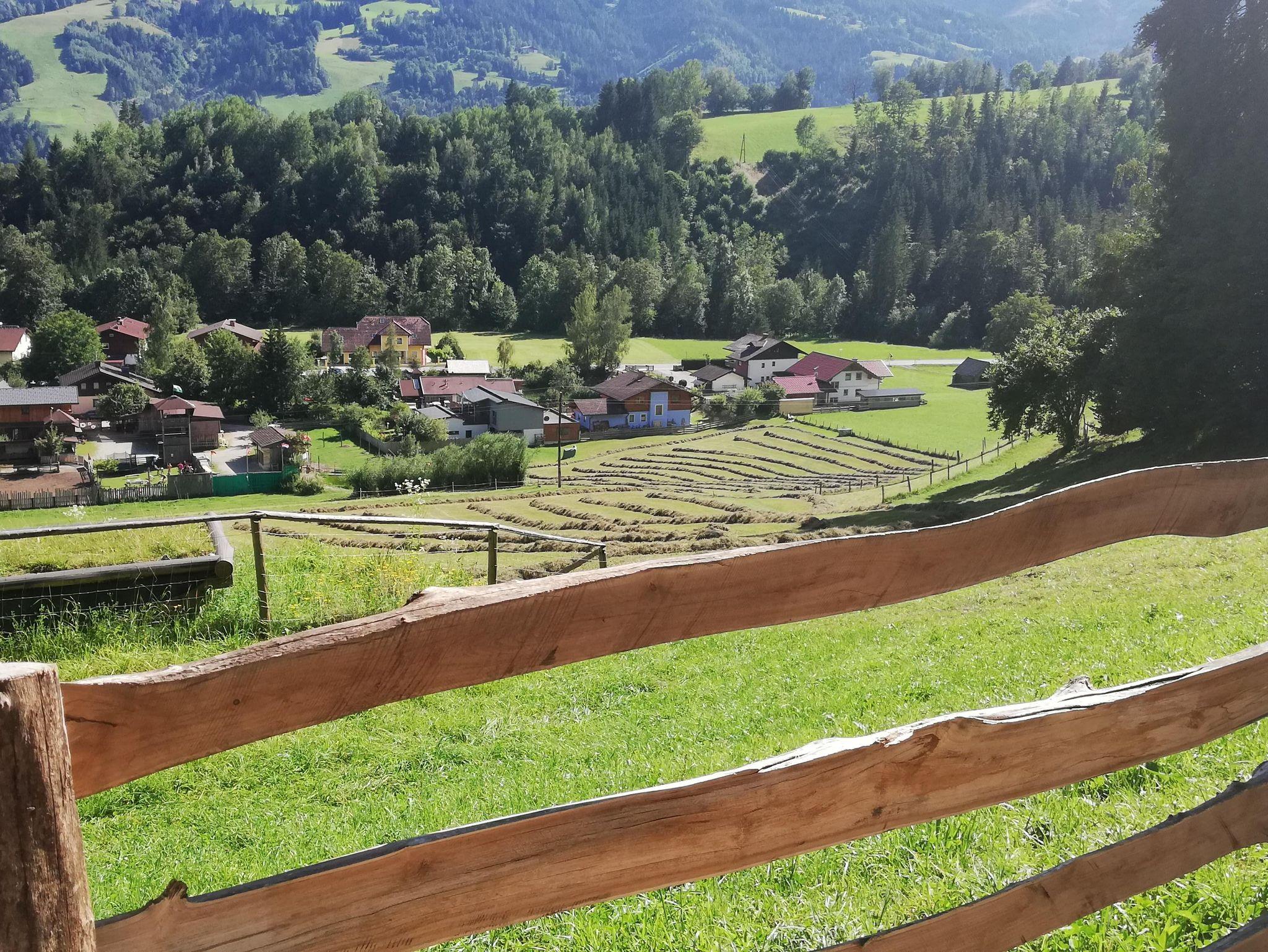 Sommer: Reiten, Fischen, Bogenschießen. Abwechslung und Gemütlichkeit, Ponywanderung, Traktorfahrt, Kletterwand. Am Dorfrand - freie Aussicht auf die umliegende Bergwelt, von 40.000 qm Wiese umgeben - viel Platz zum Herumtollen.