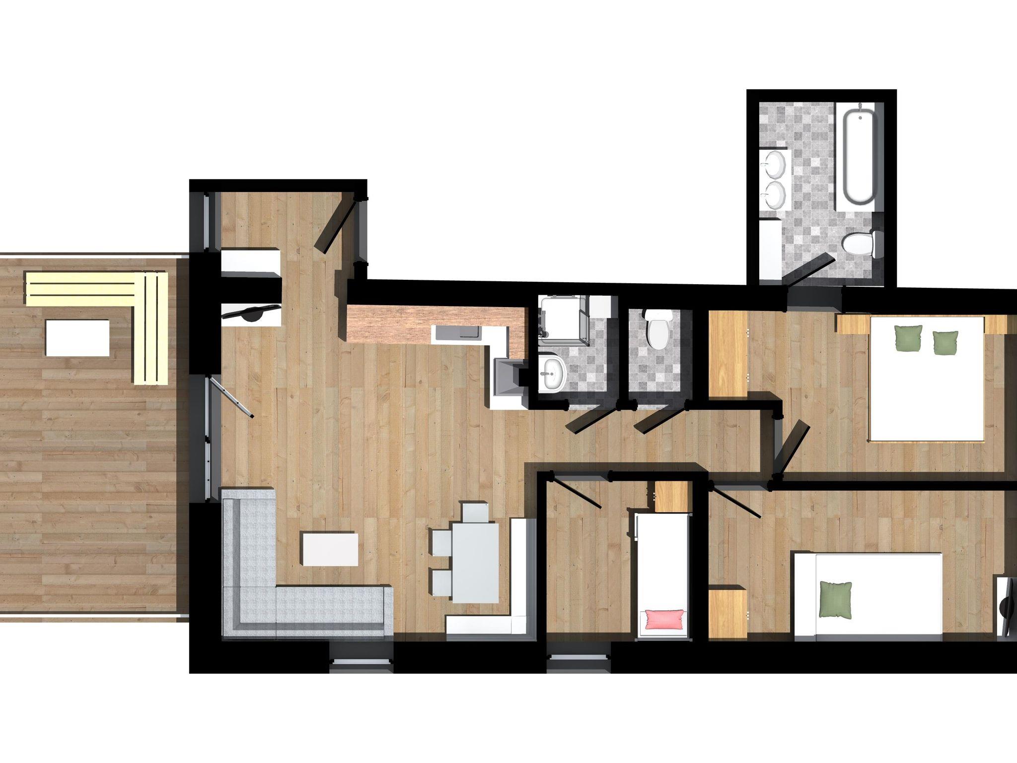 • 3 Schlafzimmer (2 mit Doppelbett, 1 mit Etagenbett)
