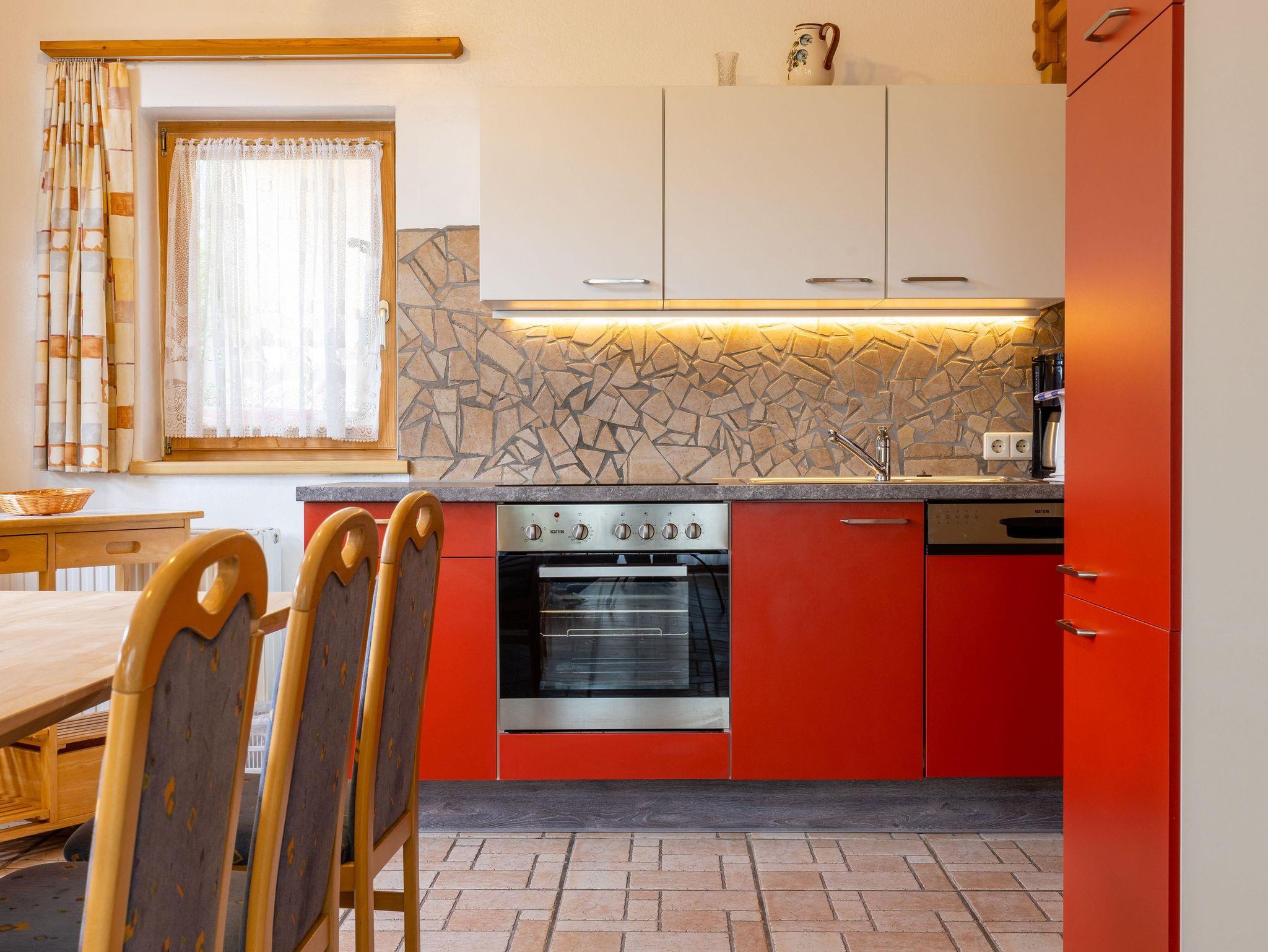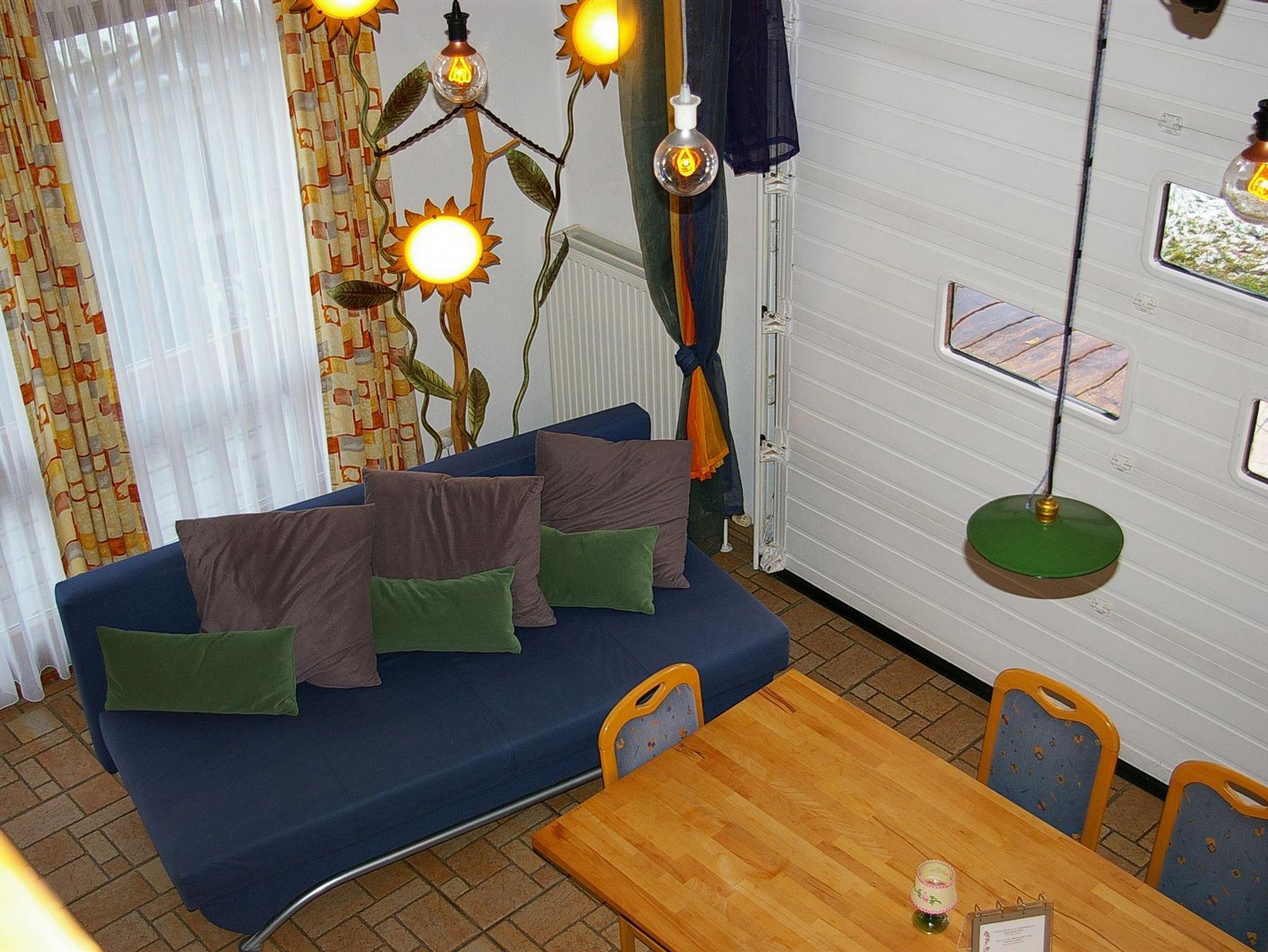 Appartement Remise im Abenteuerhaus, ca. 78 m² für 5-6 Personen; Diele, Dusche, WC, 1 Schlafzimmer mit Doppelbett und Couch sowie einen Sternenhimmel. Darüber ist das Zimmer Baumhaus (165 cm Raumhöhe) mit 3 Betten, die Wohnküche hat ost- und südseitig eine Terrasse, 4-Plattenherd mit Backrohr, Geschirrspüler, Kühlschrank mit Gefrierteil, Kaffeemaschine und Wasserkocher, Sofa u. Kabel-TV, Internetanschluß, WiFi/WLan