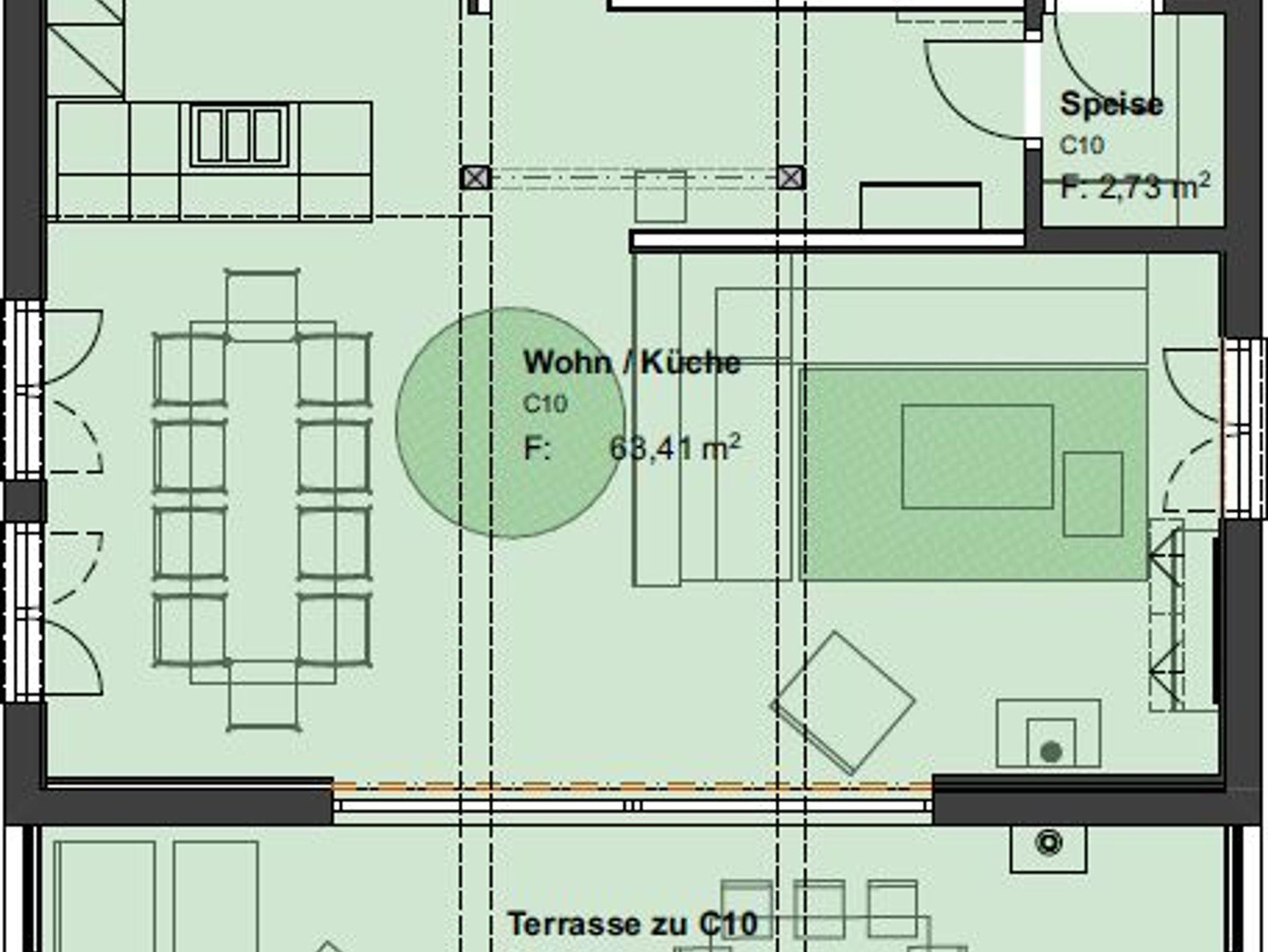 • Wohnküche mit komplett ausgestatteter Küche