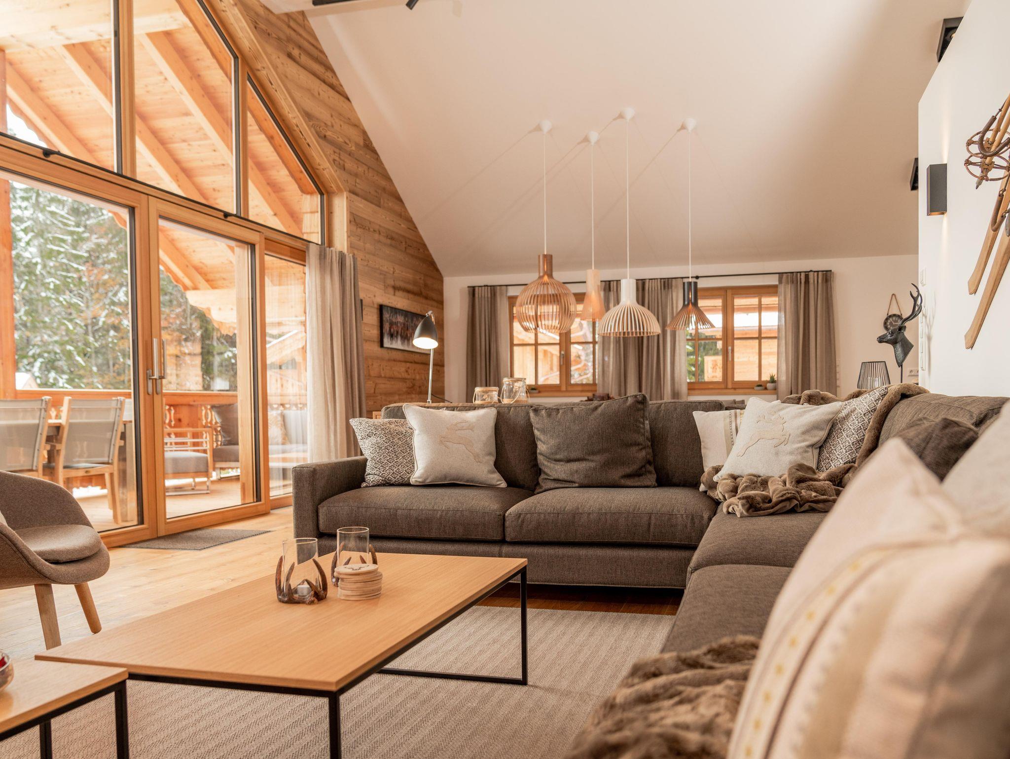Alle Chalets sind nach SÜDEN ausgerichtet und tauchen dadurch in warmes Tageslicht ein. Die großzügigen Glasfronten und die luftigen Raumhöhen bis zu 5m verbinden alpin-moderne Interieur mit modernster Technologie.