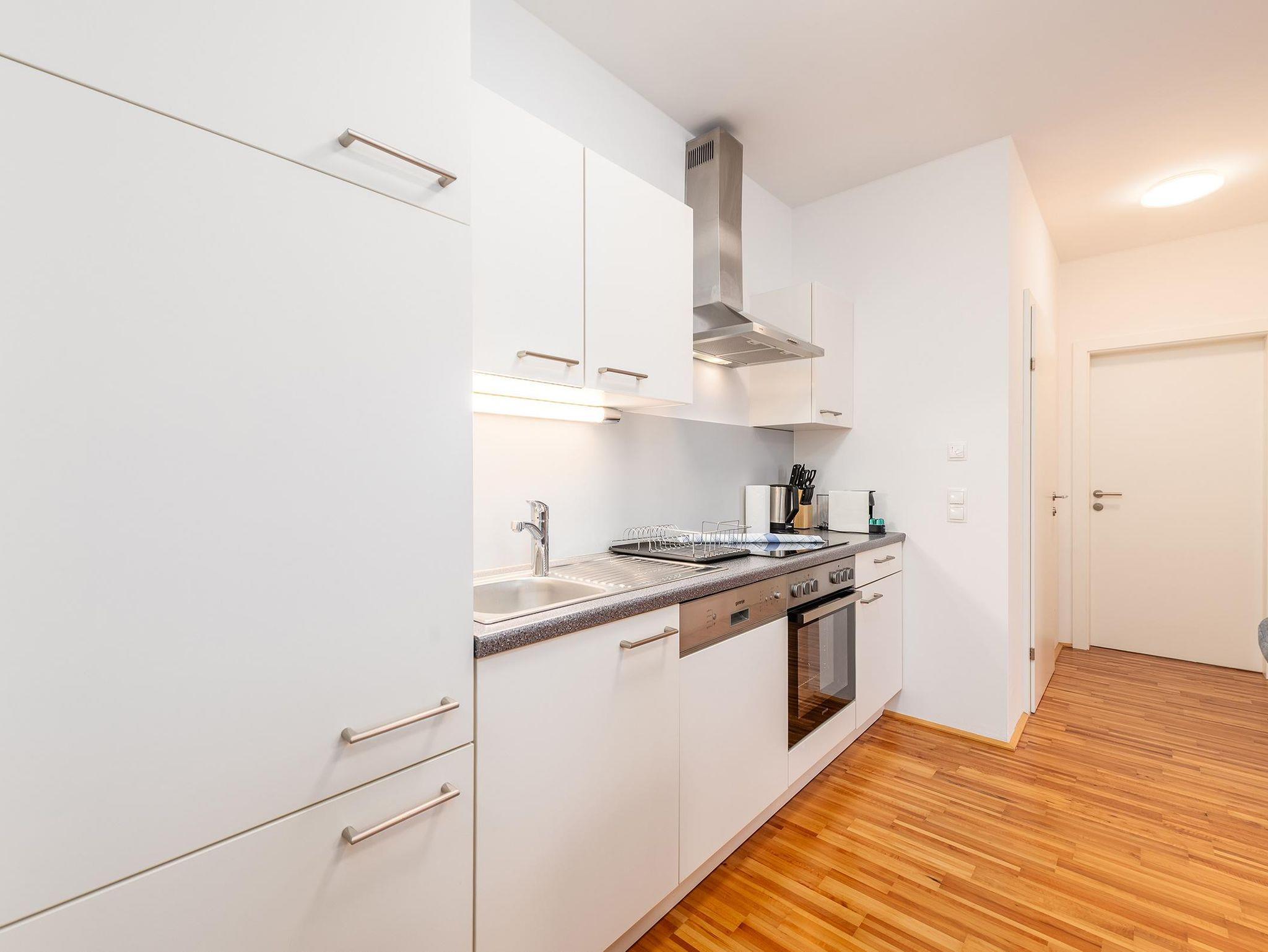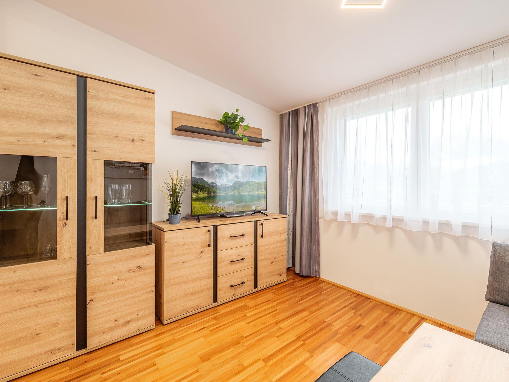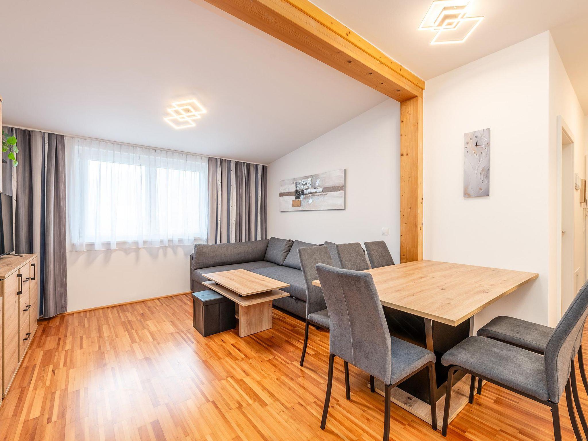 2 Schlafzimmer mit je einem Doppelbett sowie eine Schlafcouch für 2 weitere Personen im Wohnzimmer bieten insgesamt Platz für 6 Personen. Die voll ausgestattete Küche lädt zum gemeinsamen Kochen ein. Ein modernes Badezimmer mit Dusche sowie ein separates WC sorgen für zusätzlichen Komfort. Kostenfreie Parkmöglichkeiten stehen direkt beim Apartment zur Verfügung.