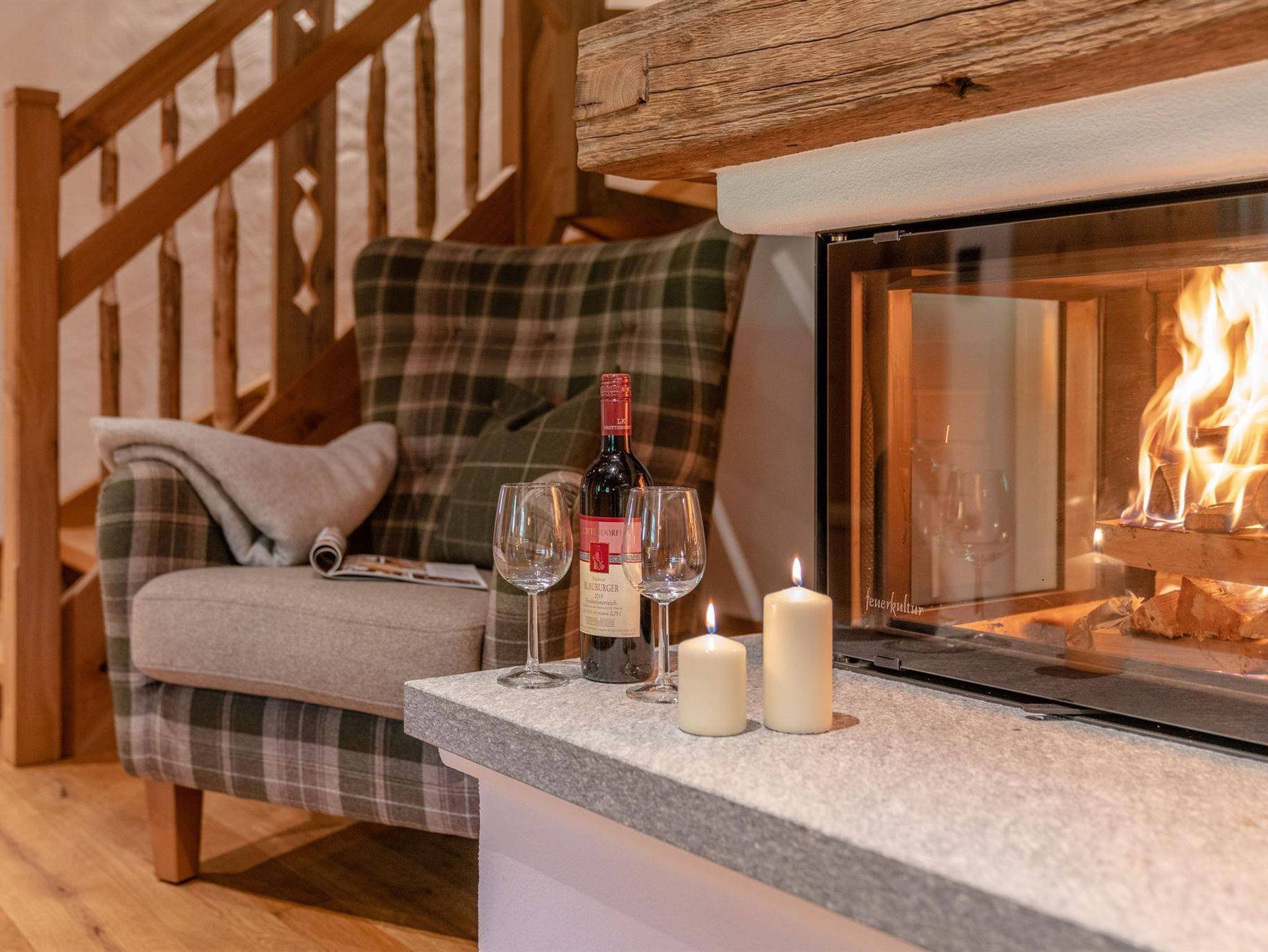 Warme Farben, weich kuschelige Stoffe, das Knistern des Kachelofens sowie natürliche Materialien wie Altholz, Naturstein und Loden aus unserer Heimat machen aus den Räumen Rückzugsorte mit Charme und bereiten unvergessliche Glücksmomente in den Bergen.