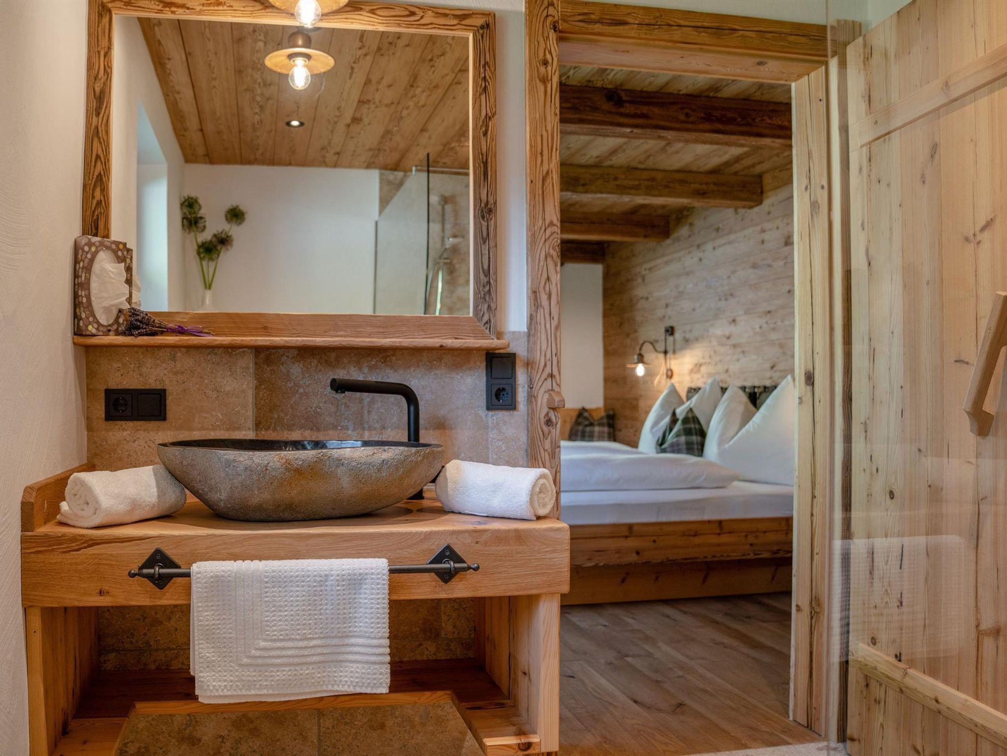 Eine erfrischend traditionelle Einrichtung verbindet das Ursprüngliche mit dem Modernen. Durch die bewusste Auswahl von heimischen Materialien wie Altholz, Naturstein, weiche Stoffen und warme Farben haben wir die Natur nach innen geholt.