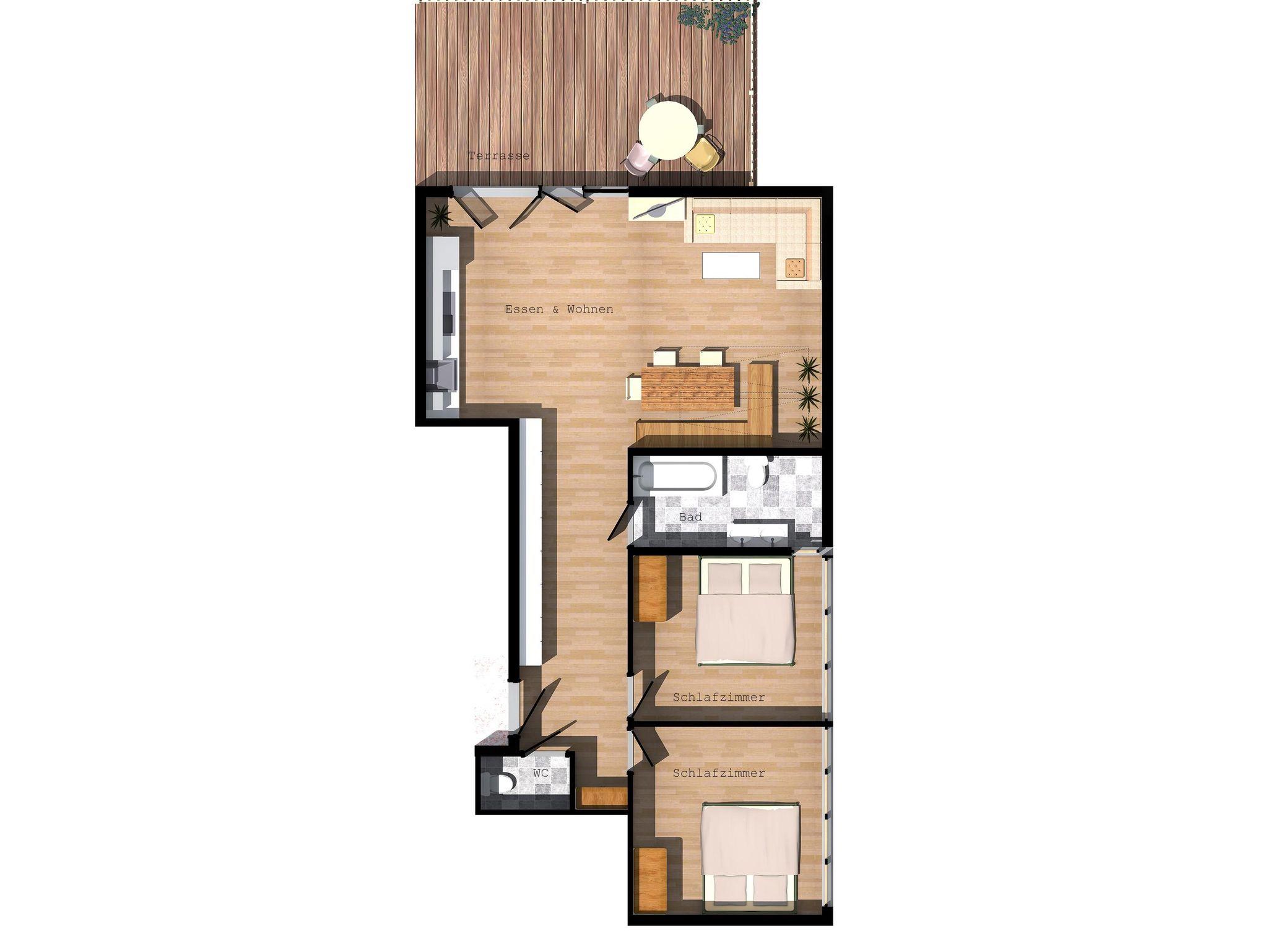 • 2 Schlafzimmer mit Doppelbett