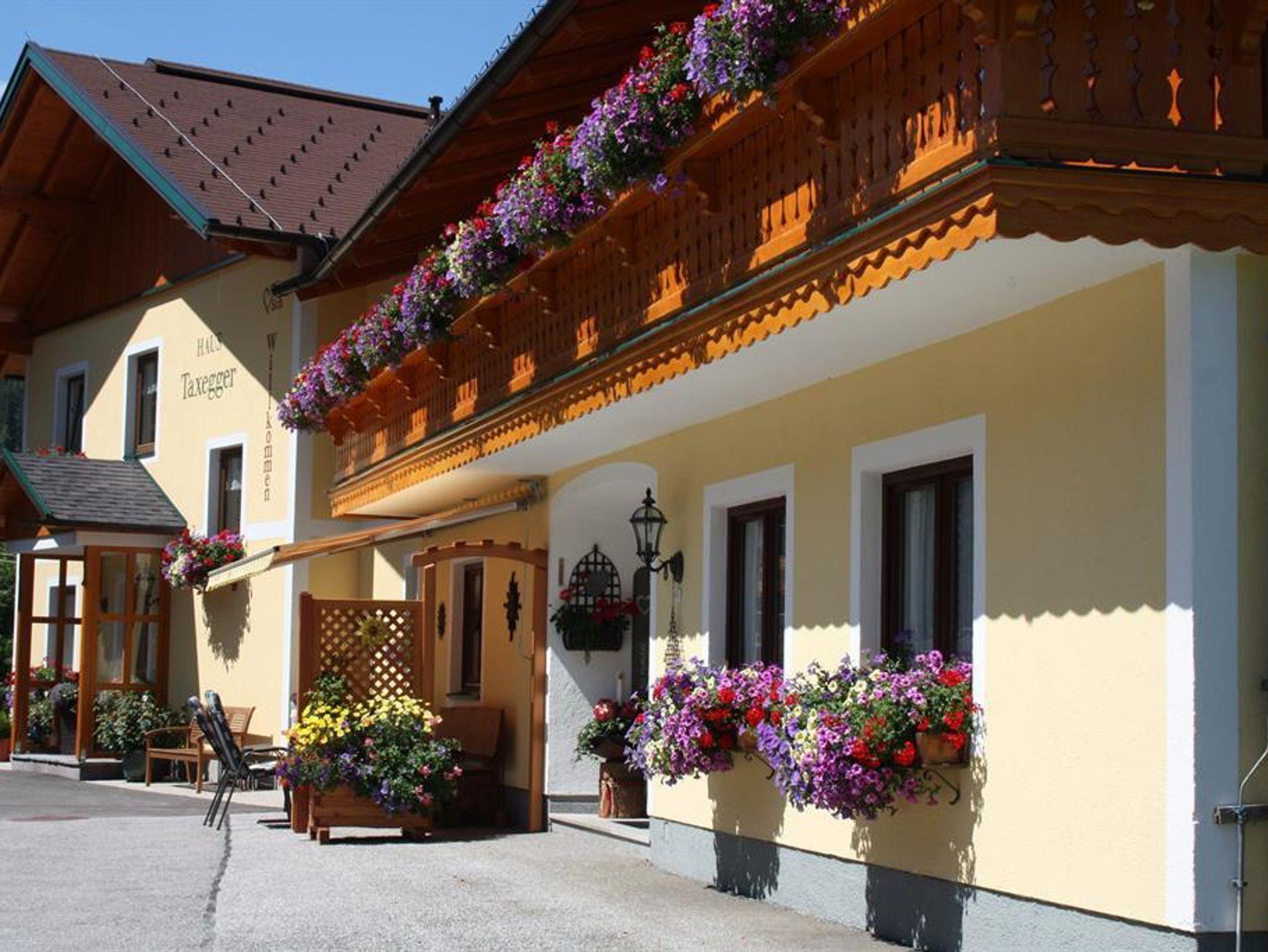 Umgeben von Wiesen und Wäldern in ruhiger, sonniger Lage auf 1.100 m Seehöhe wohnen Sie in unseren 5 neu errichteten Nichtraucher-Appartements. Wir bieten verschiedene Wohnungstypen für 2 bis 7 Personen an. Je nach Wohnungsgröße stehen Ihnen ein bis zwei getrennte Schlafzimmer zur Verfügung. Jedes Appartement hat zusätzlich ein Wohn-Schlafzimmer, eine voll ausgestattete Küche sowie Badezimmer mit Dusche und WC. Sat-TV und gratis W-Lan sind im Haus Taxegger selbstverständlich vorhanden. Was Sie aber ganz besonderes genießen werden, ist die faszinierende Aussicht vom Balkon der Appartements auf das Dachstein-Massiv.