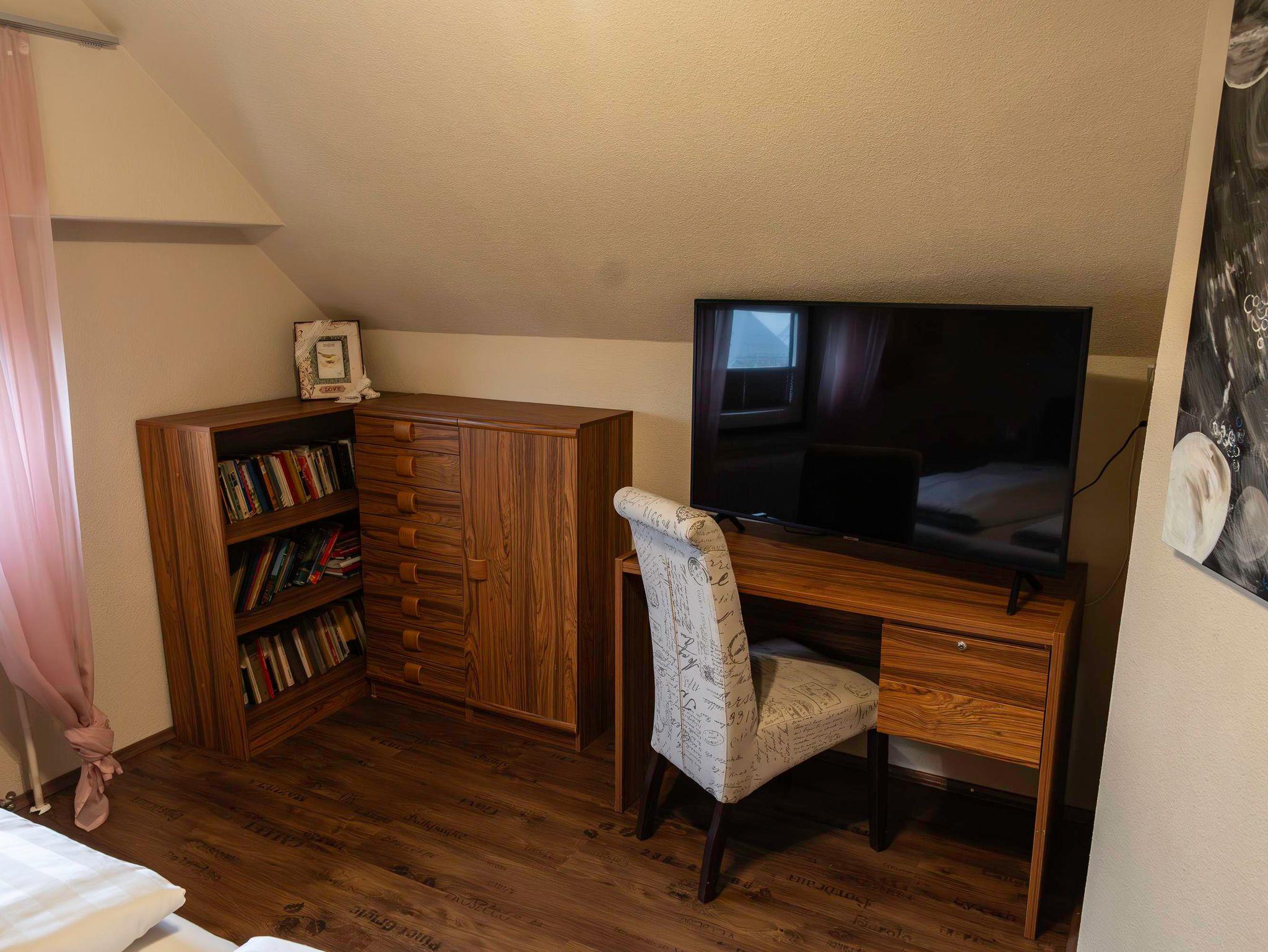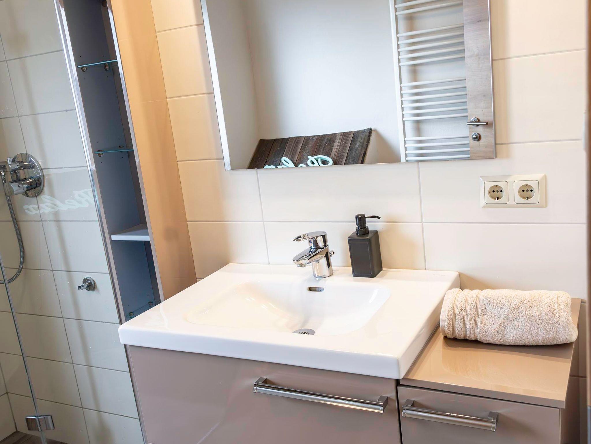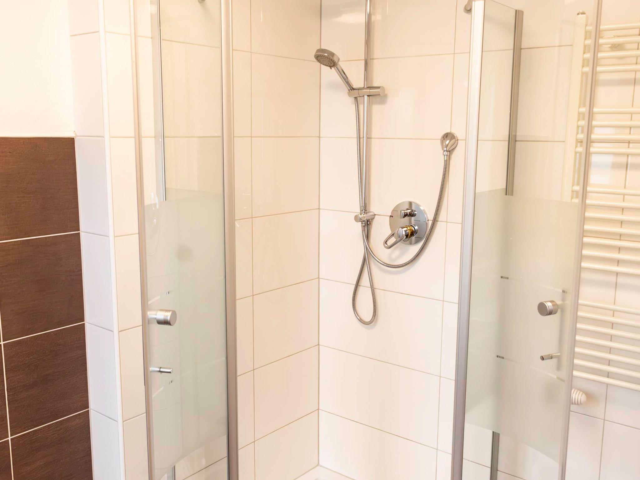 Unsere 90 m² großes Apartment 2 im Obergeschoss bietet Platz für bis zu 6 Personen. Sie verfügt über 3 getrennte Schlafzimmer (jeweils mit Flat-TV) und eine voll ausgestattete Küche mit gemütlicher Essecke. Zwei der Schlafzimmer befinden sich auf einer Ebene, das dritte Schlafzimmer erreicht man über eine Treppe. Die Wohnung verfügt außerdem über ein Badezimmer mit großer Dusche und Blick auf das Dachstein-Massiv. Das WC ist separat.