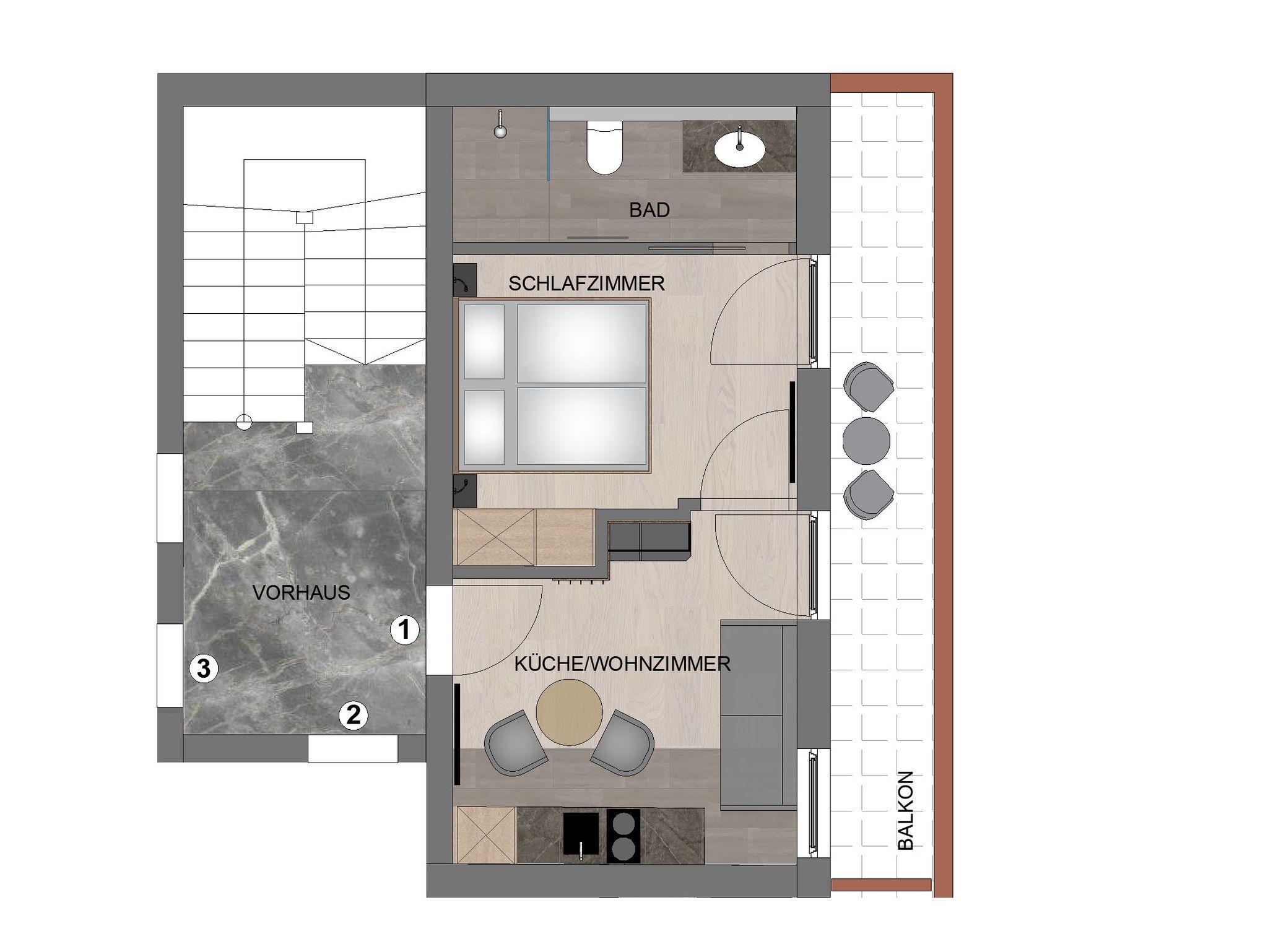 HAUSZEIT APPARTEMENTS, APPARTEMENT 2 - 1 Schlafraum, Dusche, WC