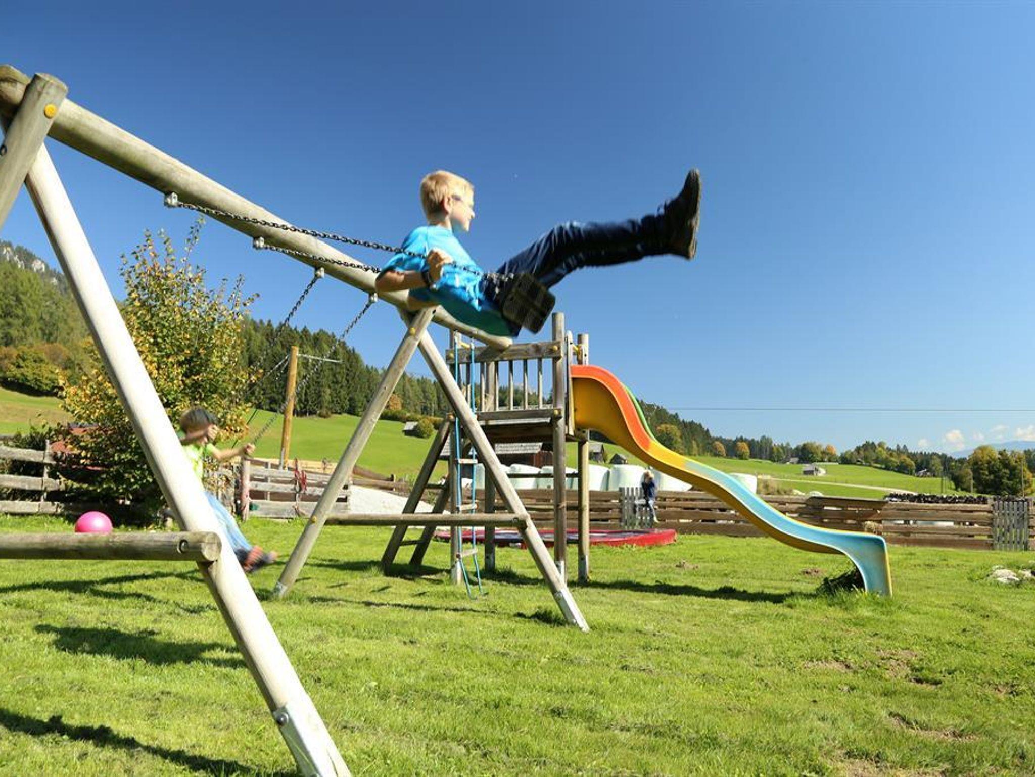 Urlaub am Bauernhof bedeutet bei uns viel Platz für Ihre Kinder. Im Sommer können sich unsere jüngsten Gäste am hauseigenen Spielplatz austoben oder auch mal im Stall die zahlreichen Tiere besuchen – sie freuen sich immer über Streicheleinheiten. Im Winter ist genügend Platz für Schneeballschlachten, Schneemannbauen und Toben im Winterwald.
