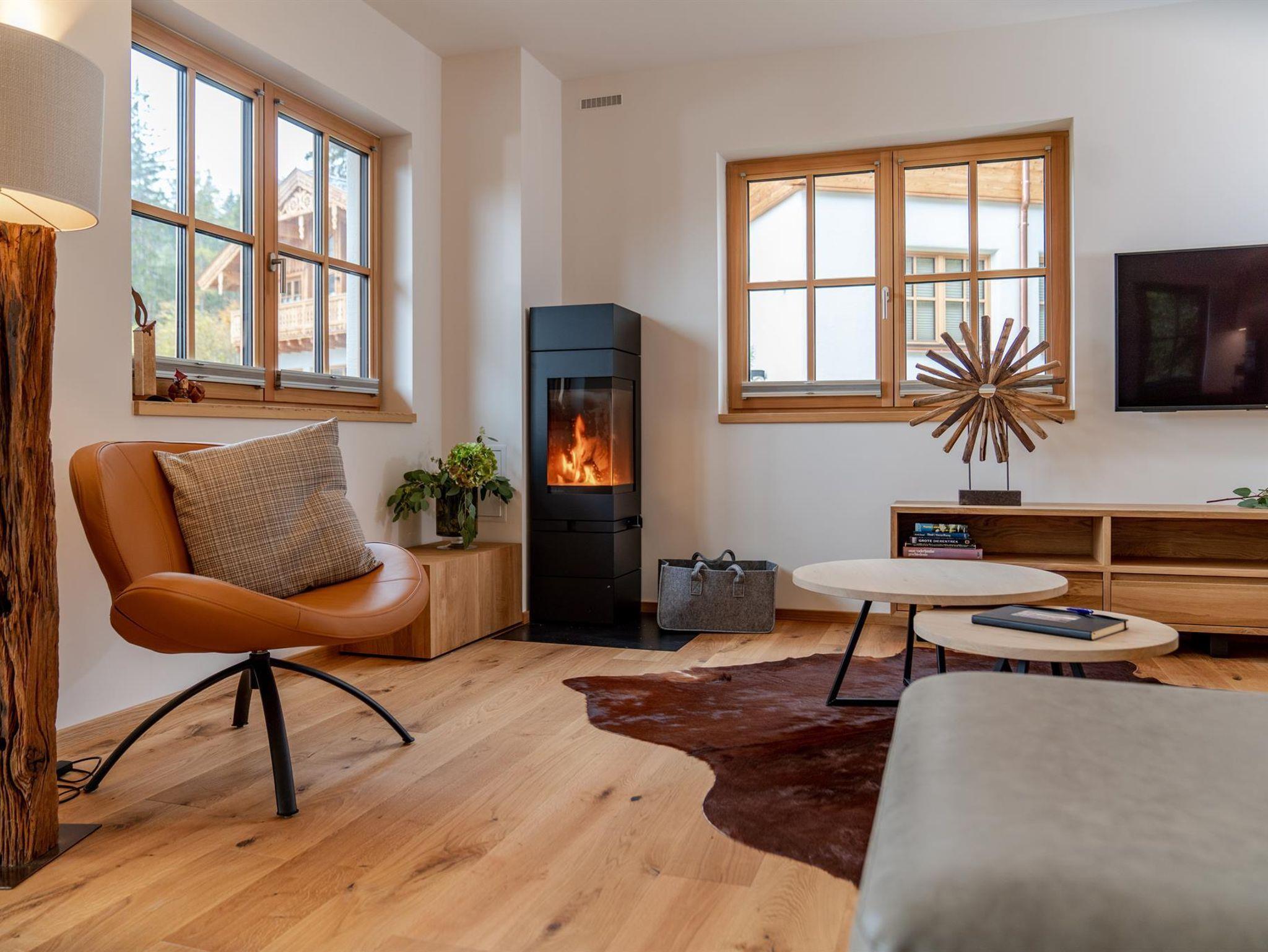 • Offener Kamin/Effektfeuer in vielen Chalets