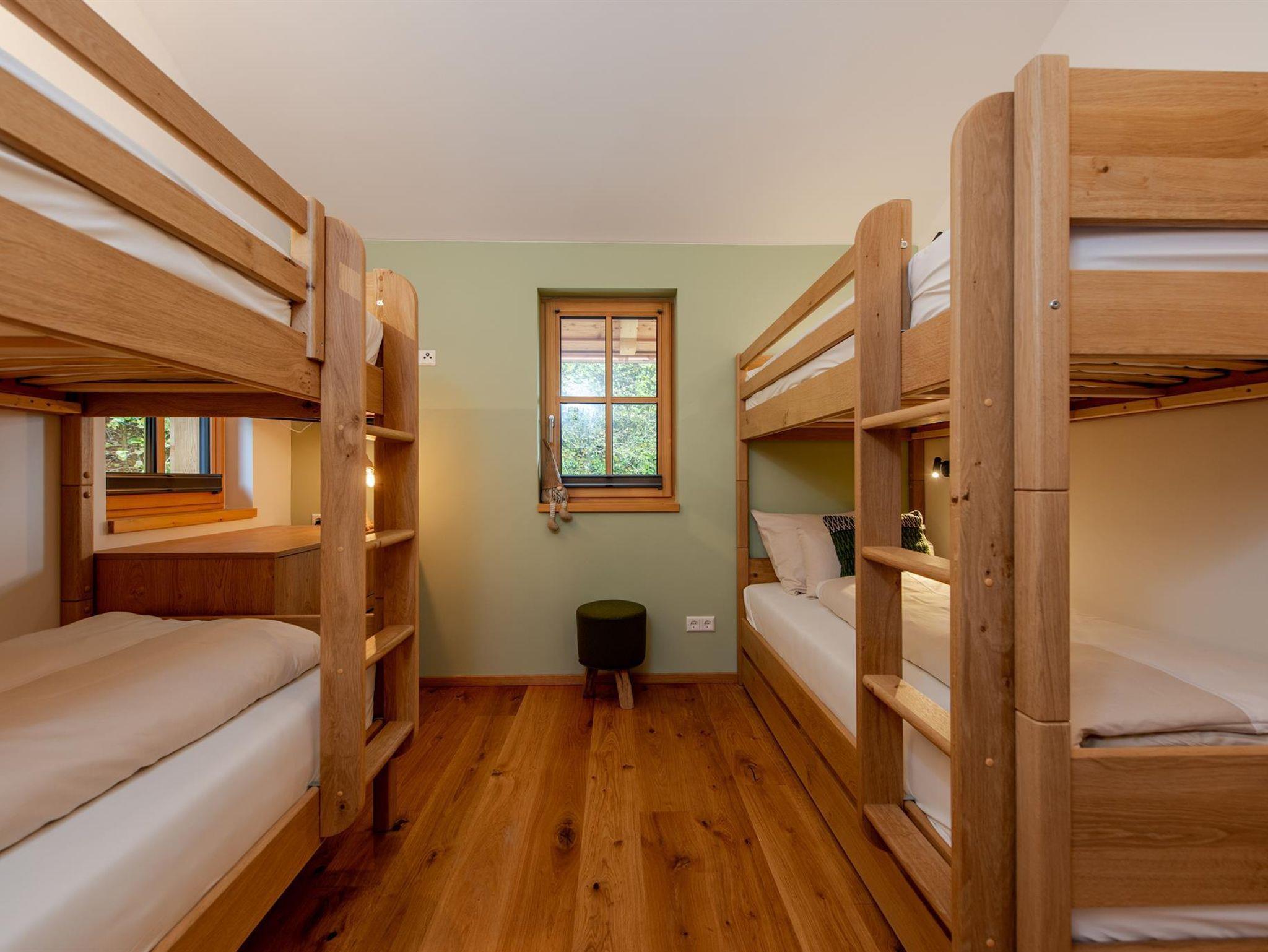 • Vier getrennte Schlafzimmer drei davon mit je einem Doppelbett in einem Schlafzimmer befindet sich zwei fixe Stockbetten (geeignet für Kinder)