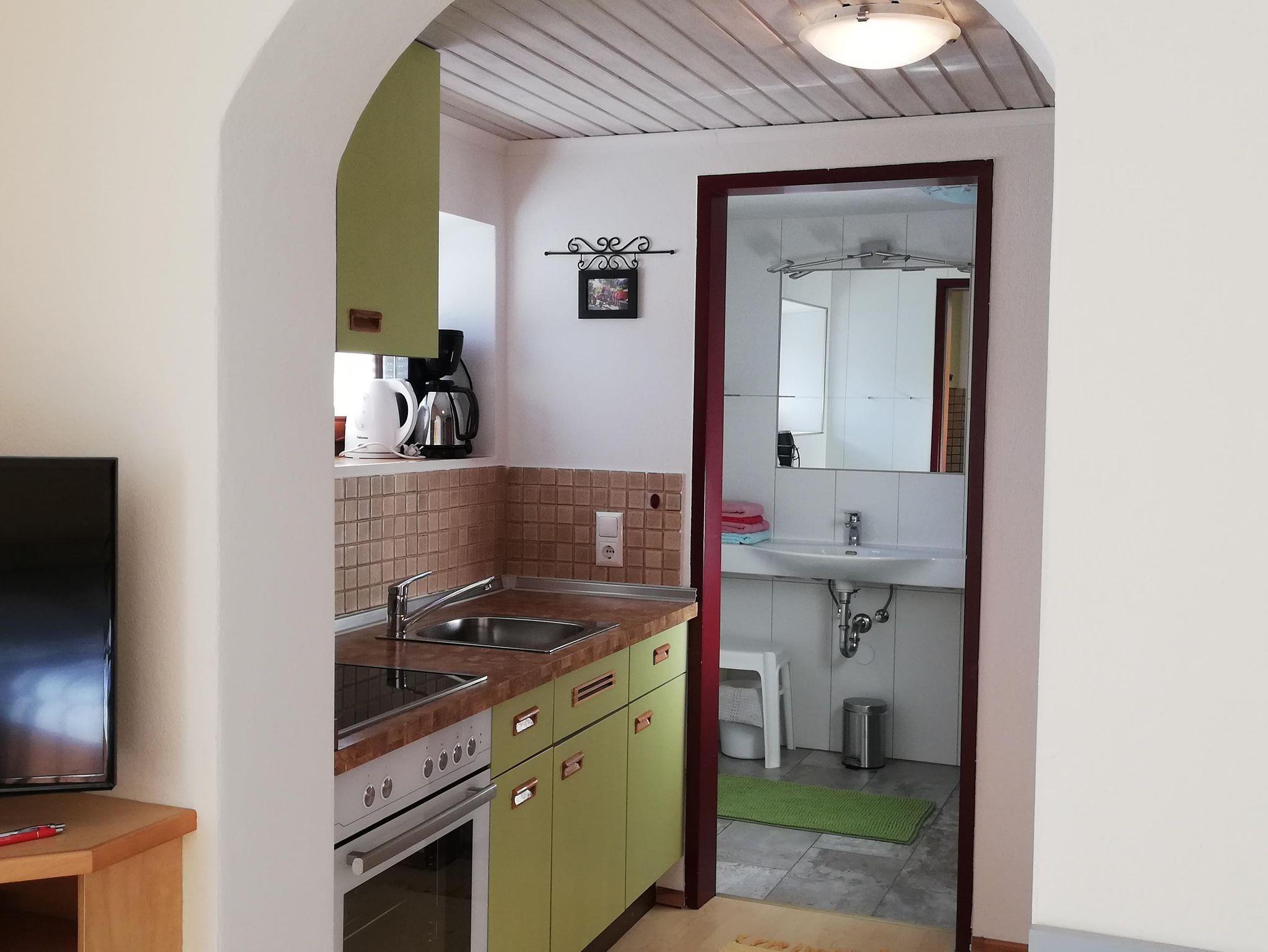 Appartement Gänsegartl ca 30 qm, sehr gemütliche Wohnung für 2 bis 3 Personen, Wohnschlafraum mit Doppelbett und Einzelbett. Gemütliche Sitzecke mit Kabel-TV, Internetanschluß, WiFi/WLan, getrennte Kochnische mit 4-Plattenherd (Backrohr), Kühlschrank mit Gefrierteil, Kaffeemaschine und Wasserkocher. Sehr angenehme, südseitige Terrasse mit Gartengarnitur, tolle Aussicht auf das Gebirgspanorama