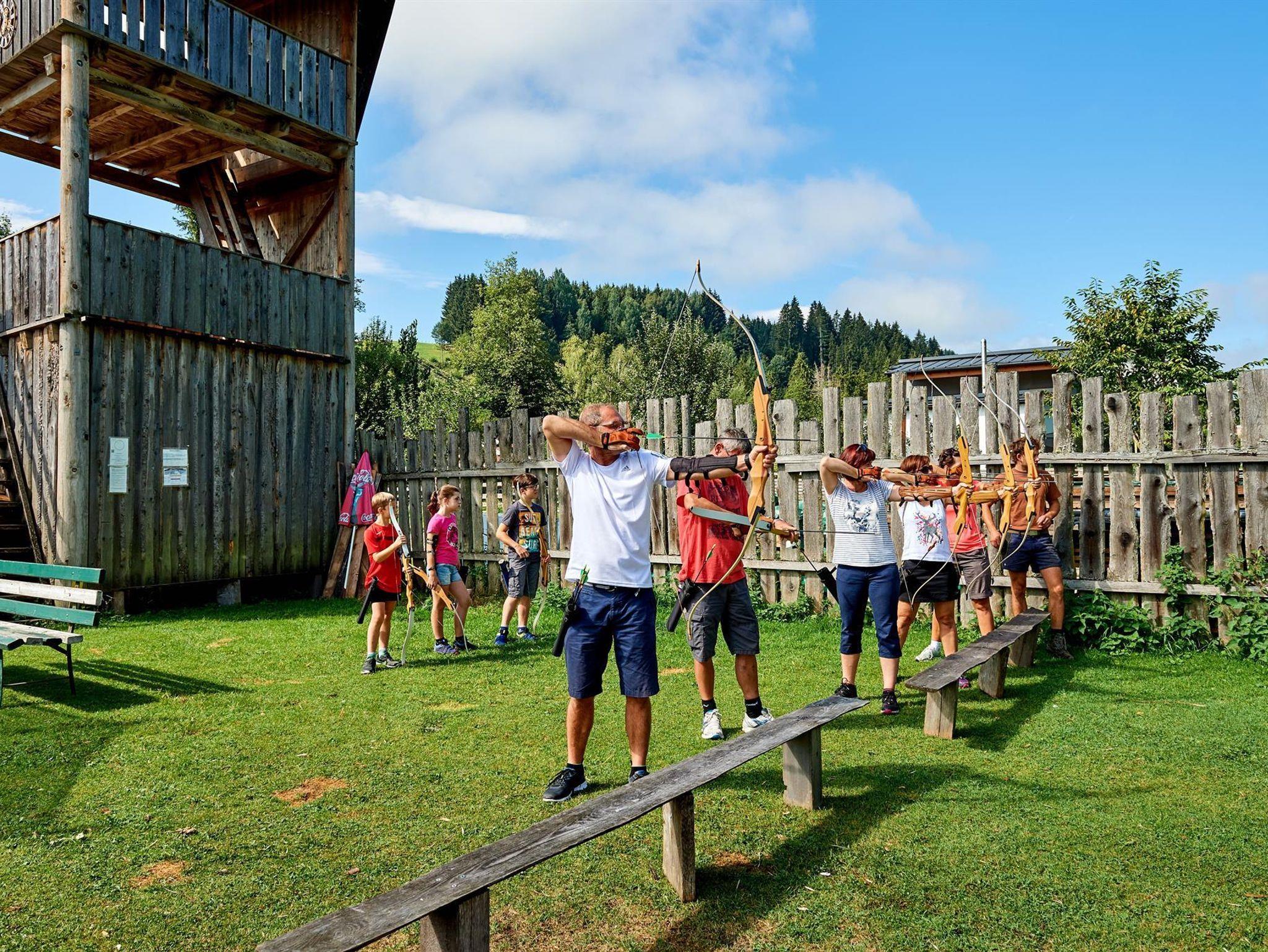 Für Erwachsene: die Laube und den Grill, den alten Apfelbaum zum Träumen, drei 3D-Parcours zum Bogenschießen (8-24 3D-Tierziele), Schießstand, die SPECKHÜTTE - für nette Abende, geführte Wanderungen und Ausflüge.