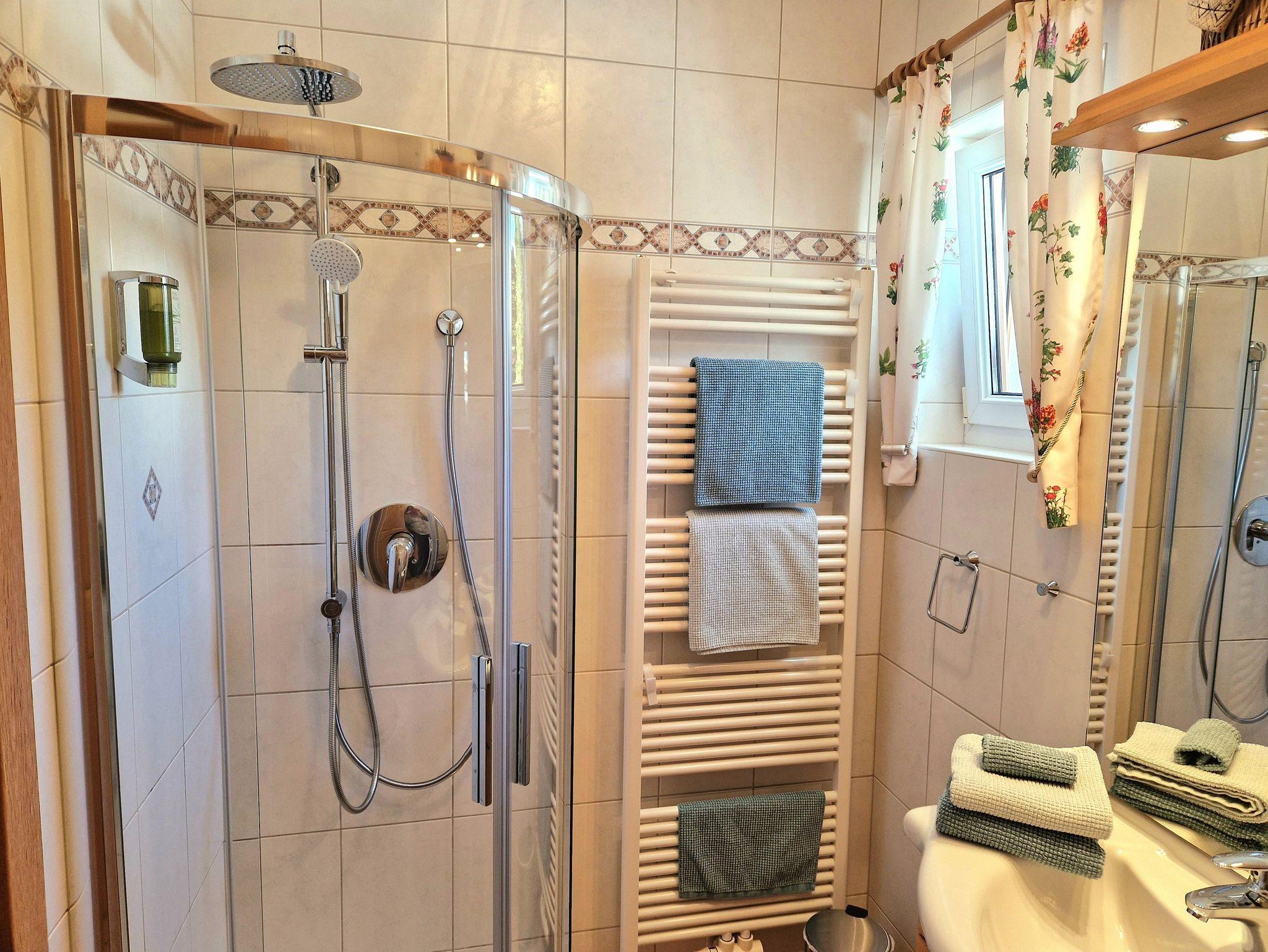Direkt daneben befindet sich das Bad mit Dusche und WC.