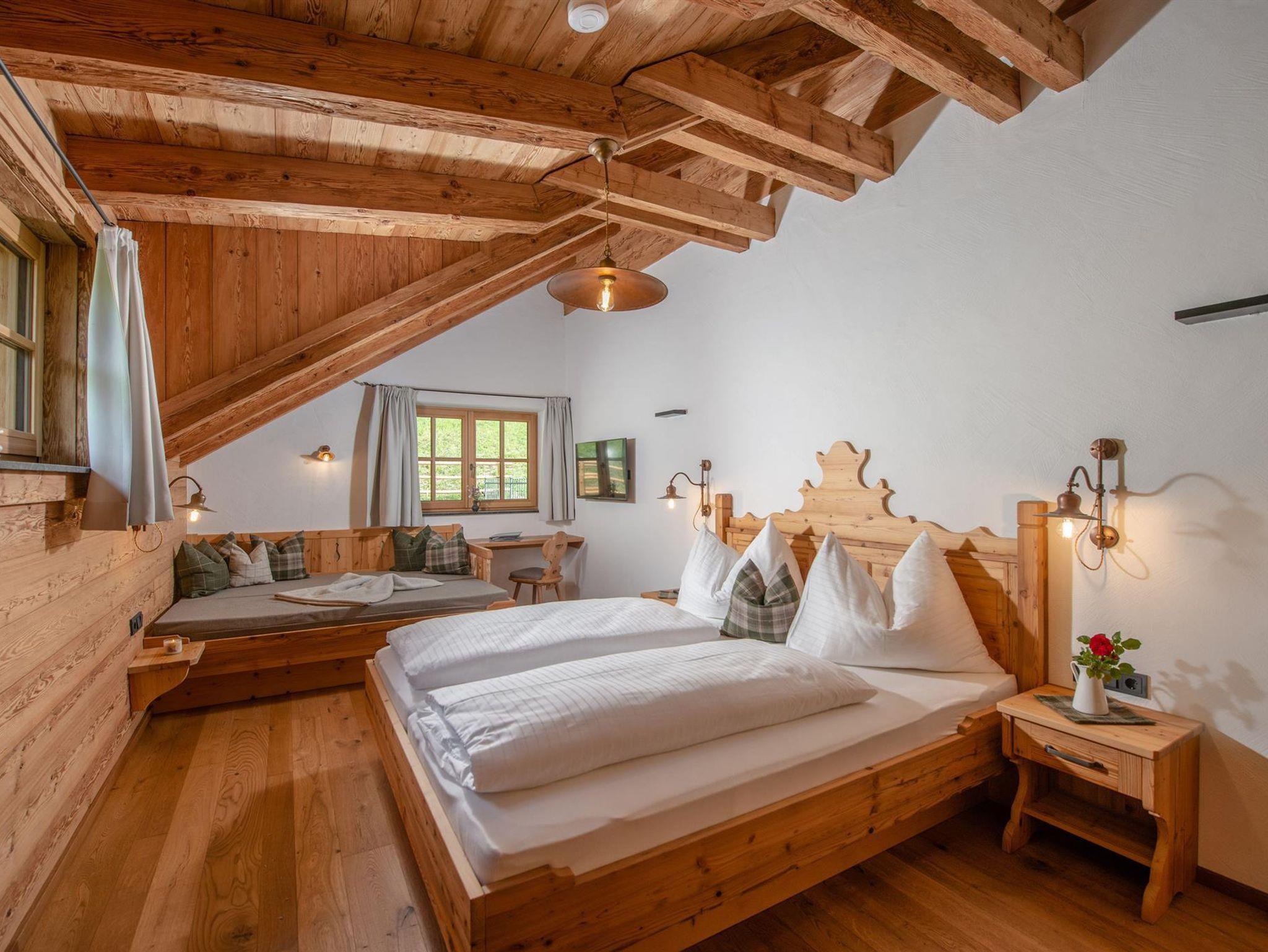 Eine erfrischend traditionelle Einrichtung verbindet das Ursprüngliche mit dem Modernen. Durch die bewusste Auswahl von heimischen Materialien wie Altholz, Naturstein, weiche Stoffen und warme Farben haben wir die Natur nach innen geholt.