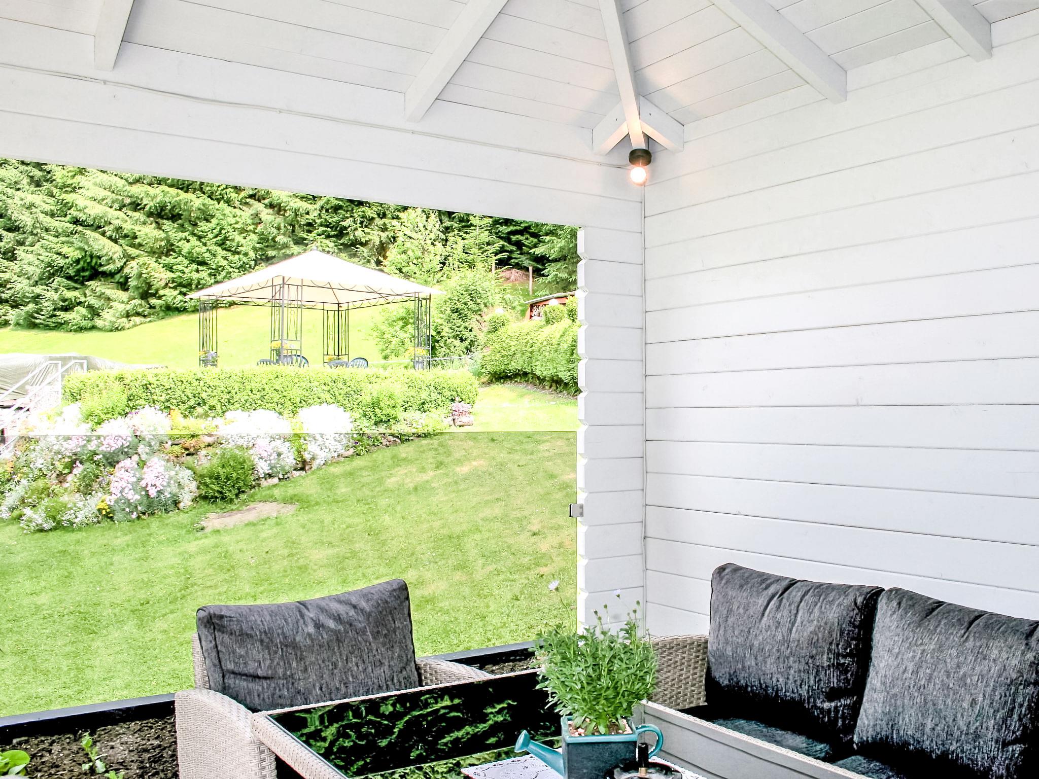 3-room apartment 60 m2 on 1st floor. Comfortable and tasteful furnishings: entrance hall. Large living room with Scandinavian wood stove and satellite TV. 1 double bedroom with shower/WC. Kitchen-/living room (oven, dishwasher, 4 ceramic glass hob hotplates, freezer, electric coffee machine, combination microwave) with dining table, radio. On the lower ground floor: 25 m2, Studio with 1 double bed, shower/WC and satellite TV. 2 balconies, patio, porch. Balcony furniture, barbecue, deck chairs. View of the mountains and the resort. Facilities: hair dryer. Internet (WiFi, free). Please note: one double bedroom is outside the apartment. Non-smoking house. Smoke alarm. The very well-kept garden is equipped with a covered pavilion, a cozy garden house with heating and a covered terrace, as well as a garden grill. Relaxing and unwinding included! SUMMER CARD included! Maximum occupancy 4 people.