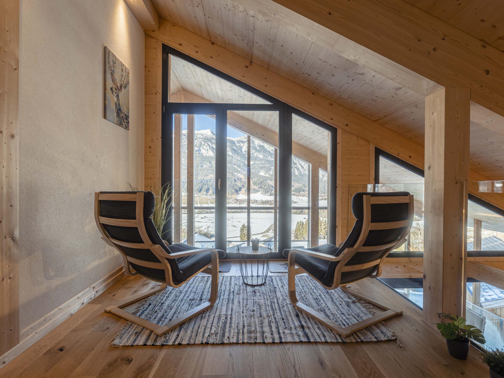 "Superior Galerie,Sauna&Außenbadewanne", 3-room apartment 95 m2 on 2 levels. Bright, comfortable and luxurious furnishings: living/dining room with dining nook, satellite TV and flat screen. 1 double bedroom. 1 double bedroom with shower/WC. Open kitchen (oven, dishwasher, 4 ceramic glass hob hotplates, electric coffee machine). Sep. WC, bath or shower/WC, Sauna. Balcony. Balcony furniture. Very beautiful panoramic view of the mountains. Facilities: Internet (WiFi, free). Please note: non-smokers only. The property is one of a type of property or apartment. This chalet has a gallery and an outdoor hot tub!
