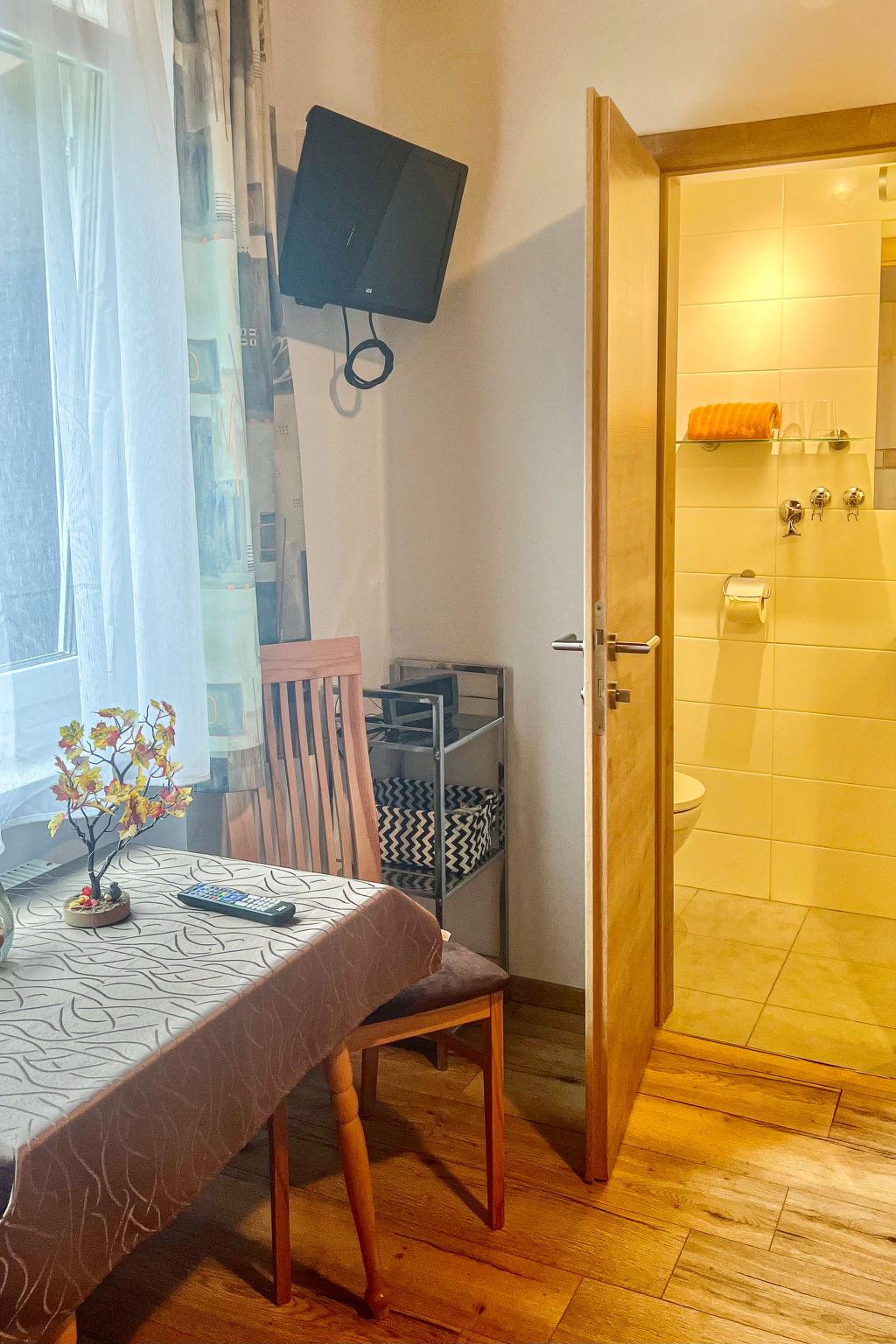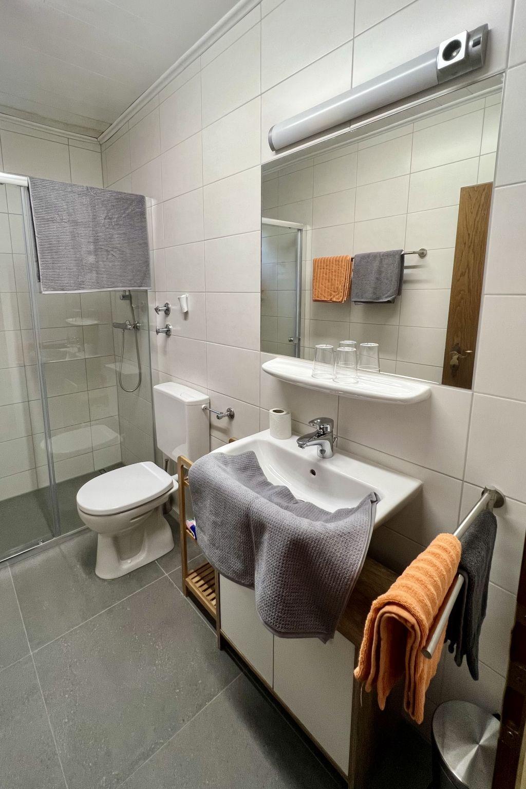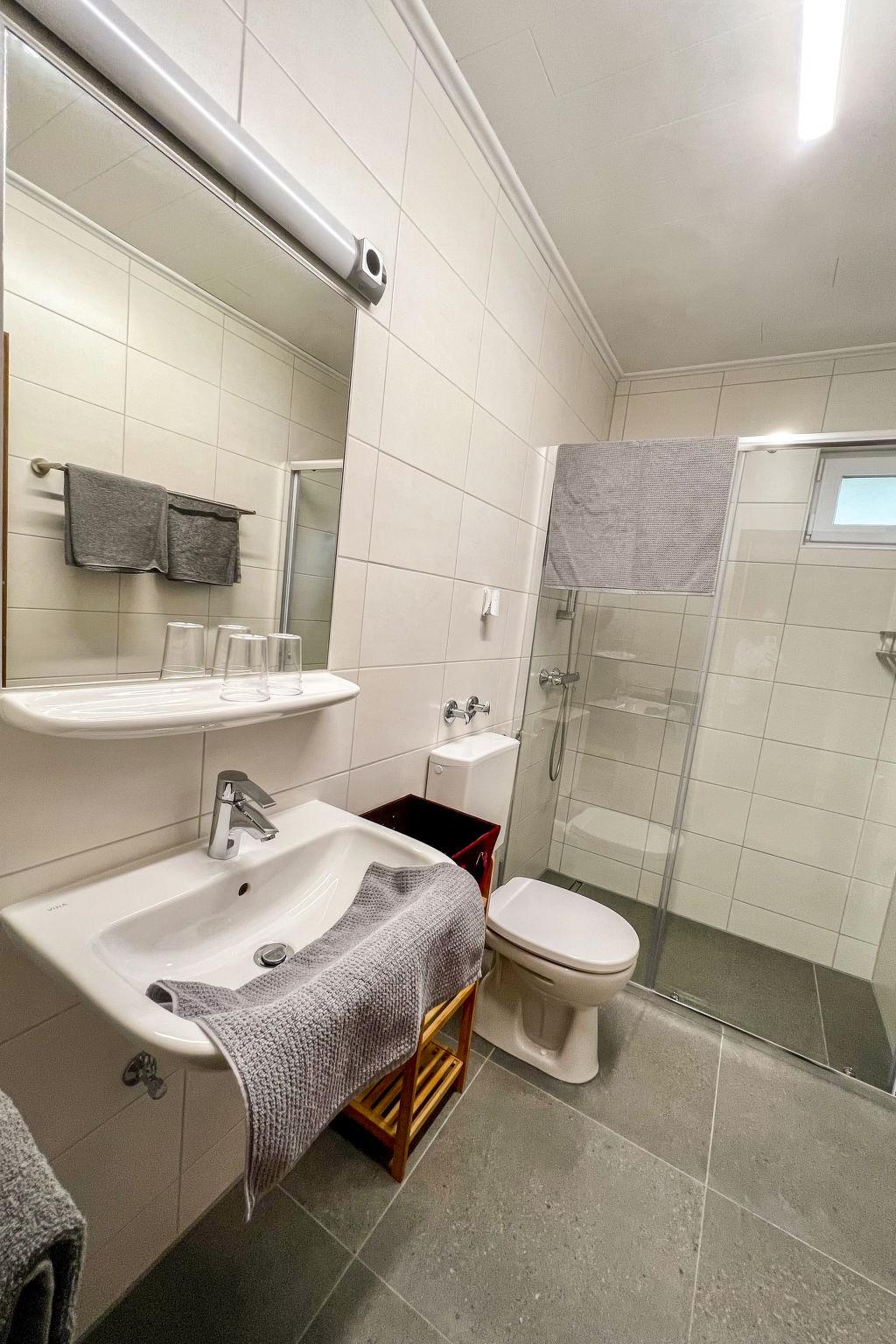6-room apartment 120 m2, on the ground floor. Practical furnishings: small living room with satellite TV. 3 rooms, each room with 2 beds, shower/WC and satellite TV. Walk-through room with 1 double bed, shower/WC and satellite TV. 1 double bedroom. Open kitchen (oven, dishwasher, 4 ceramic glass hob hotplates, toaster, kettle, microwave, freezer, electric coffee machine) with dining nook. Exit to the terrace. Parquet floors. Terrace. Terrace furniture, deck chairs (2), sitting area. Facilities: baby cot for up to 2 year olds, logs (free). Internet (WiFi). Parking at the house. Please note: suitable for families. Non-smokers only. Maximum 1 pet/ dog allowed. ATTENTION: Ennstal Sommercard with many inclusive services and advantages included in the price (approx. mid-May to mid-October). When there are less than the maximum number of guests staying at the property, not all of the housing units will be available for use.